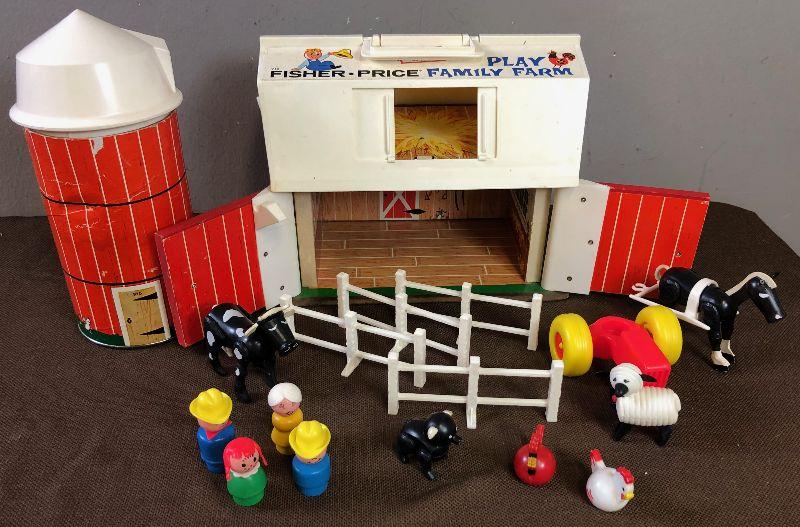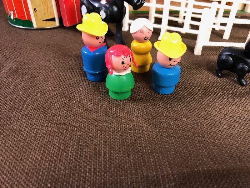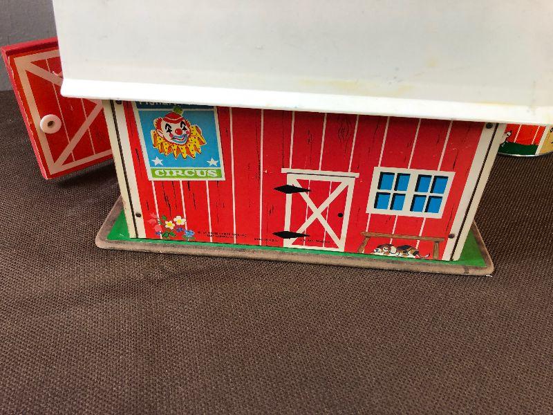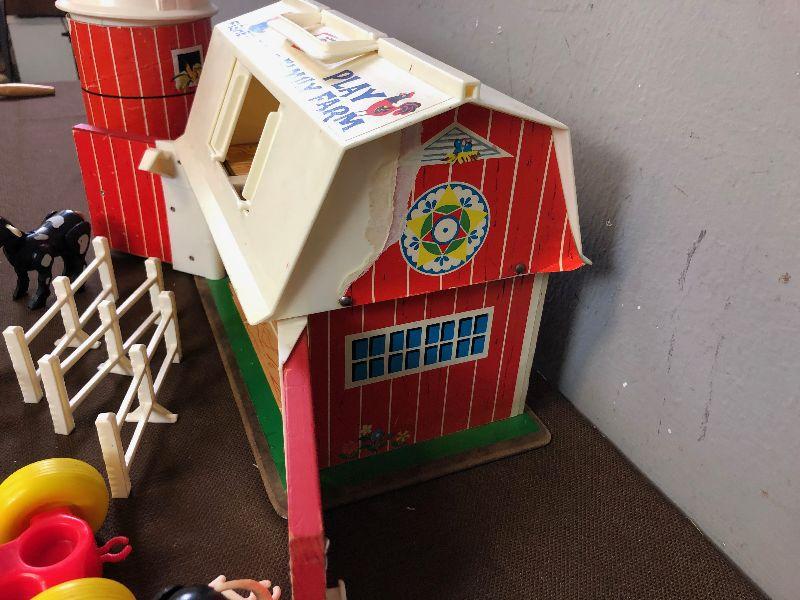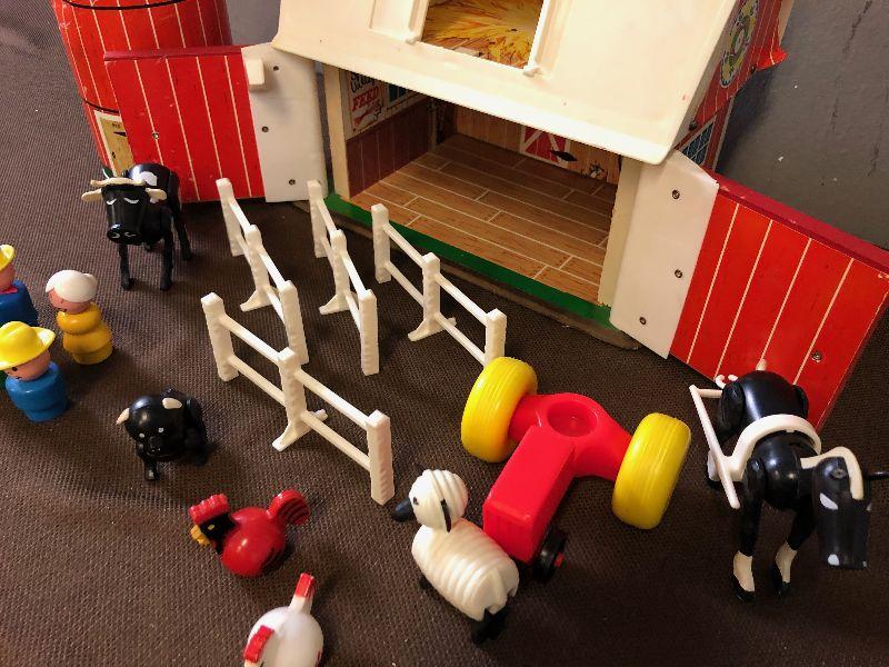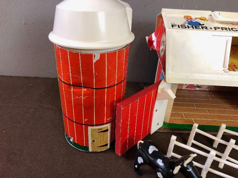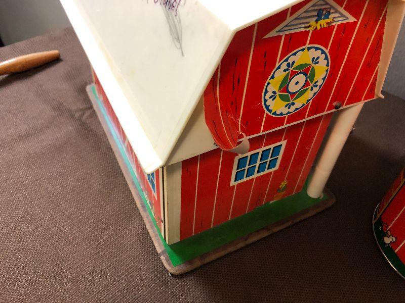 Moo still works on the door! Used Tractor, Barn, Animals Etc. - shows wear from play and probably not complete, who knows? Marked with Kent and Johnny's name on it .