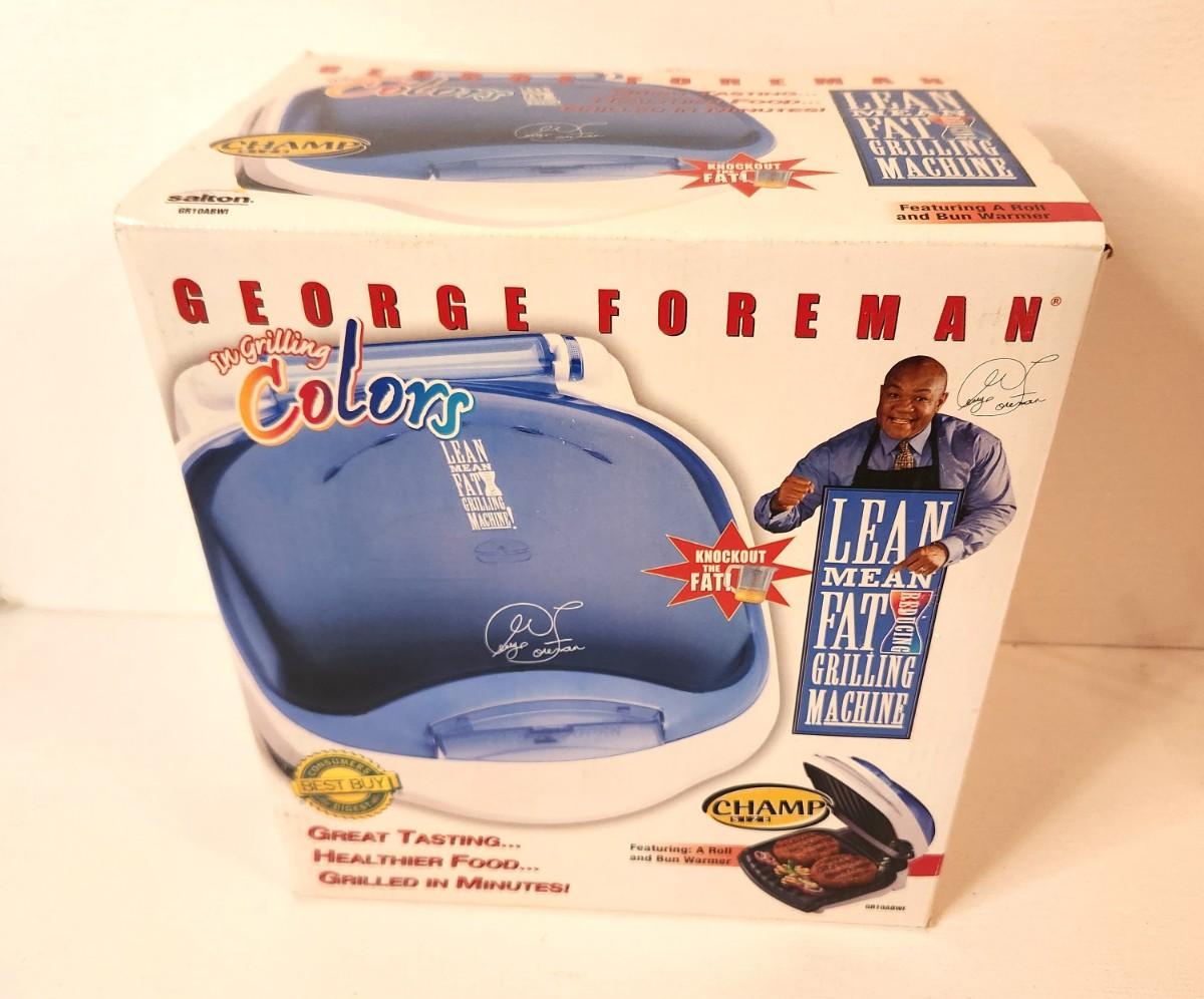 Chap size George Foreman grill - blue - new in box. Has roll and bun warmer.