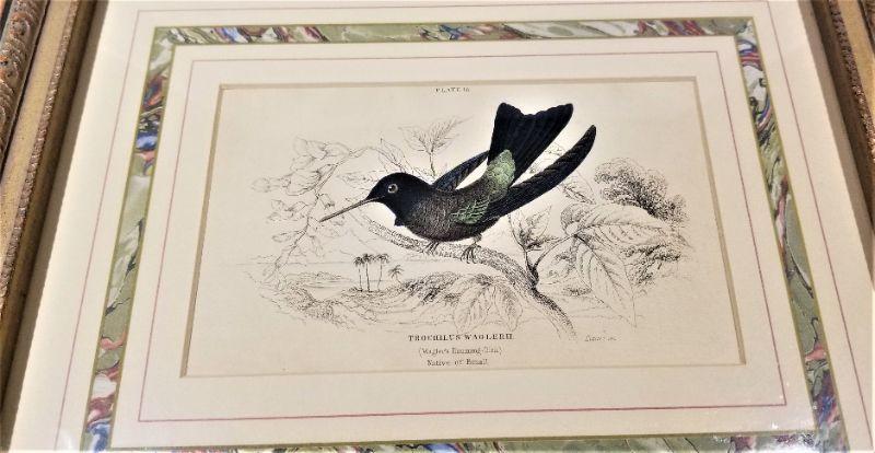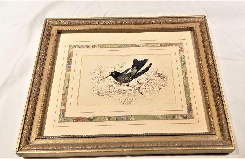 Lot #87 hand Colored Antique Bird Print in Frame