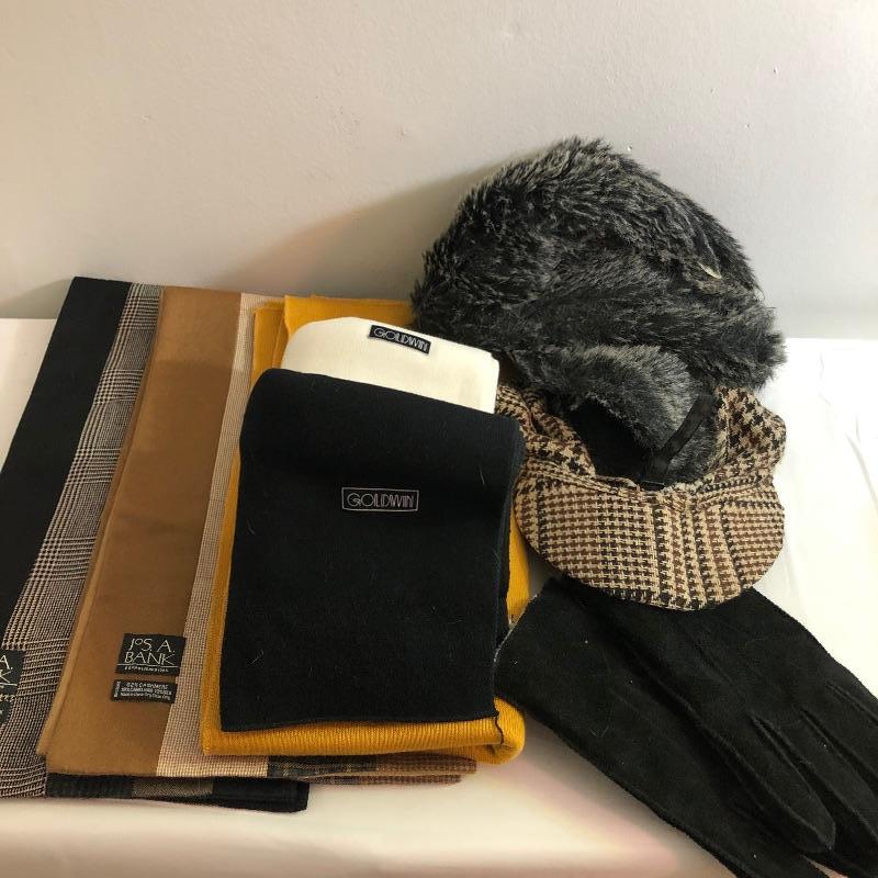 It may be summer, but this lot is too good to pass up now, with it’s great assortment of gloves, hats, socks and scarves. There a pair of sheepskin lined suede gloves and a pair of ski type gloves, both L/XL and numerous pairs of socks. The large assortment of hats include wooly ones, cap style ones, ear muffs, ear flap hats and more that appear to all be one size fits all. Last but not least we have a bunch of scarves with name brands such as Goodwin, Jos. A. Bank and more, see images.