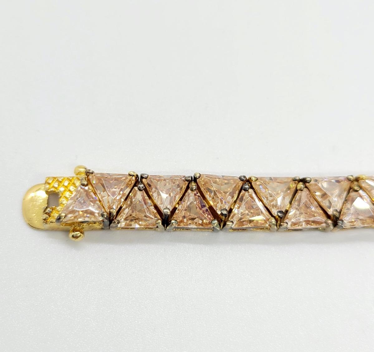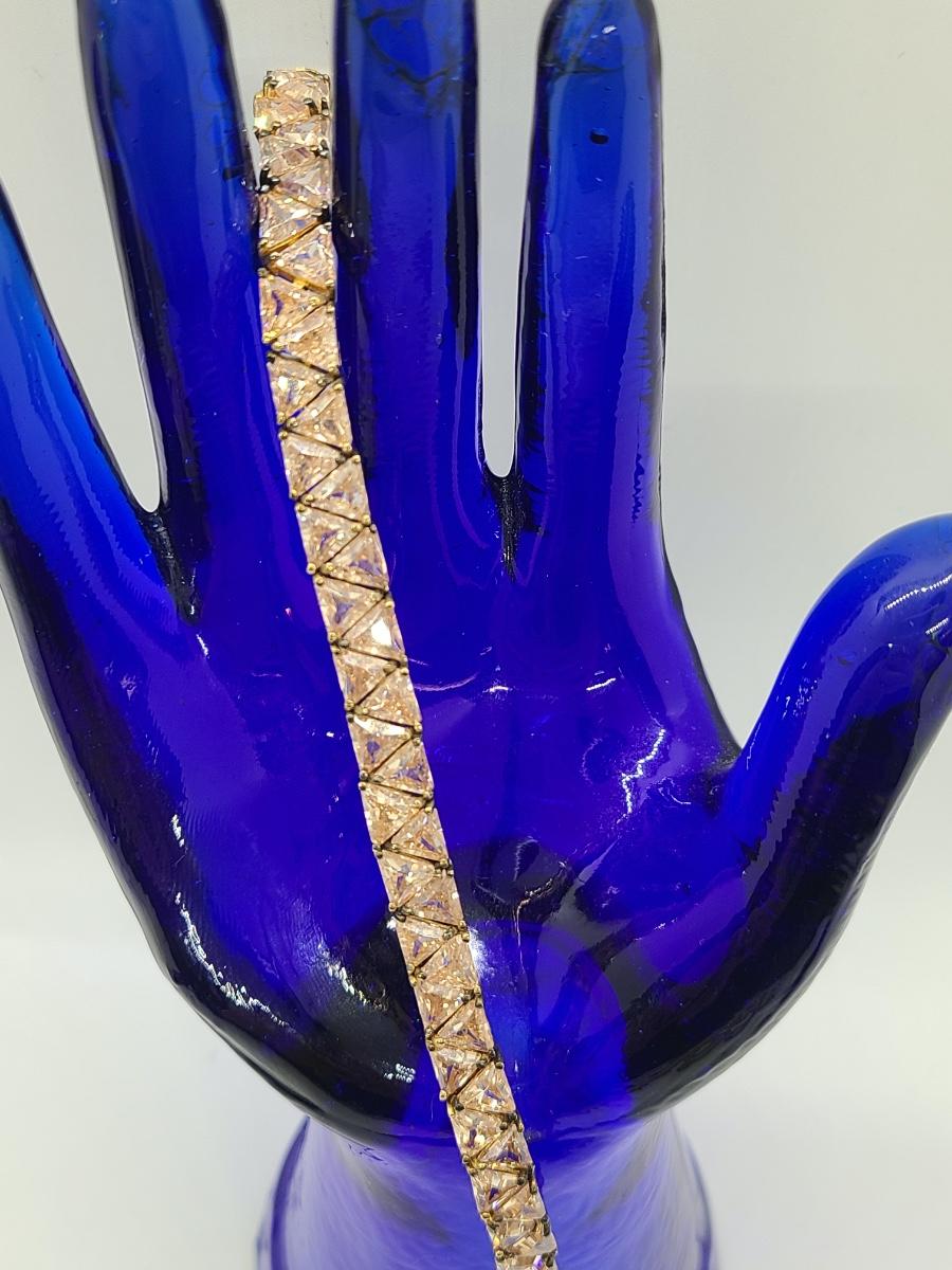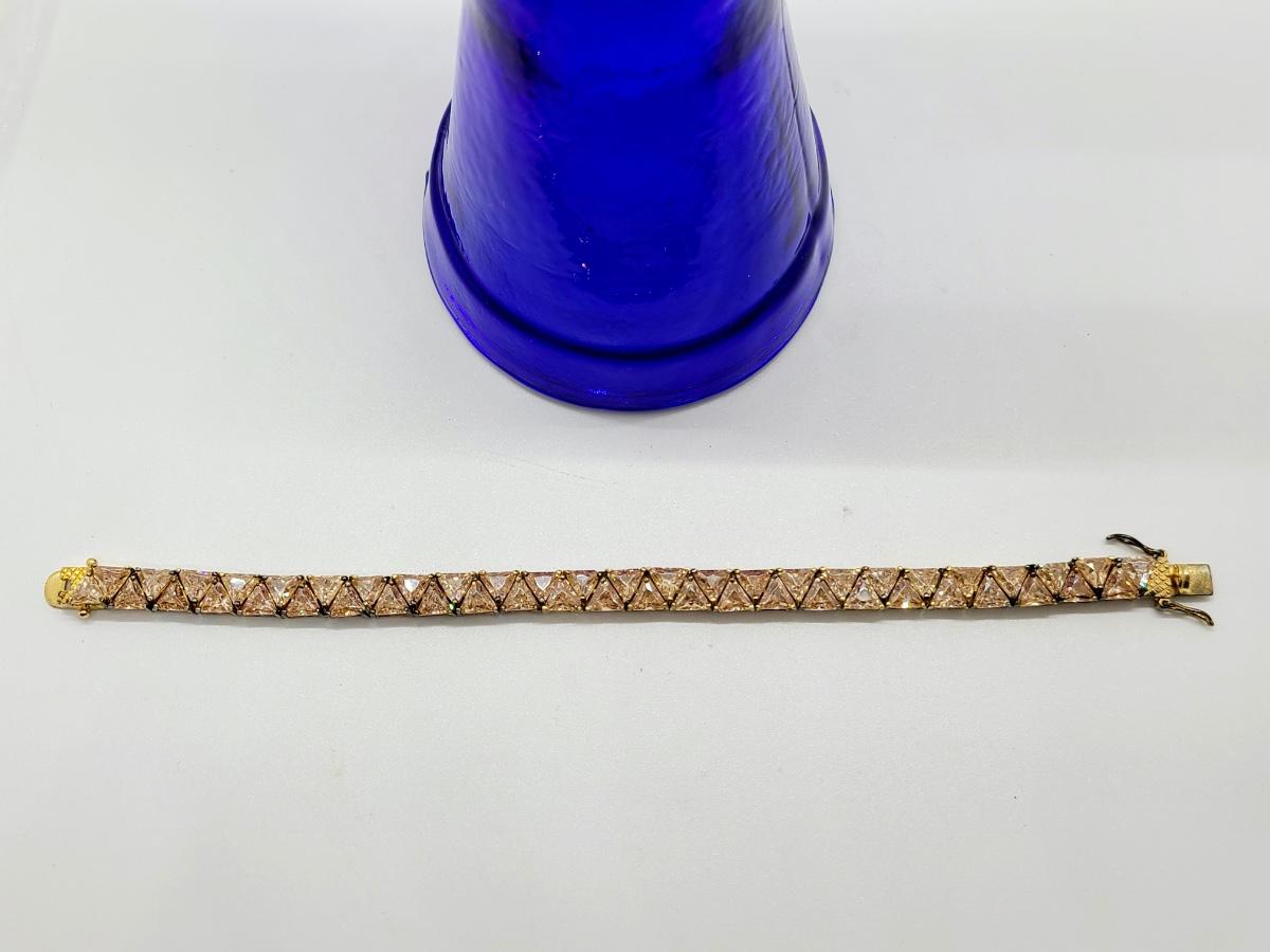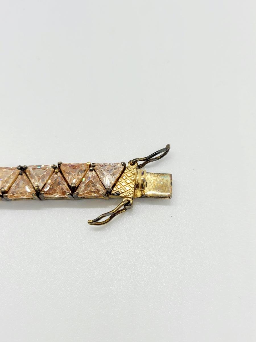 Lovely morganite (blush colored) cz, 925 tennis bracelet. This does have slight discoloration on band surface, may need a light cleaning. The pictures show condition, measurements if taken, and what is included in the lot. Due to the large amount that we photograph and the time frame, we are not always able to take measurements. All items unless noted, are pre-owned and have been used, and are untested. Thank you