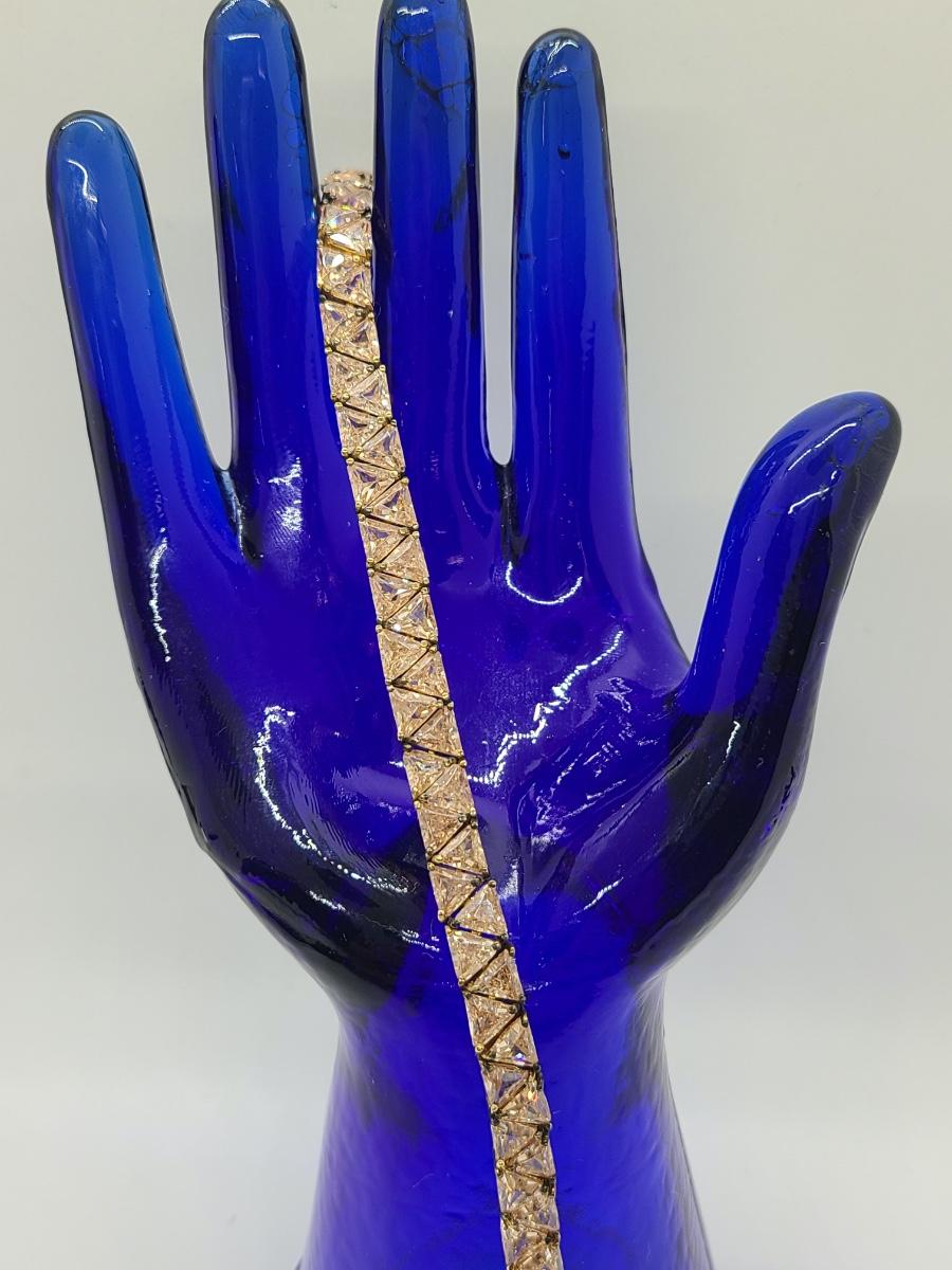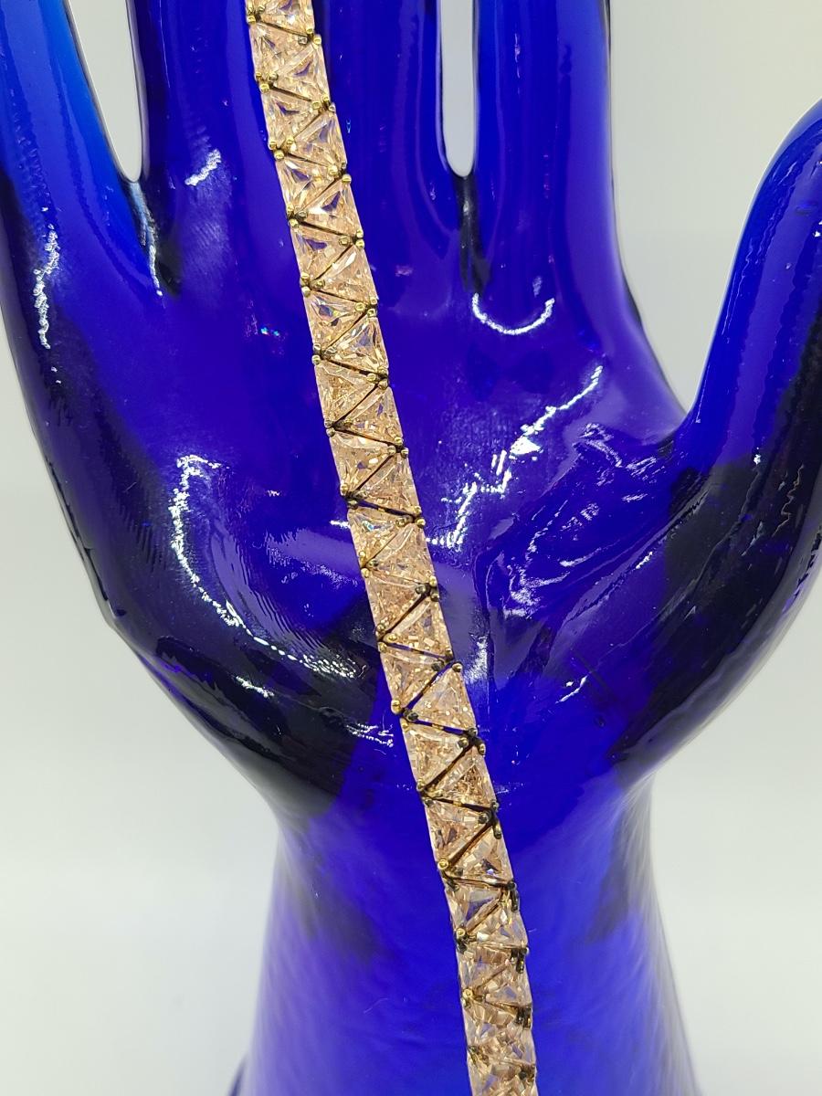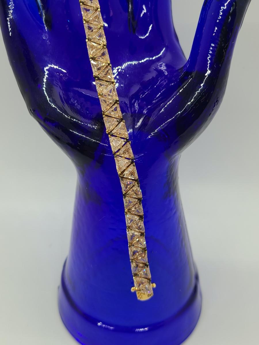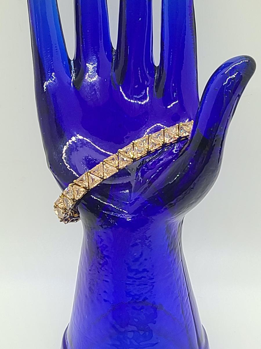 Lovely morganite (blush colored) cz, 925 tennis bracelet. This does have slight discoloration on band surface, may need a light cleaning. The pictures show condition, measurements if taken, and what is included in the lot. Due to the large amount that we photograph and the time frame, we are not always able to take measurements. All items unless noted, are pre-owned and have been used, and are untested. Thank you