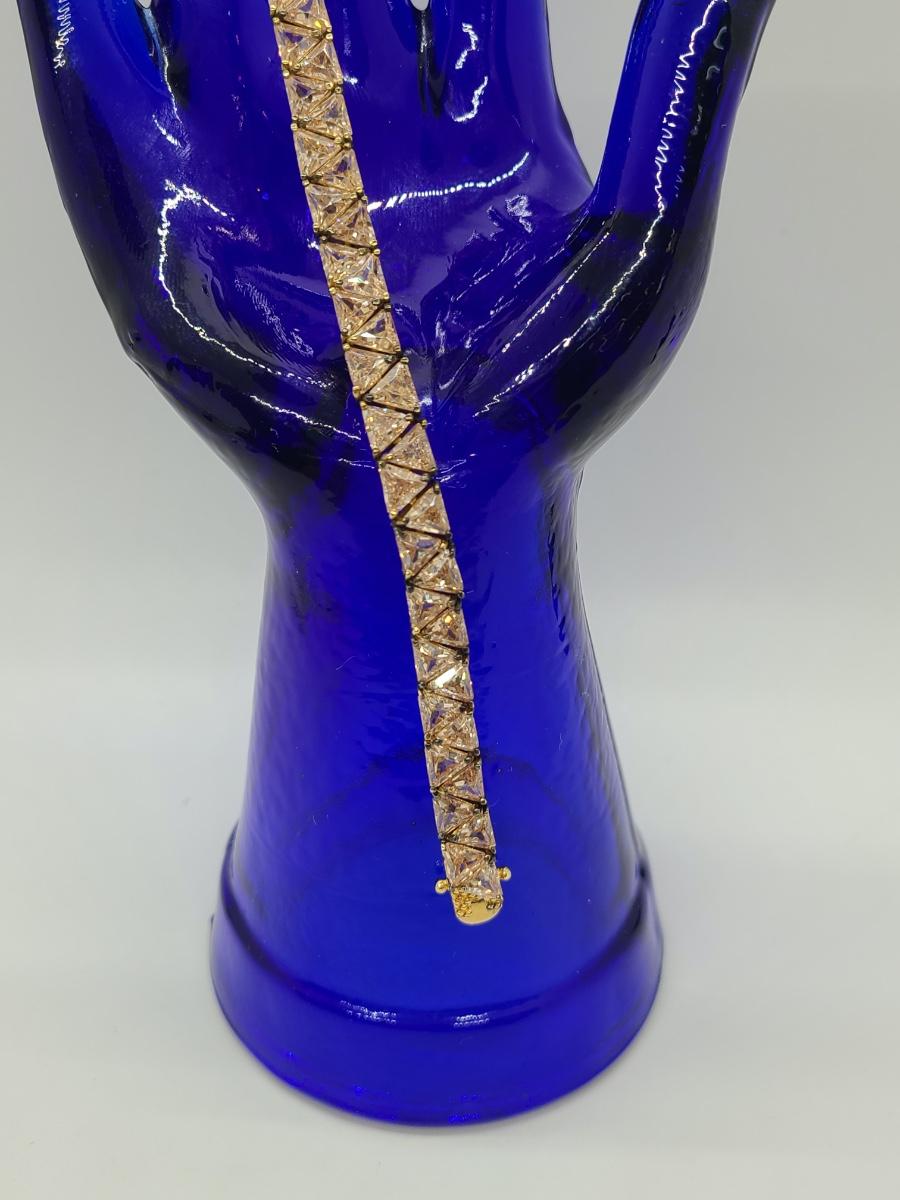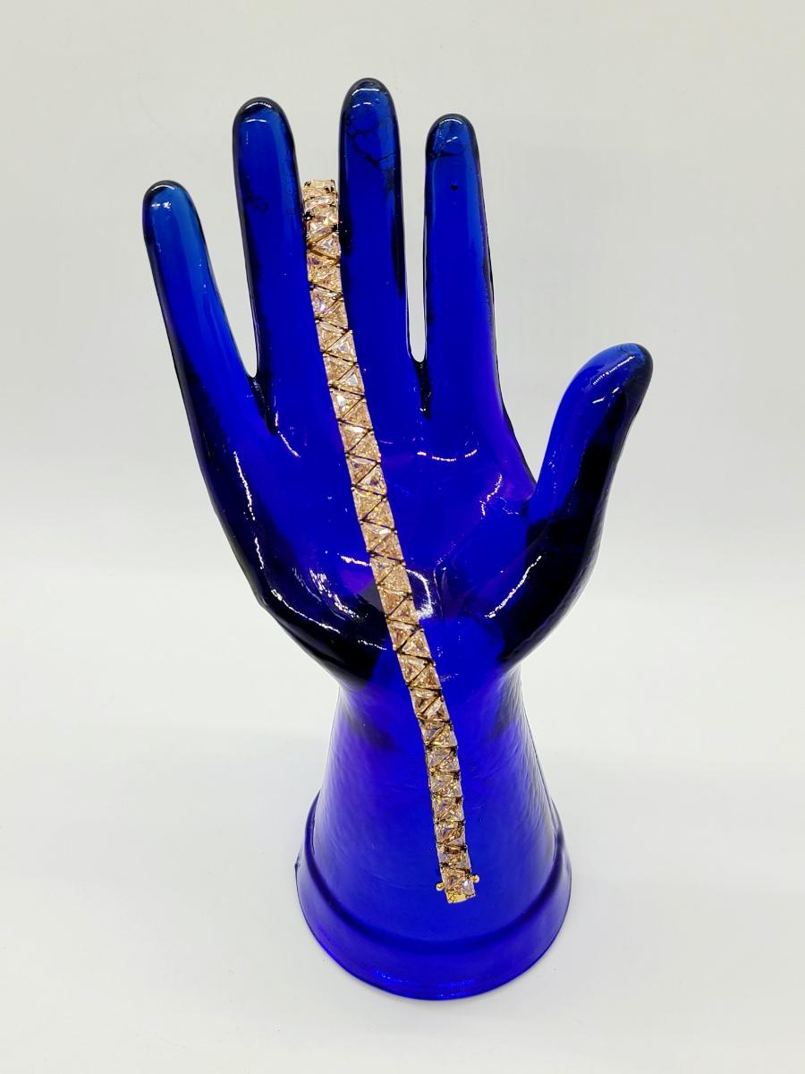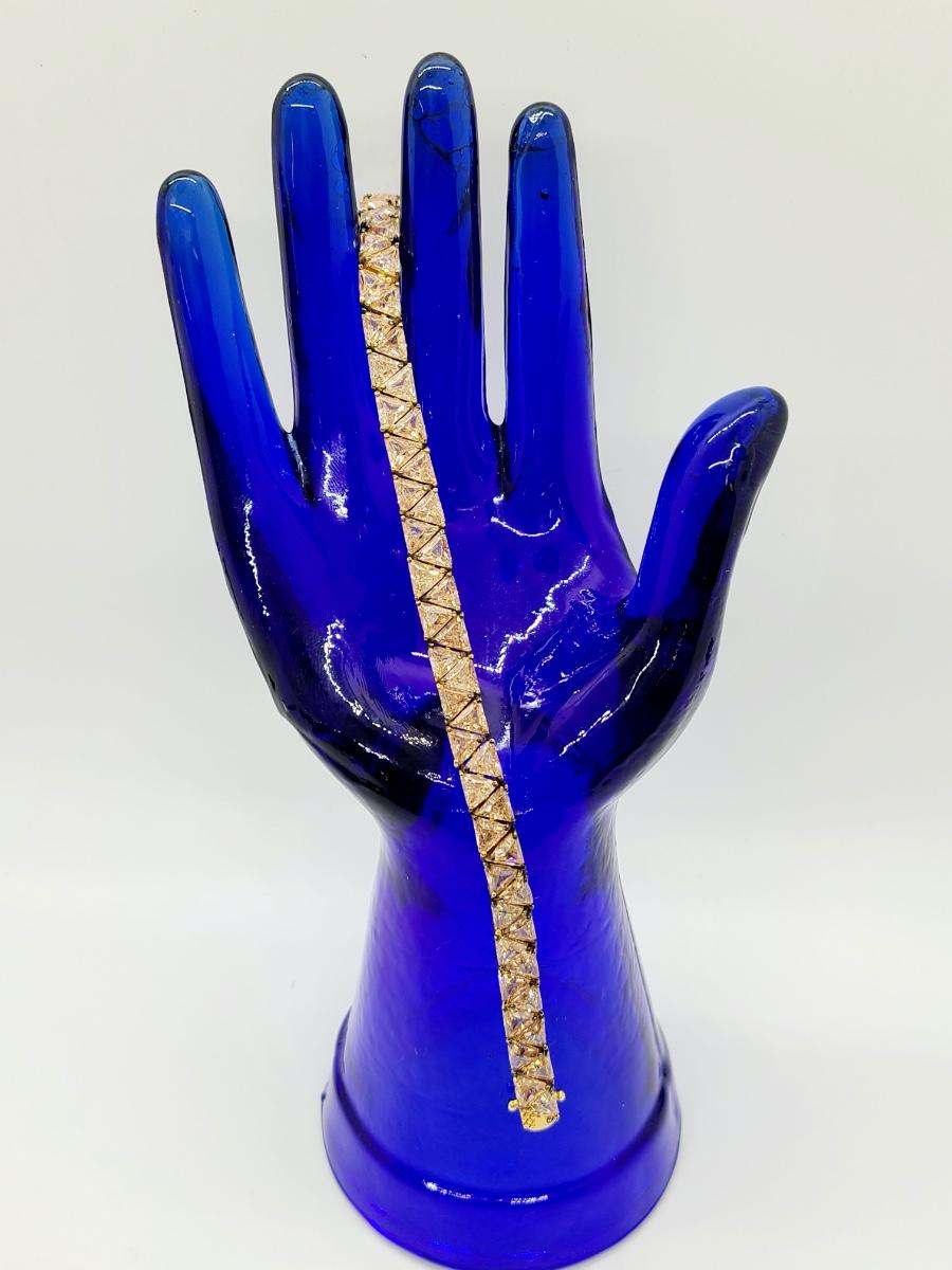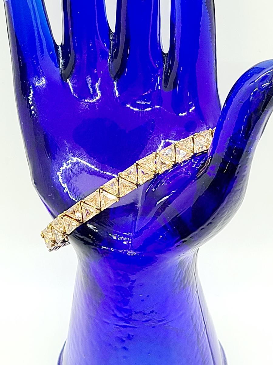 Lovely morganite (blush colored) cz, 925 tennis bracelet. This does have slight discoloration on band surface, may need a light cleaning. The pictures show condition, measurements if taken, and what is included in the lot. Due to the large amount that we photograph and the time frame, we are not always able to take measurements. All items unless noted, are pre-owned and have been used, and are untested. Thank you
