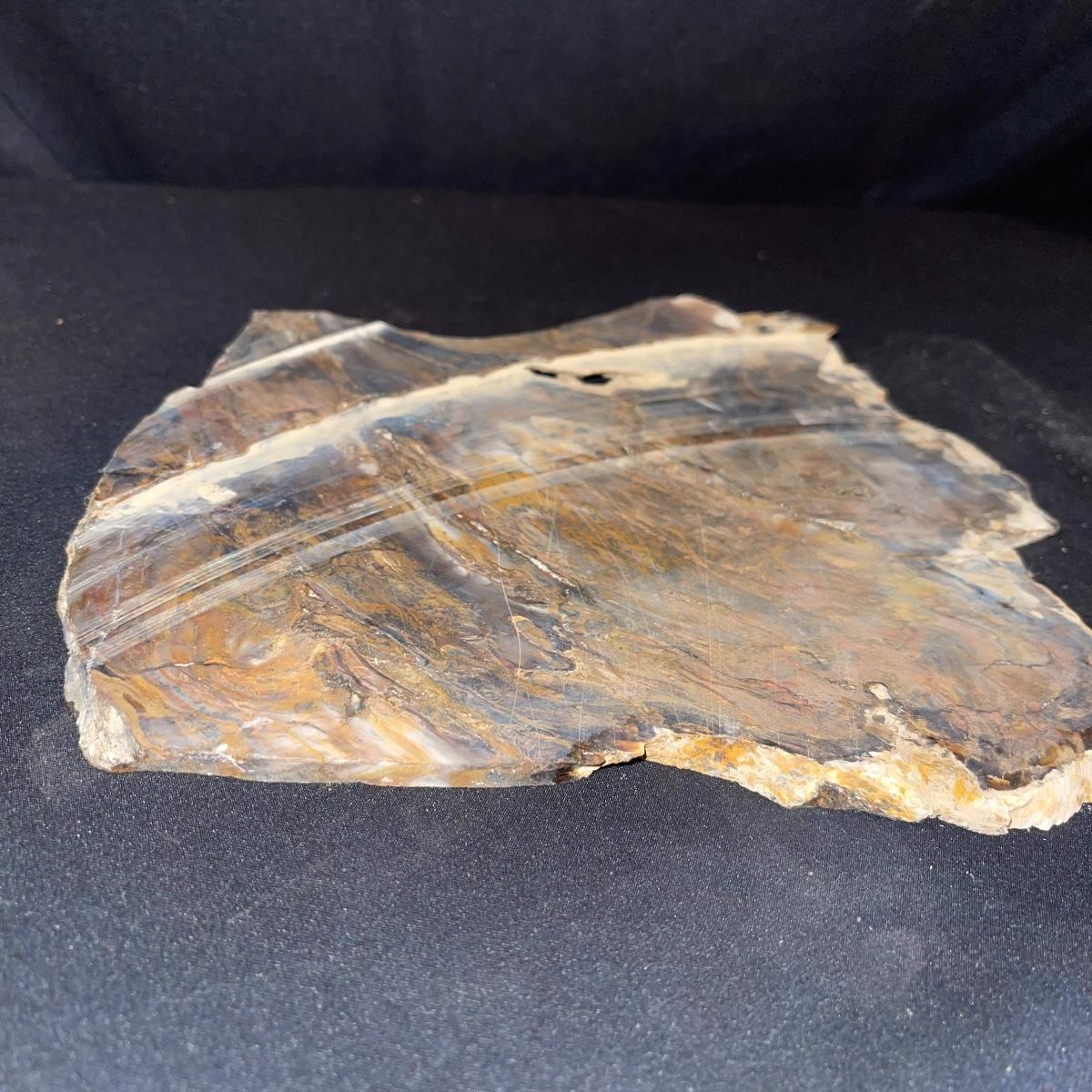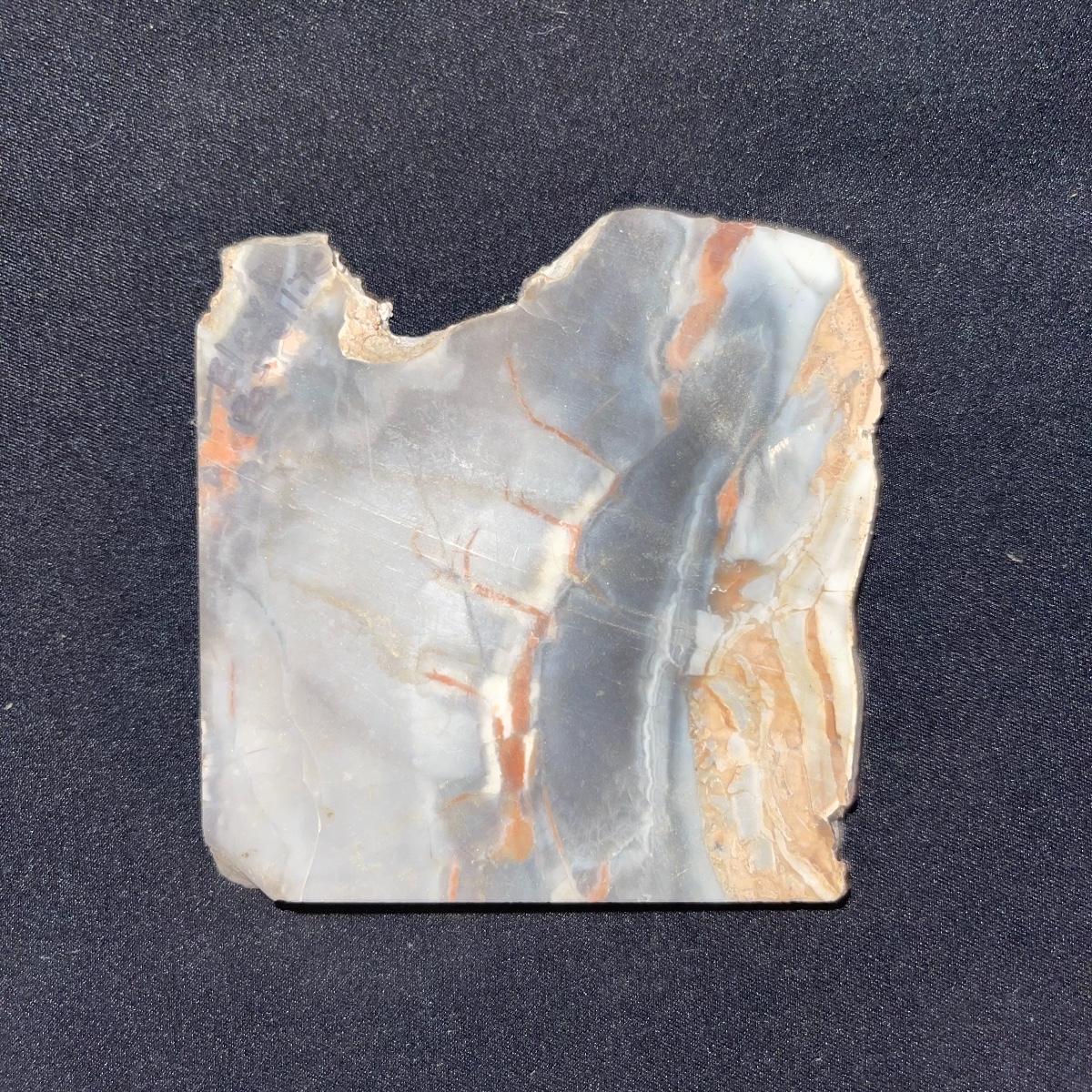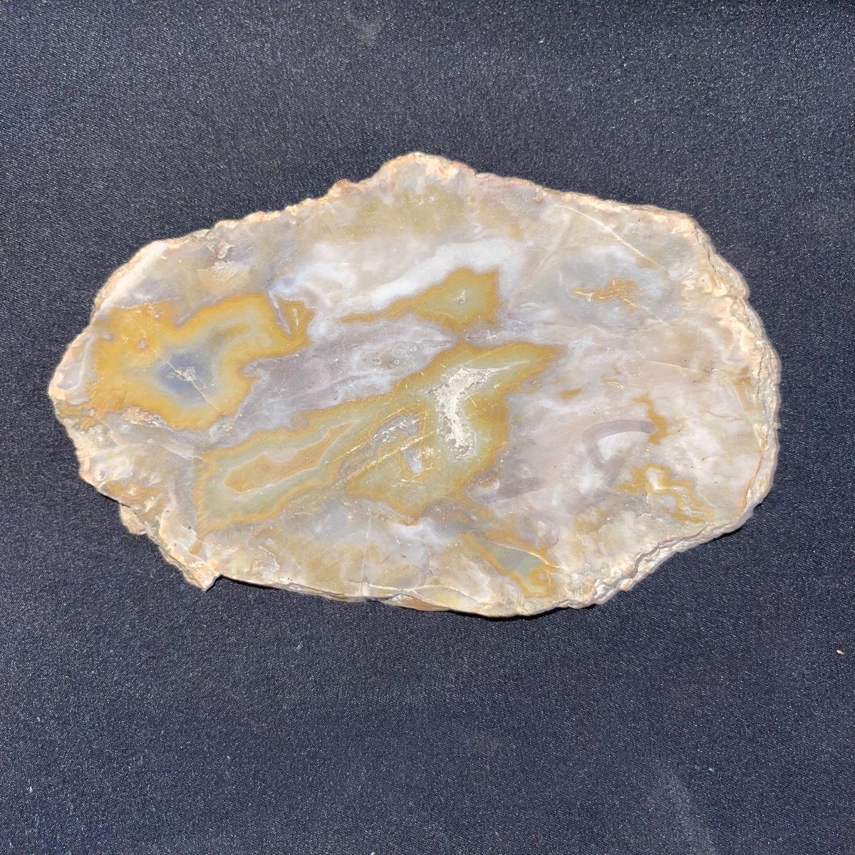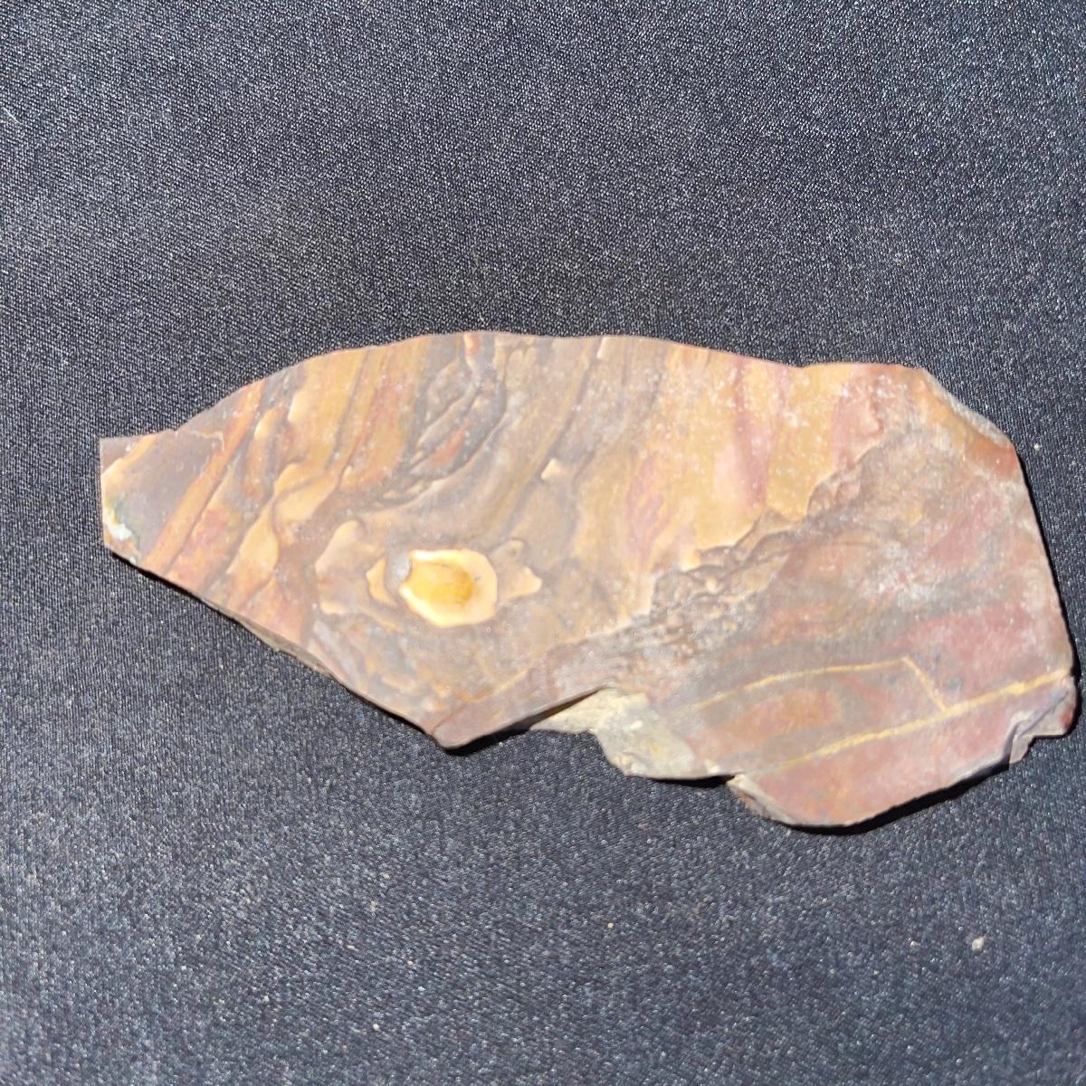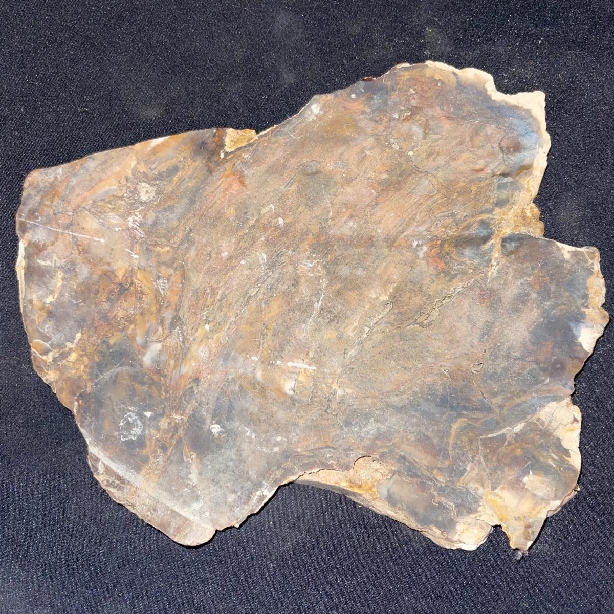This collection of stone slabs has a variety of sizes, colors, shapes, thickness, and types of stones. Some of the stones in this lot may include jaspers from mines that have since closed. The largest slabs are about 10 inches, sizes of all other slabs are smaller than that; the smallest being about 2 inches. Some stones have price stickers on them, or some tape/stickers identifying where they are from. There is a bag of small tiger’s eye pieces that has a note inside identifying it as such.