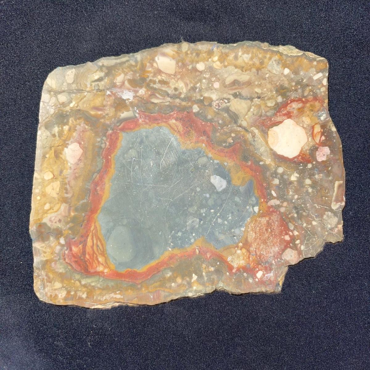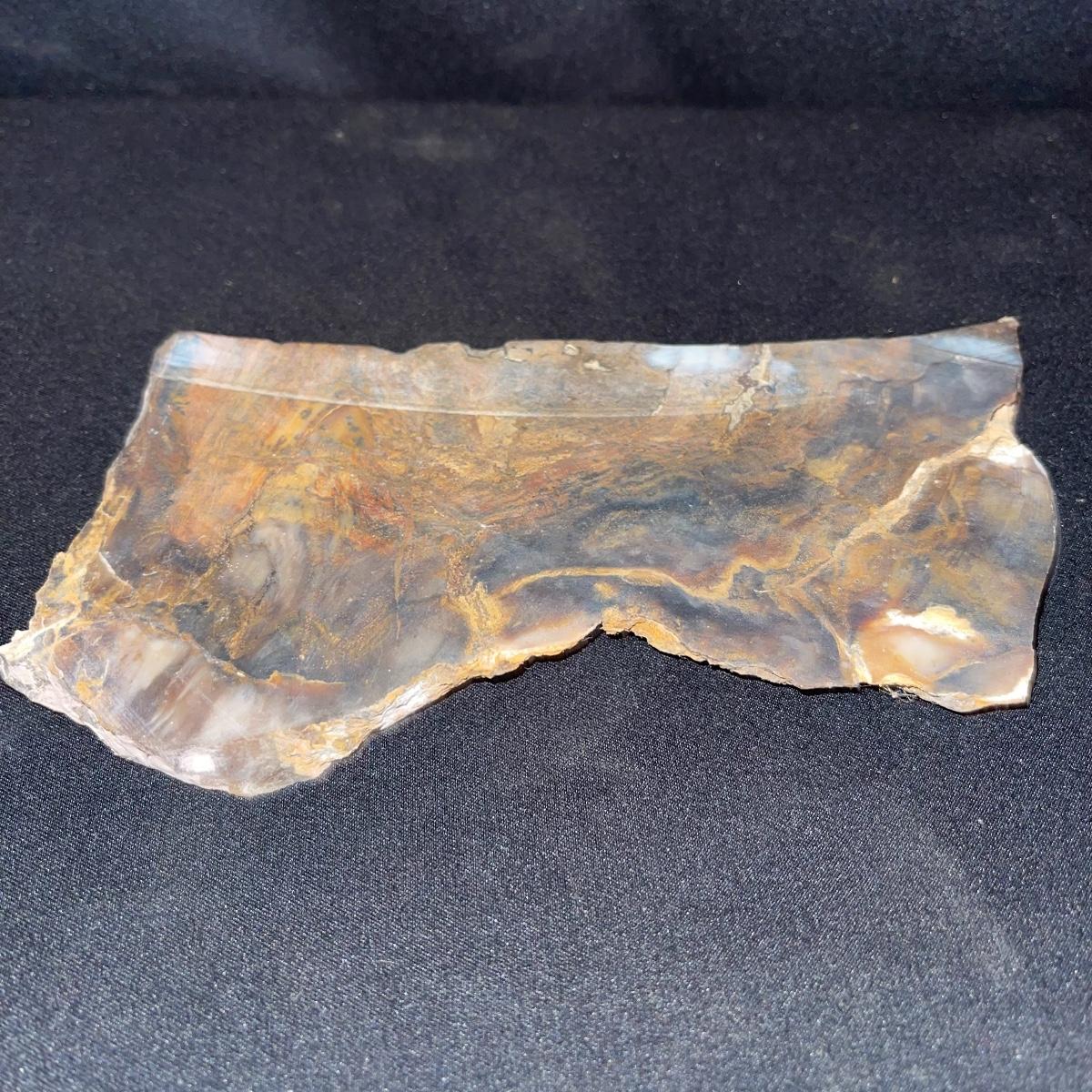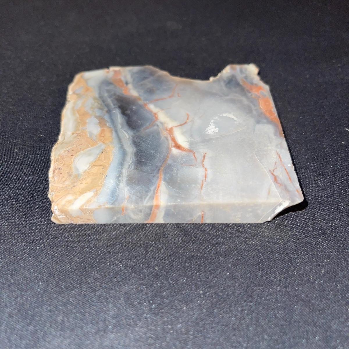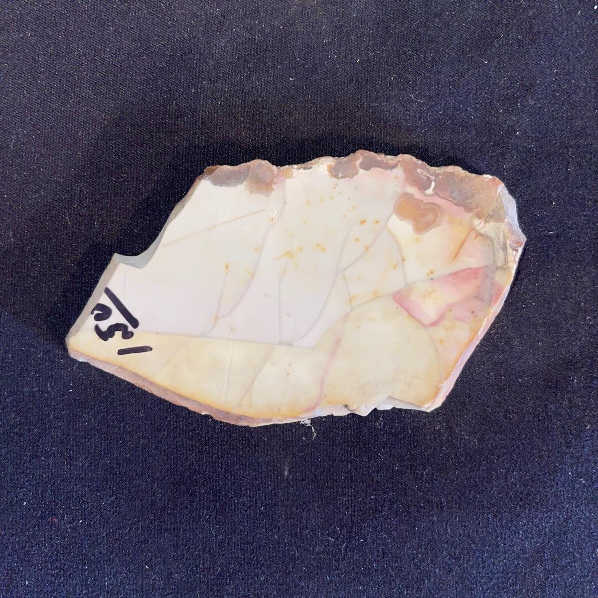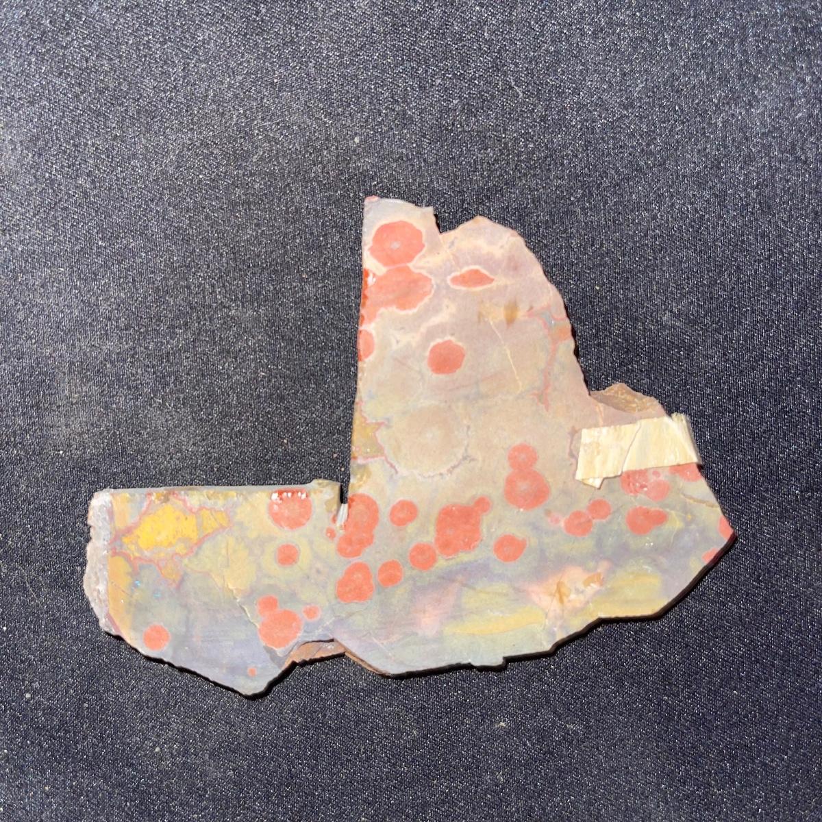 This collection of stone slabs has a variety of sizes, colors, shapes, thickness, and types of stones. Some of the stones in this lot may include jaspers from mines that have since closed. The largest slabs are about 10 inches, sizes of all other slabs are smaller than that; the smallest being about 2 inches. Some stones have price stickers on them, or some tape/stickers identifying where they are from. There is a bag of small tiger’s eye pieces that has a note inside identifying it as such.