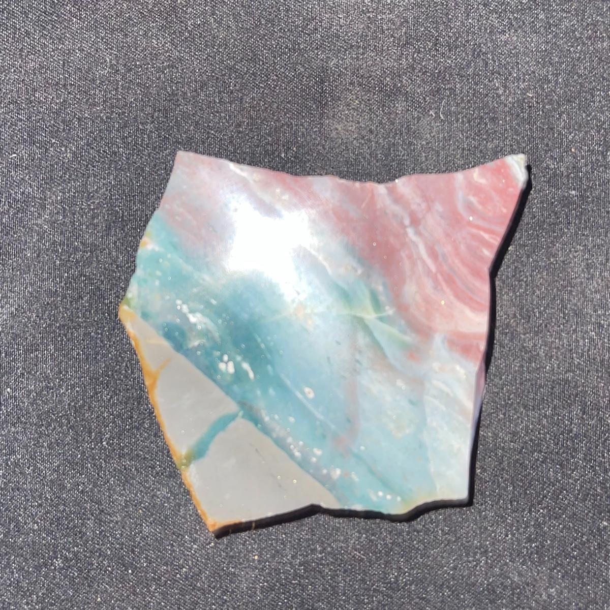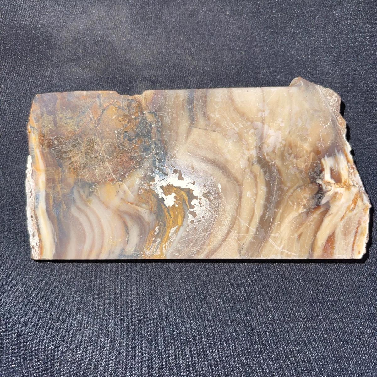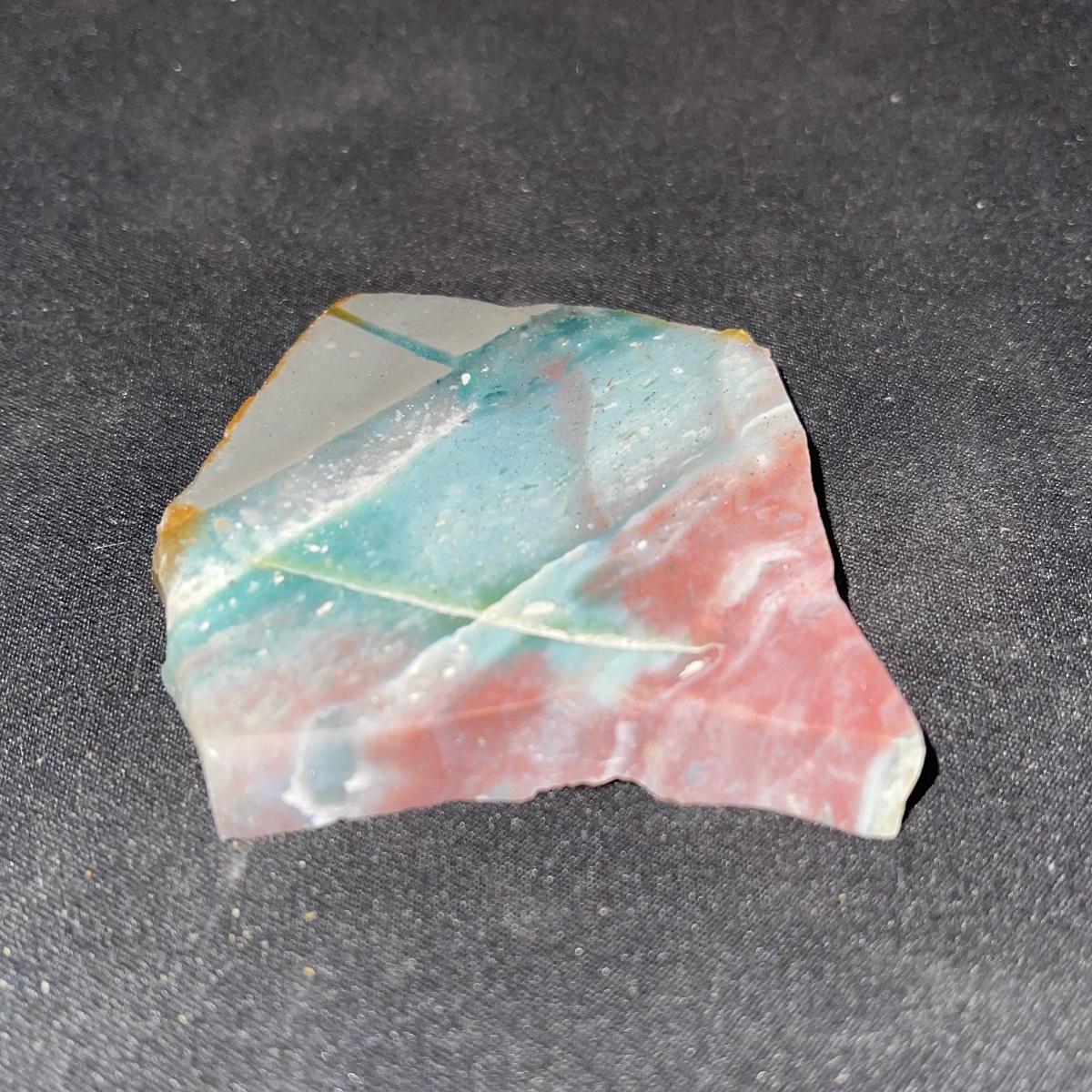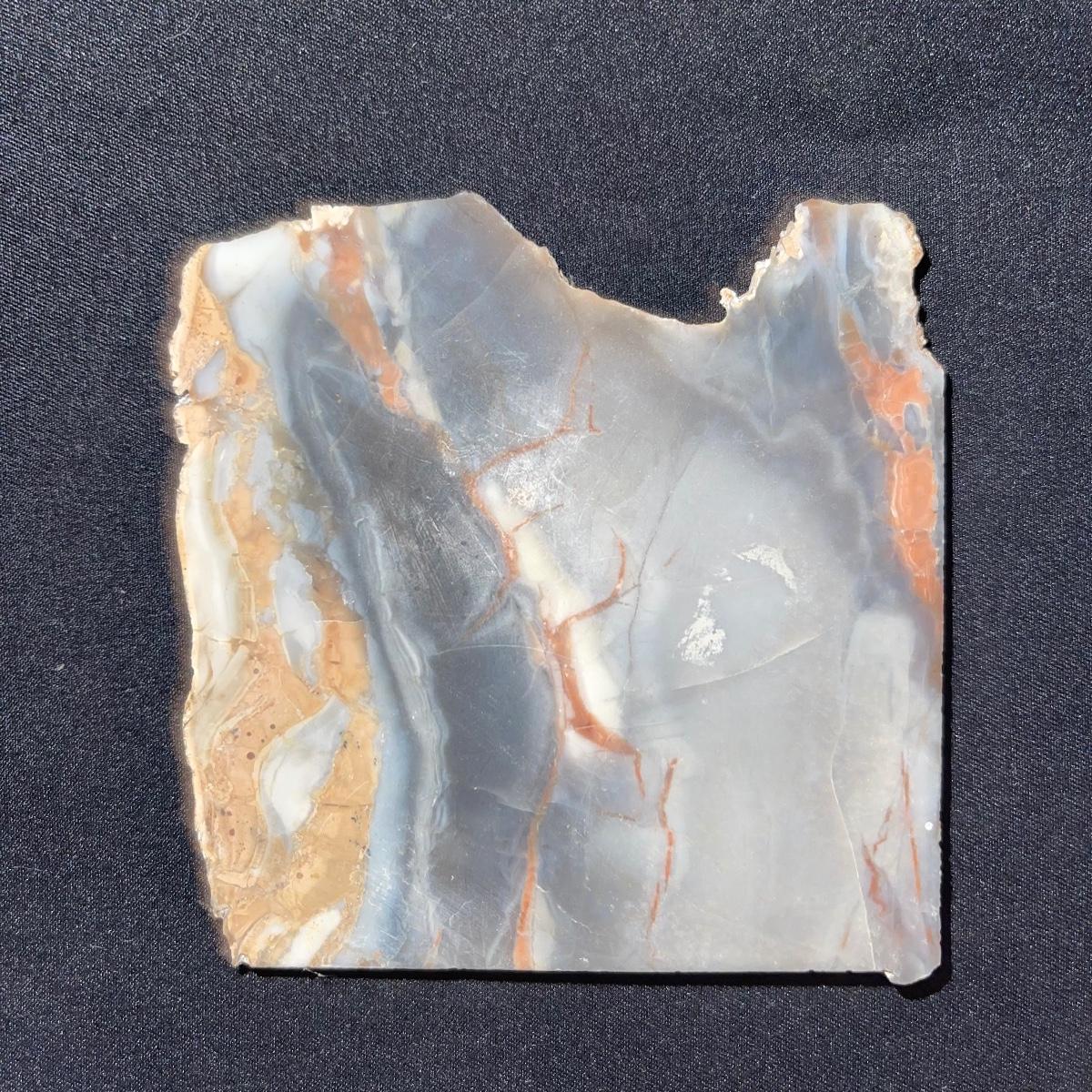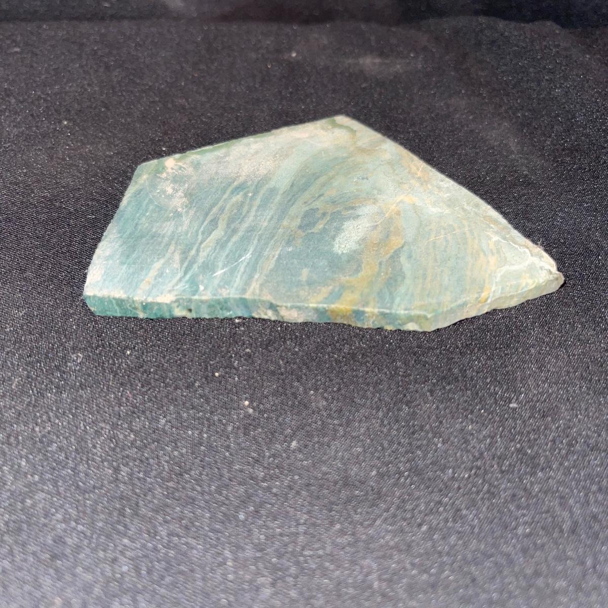 This collection of stone slabs has a variety of sizes, colors, shapes, thickness, and types of stones. Some of the stones in this lot may include jaspers from mines that have since closed. The largest slabs are about 10 inches, sizes of all other slabs are smaller than that; the smallest being about 2 inches. Some stones have price stickers on them, or some tape/stickers identifying where they are from. There is a bag of small tiger’s eye pieces that has a note inside identifying it as such.