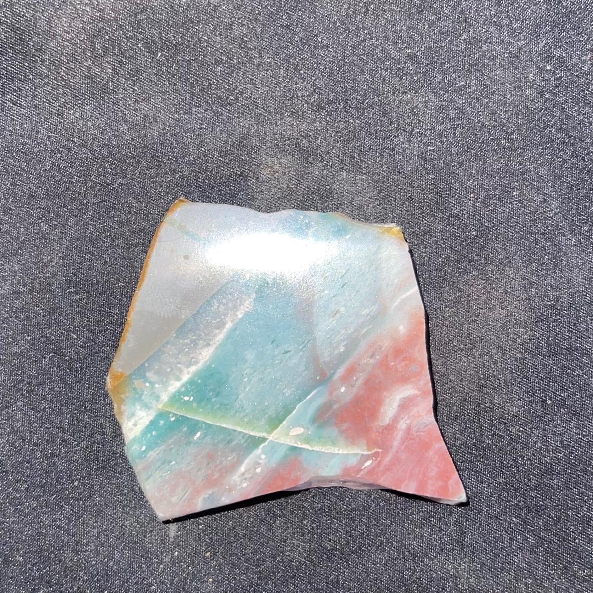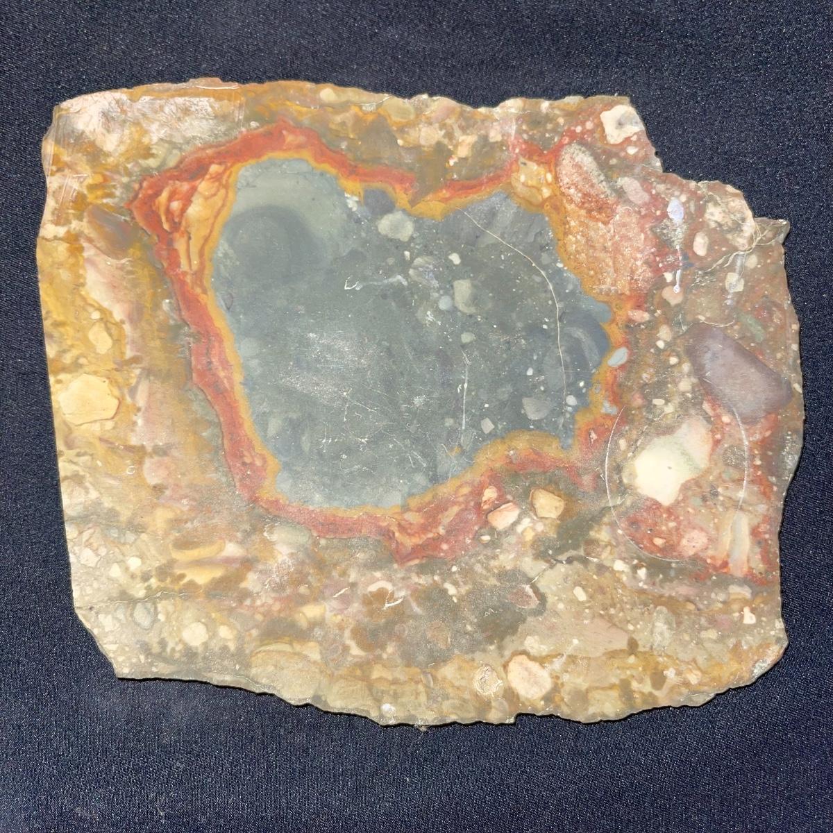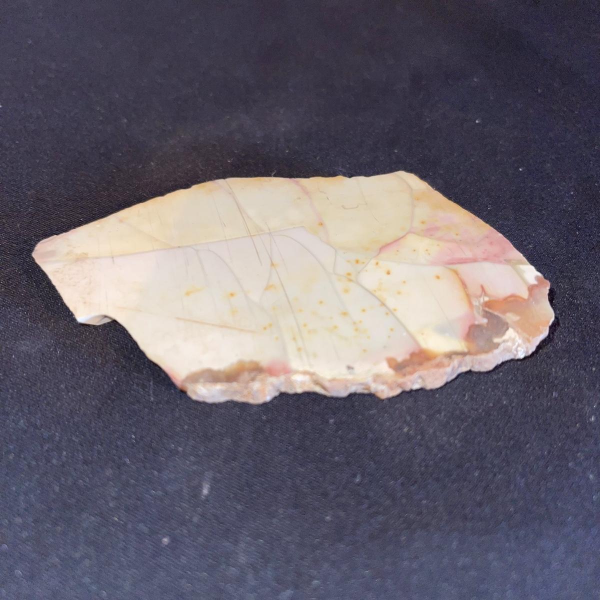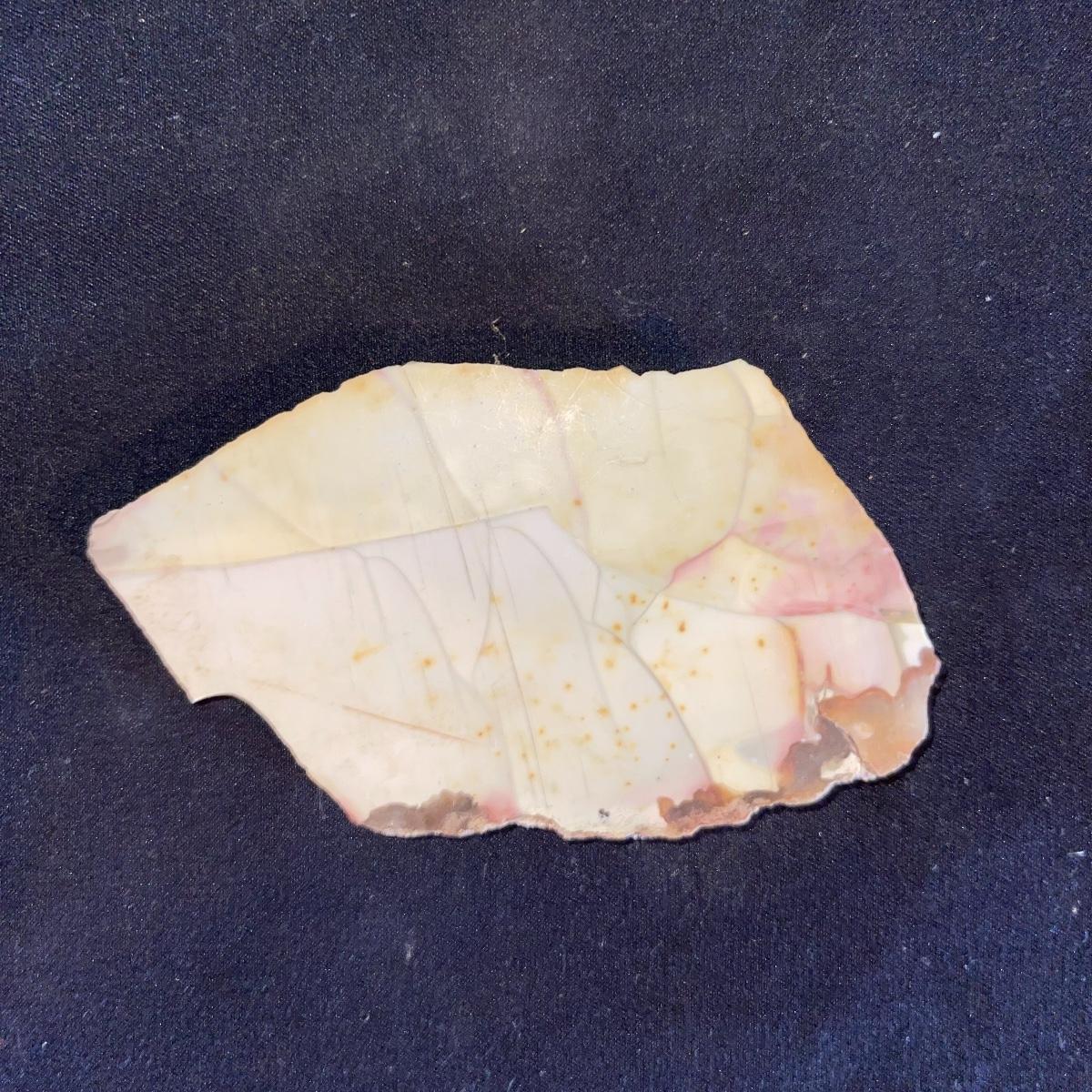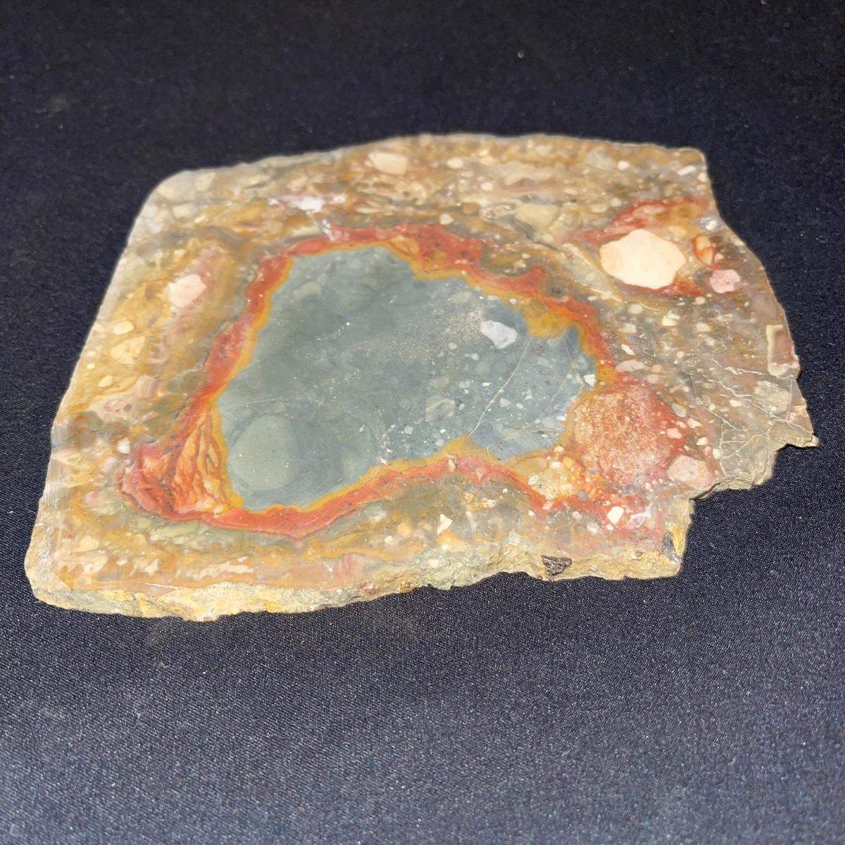 This collection of stone slabs has a variety of sizes, colors, shapes, thickness, and types of stones. Some of the stones in this lot may include jaspers from mines that have since closed. The largest slabs are about 10 inches, sizes of all other slabs are smaller than that; the smallest being about 2 inches. Some stones have price stickers on them, or some tape/stickers identifying where they are from. There is a bag of small tiger’s eye pieces that has a note inside identifying it as such.