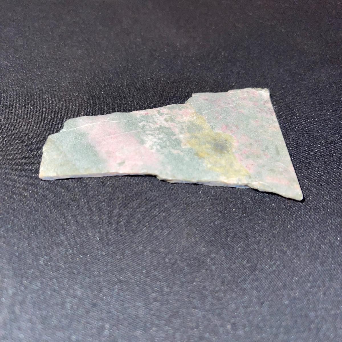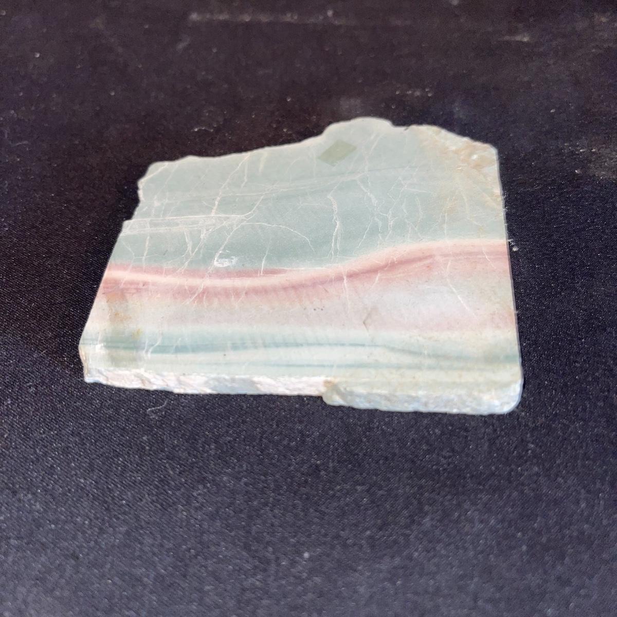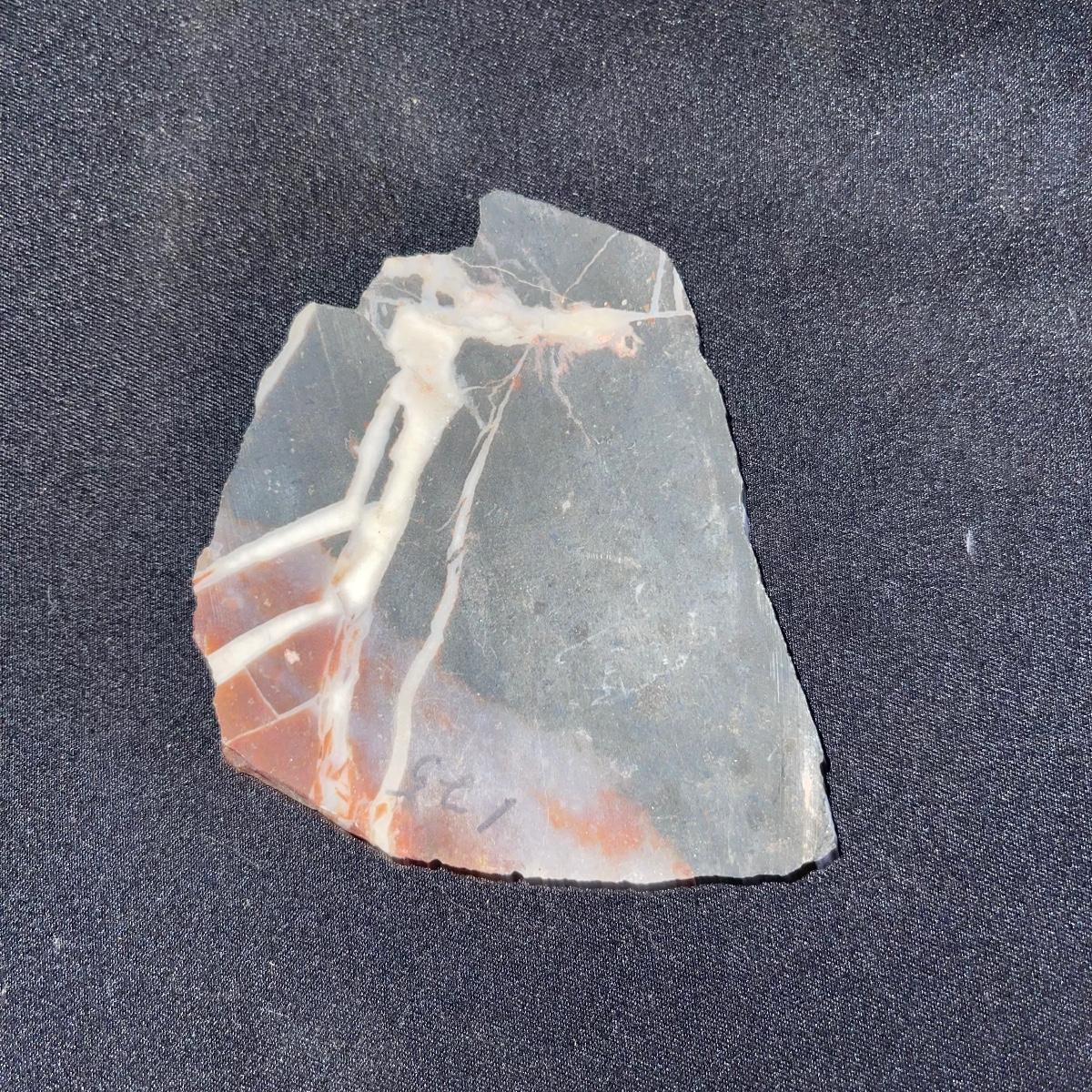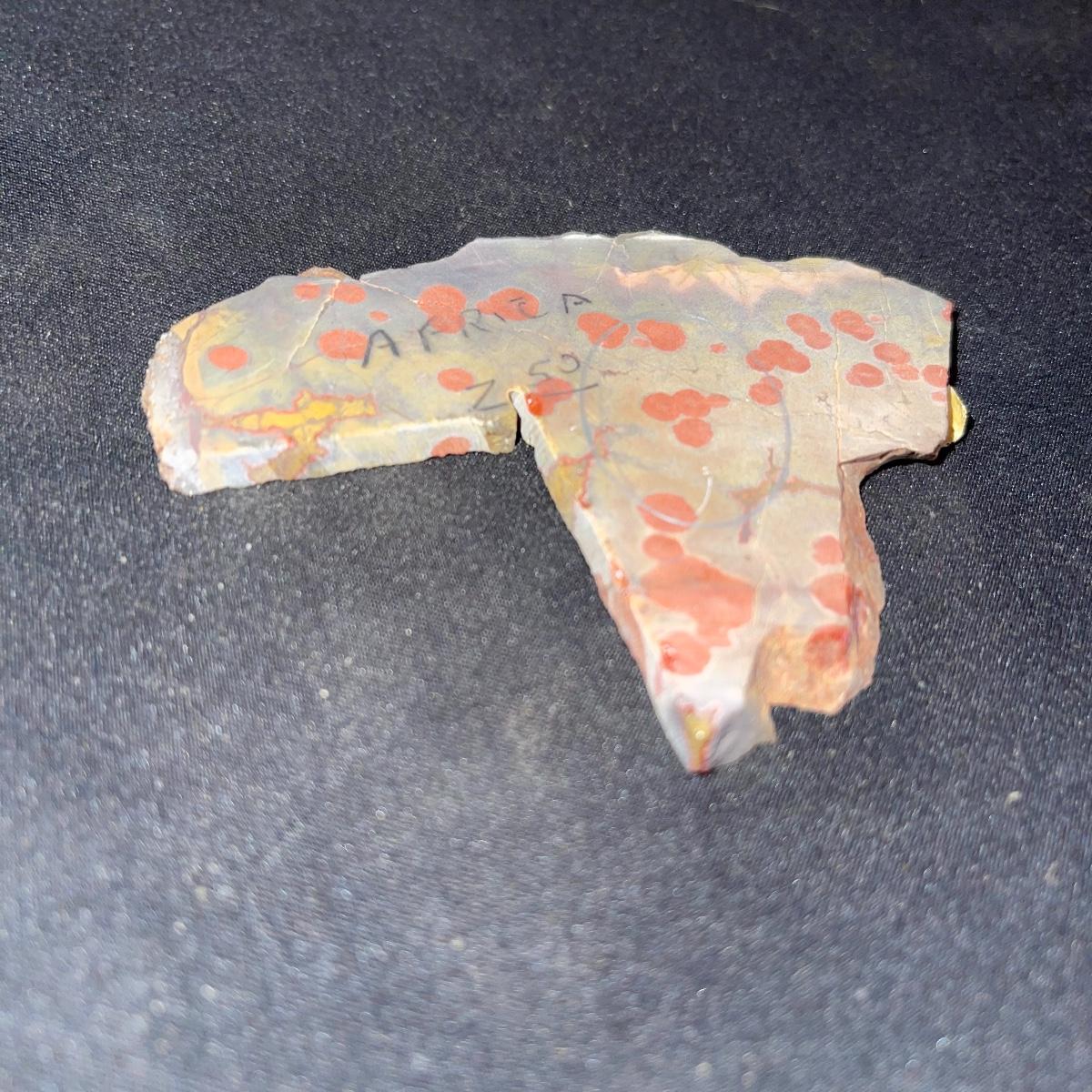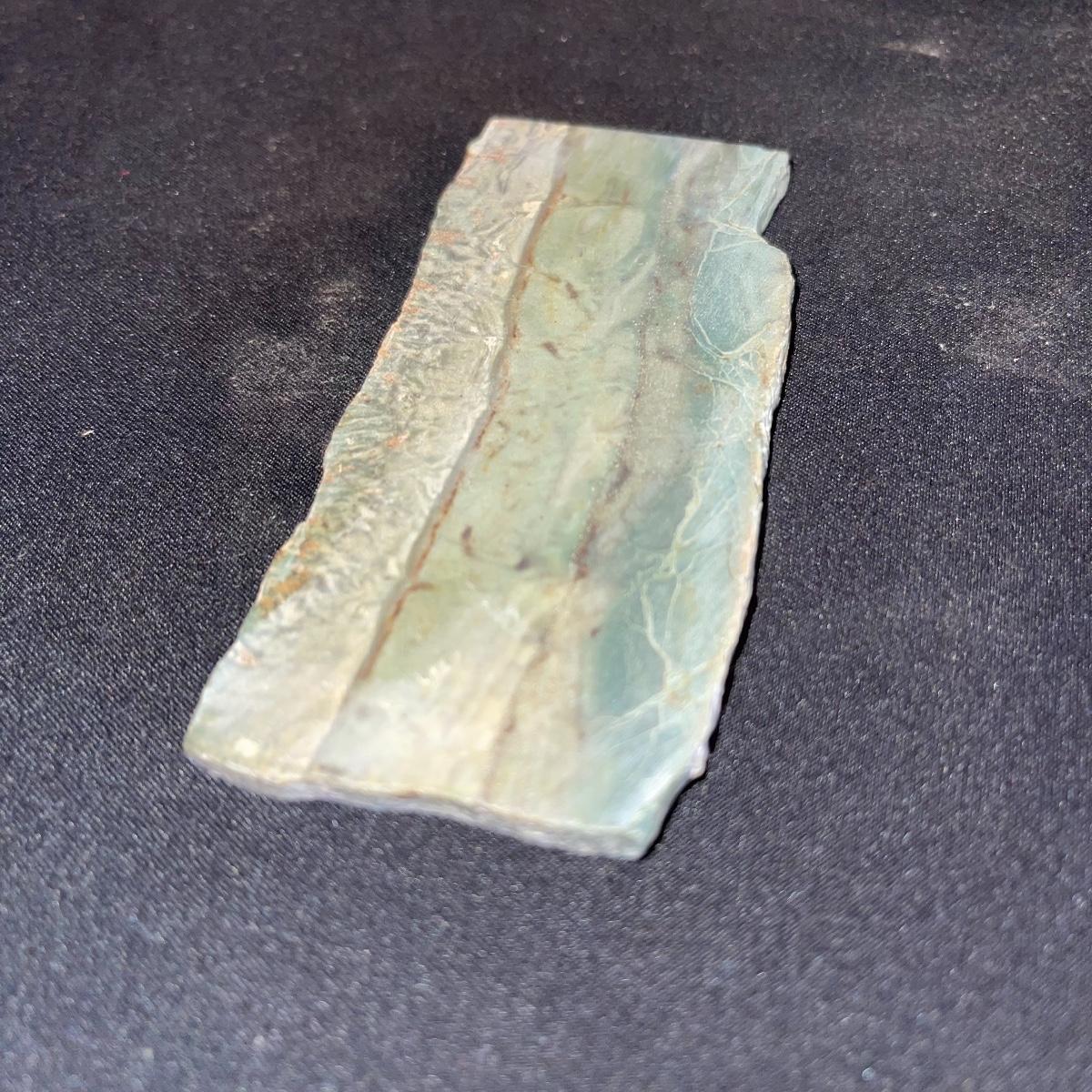 This collection of stone slabs has a variety of sizes, colors, shapes, thickness, and types of stones. Some of the stones in this lot may include jaspers from mines that have since closed. The largest slabs are about 10 inches, sizes of all other slabs are smaller than that; the smallest being about 2 inches. Some stones have price stickers on them, or some tape/stickers identifying where they are from. There is a bag of small tiger’s eye pieces that has a note inside identifying it as such.