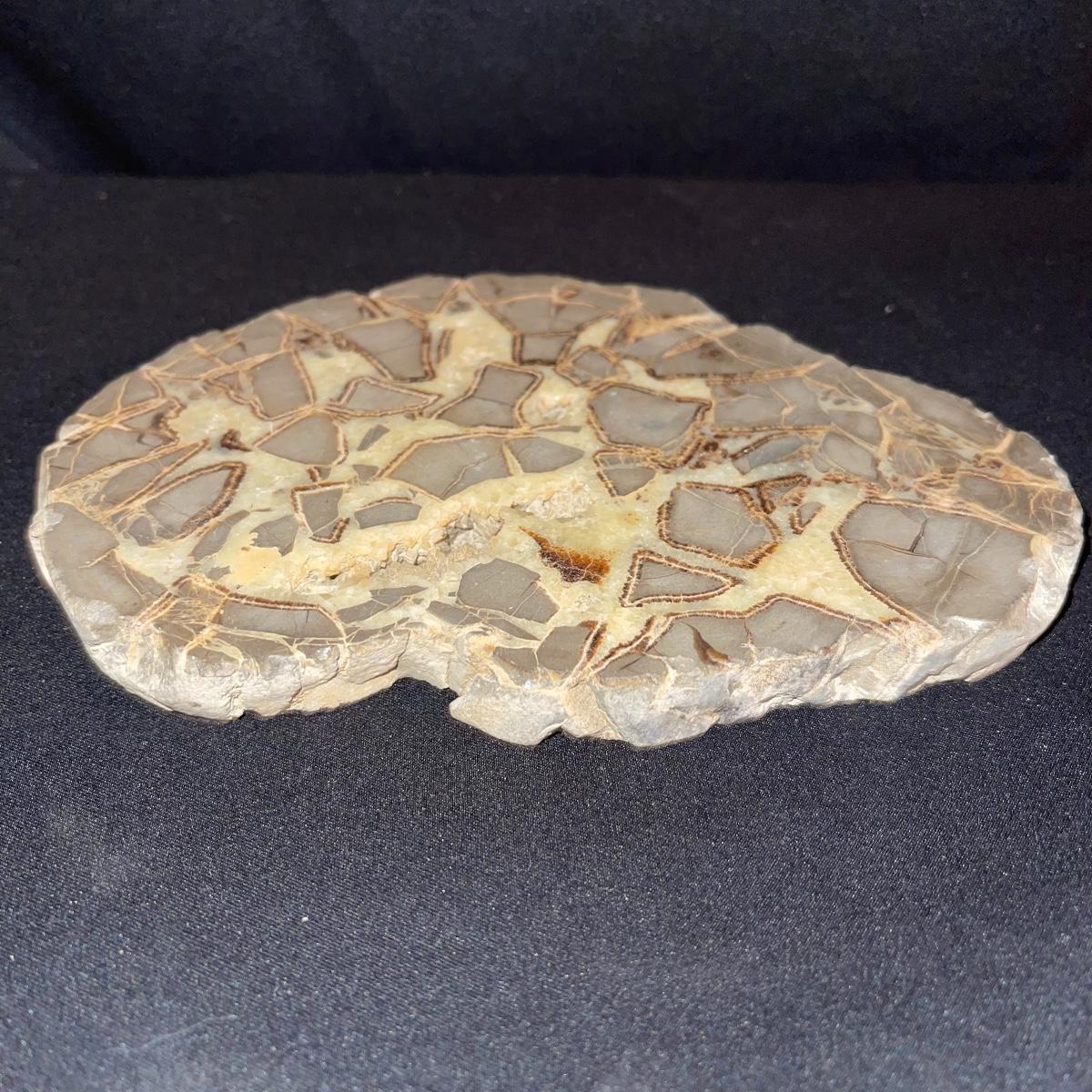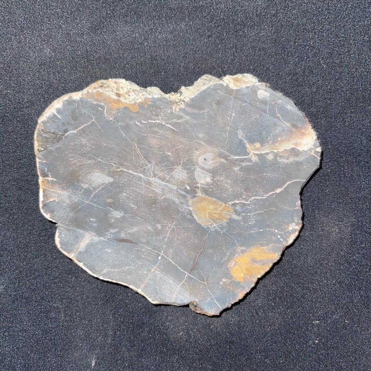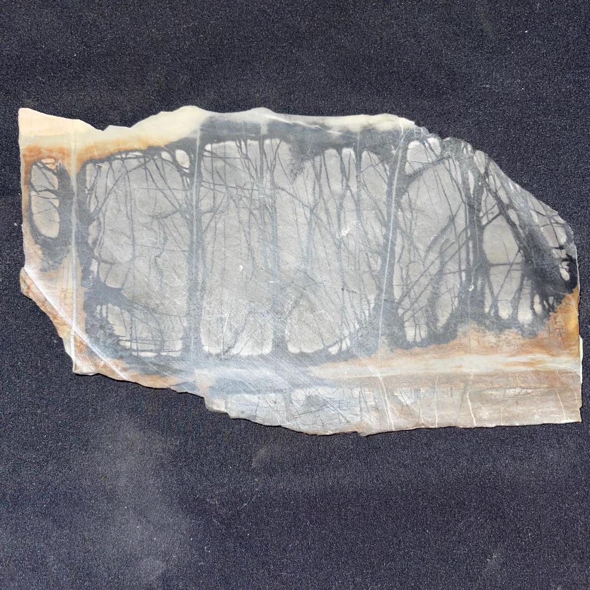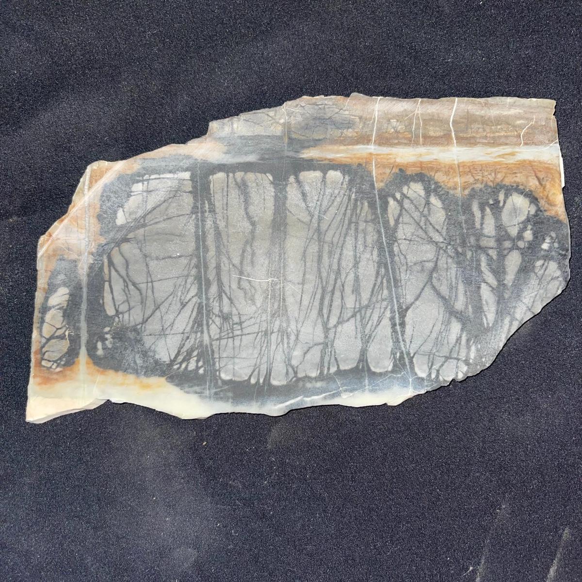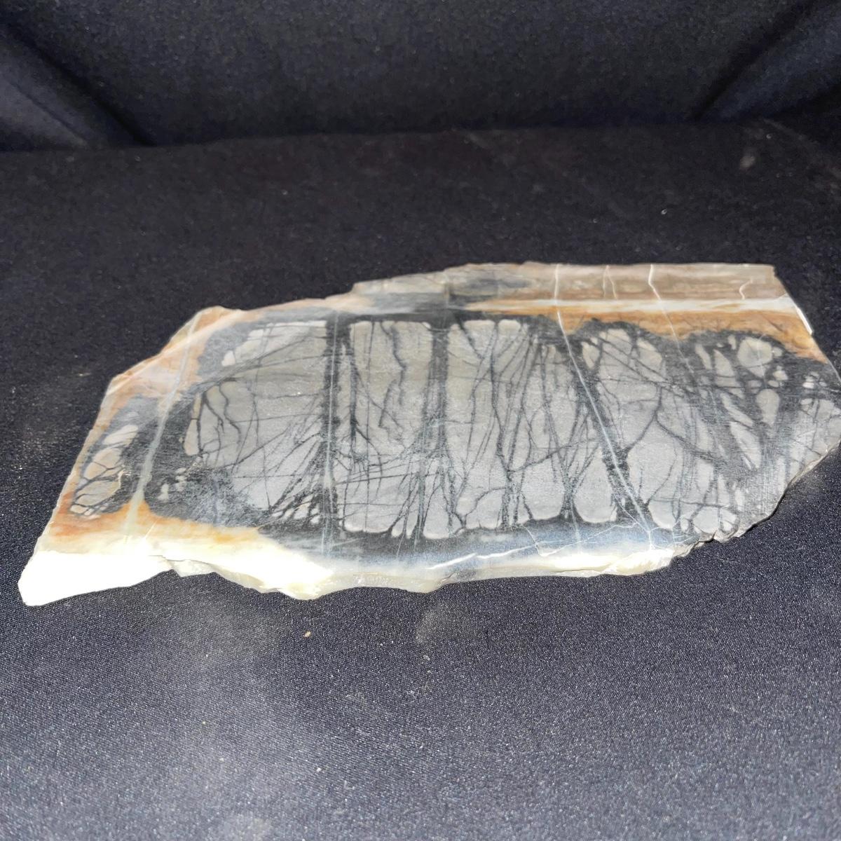 This collection of stone slabs has a variety of sizes, colors, shapes, thickness, and types of stones. Some of the stones in this lot may include jaspers from mines that have since closed. The largest slabs are about 10 inches, sizes of all other slabs are smaller than that; the smallest being about 2 inches. Some stones have price stickers on them, or some tape/stickers identifying where they are from. There is a bag of small tiger’s eye pieces that has a note inside identifying it as such.