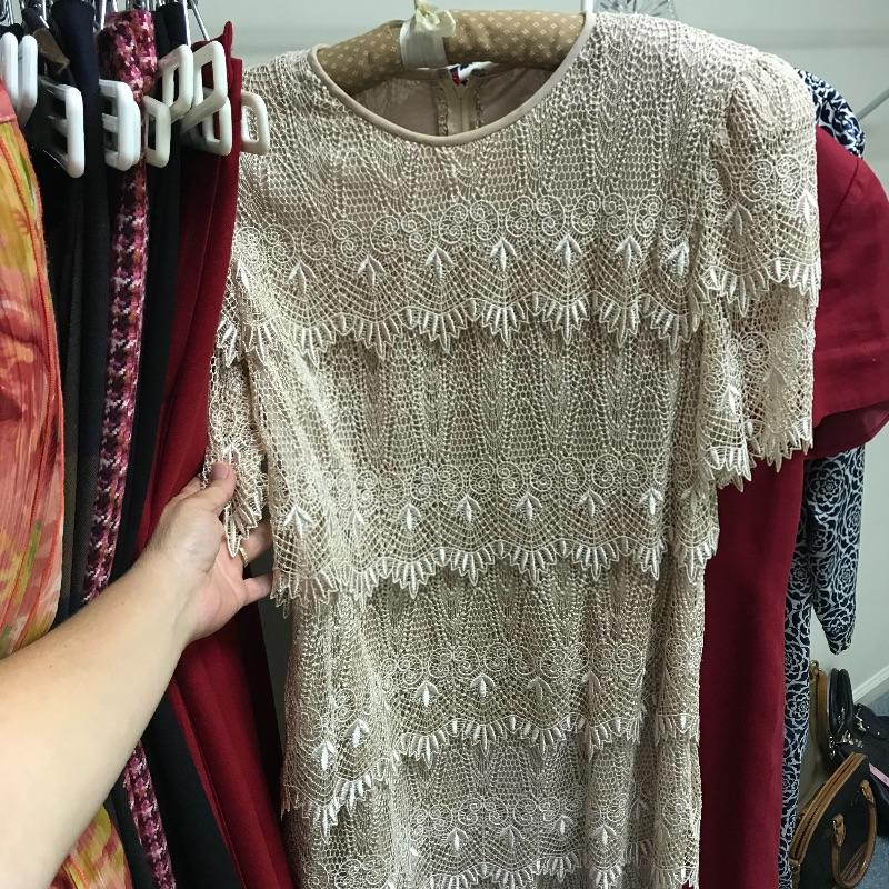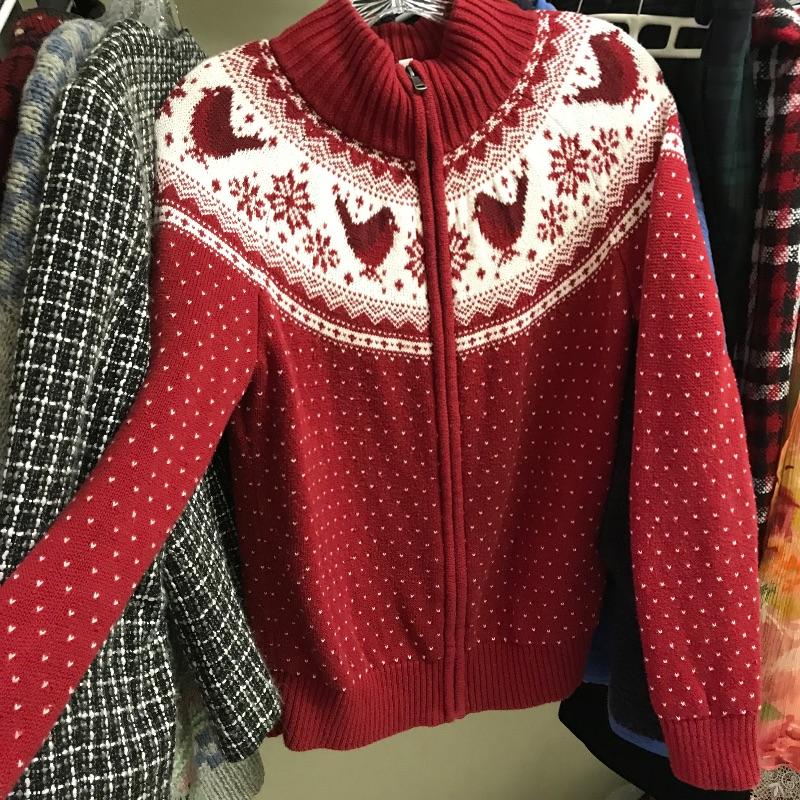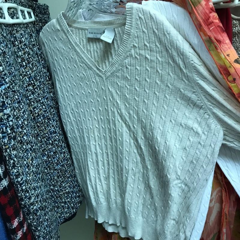 Very nice collection of mostly size large ladies clothing including a stunning silk feeling Oscar de la Renta dress. This dress has some discoloring, it is unclear if professional laundering would remedy, but certainly worth a try! Included in this lot are many size 12 items with some medium fleece style jackets and a sweater. Local Pickup Only.