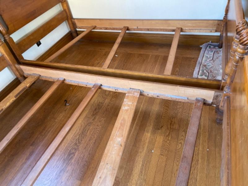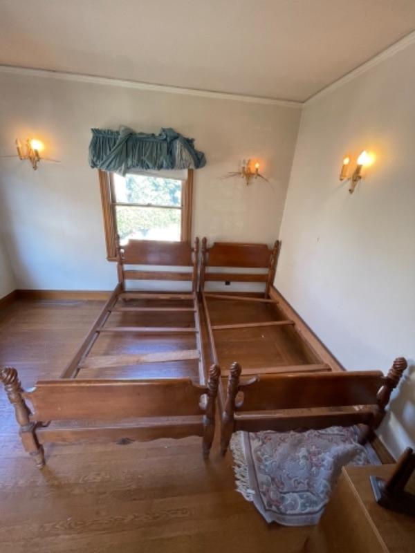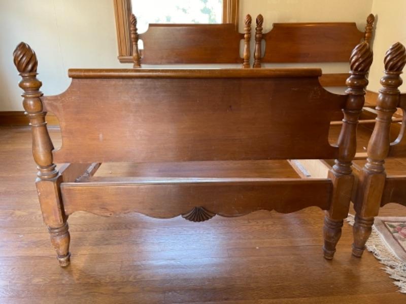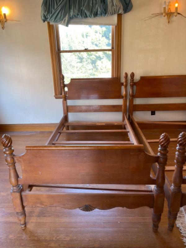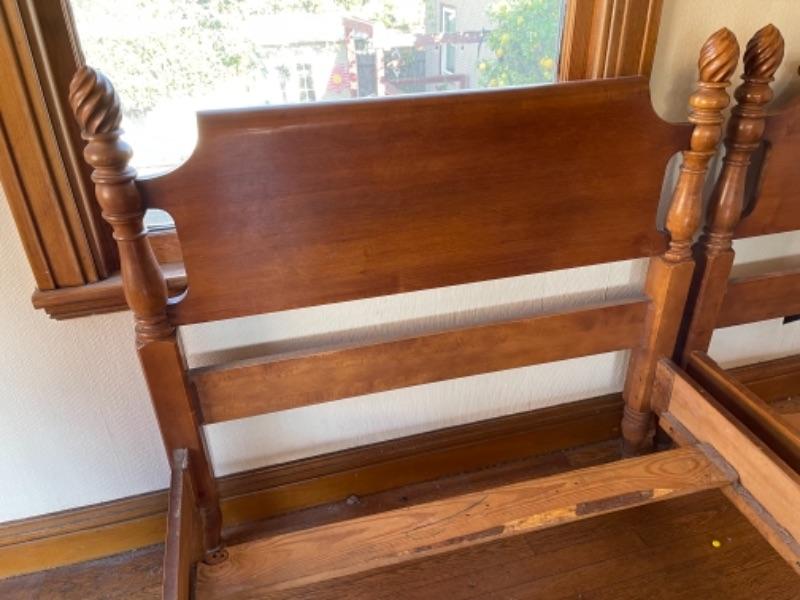 Lot 87. Pair of maple twin beds (1950s) (75”L x 39”W)--$35