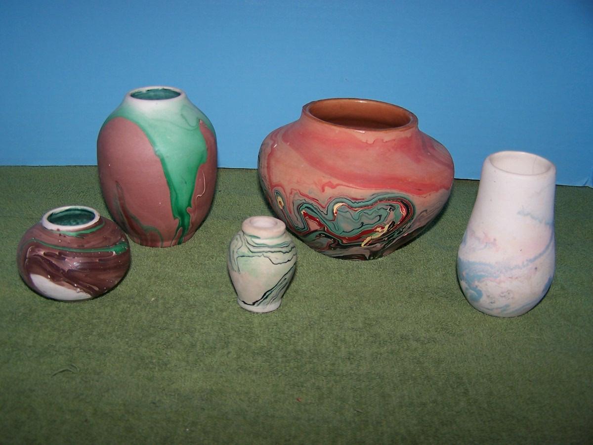 THEE ARE PRETTY VINTAGE SOUTHWESTERN POTTERY VASES..., ALL MARKED... LIGHT COLORED VASE IS 3 1/2'' TALL.. LIGHT WEAR, A FEW SMALL FLAKES...