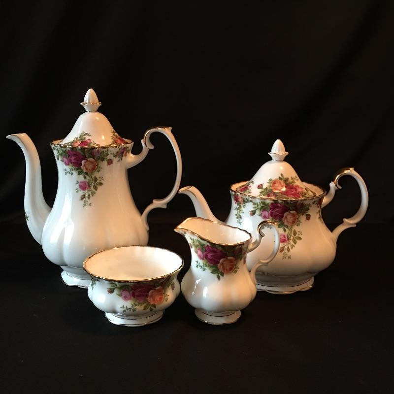 Royal Albert Old Country Roses tea set includes two teapots and a cream and sugar bowl. Get yourself some of the most popular style pattern of china in the world with this lovely set of Old Country Roses.