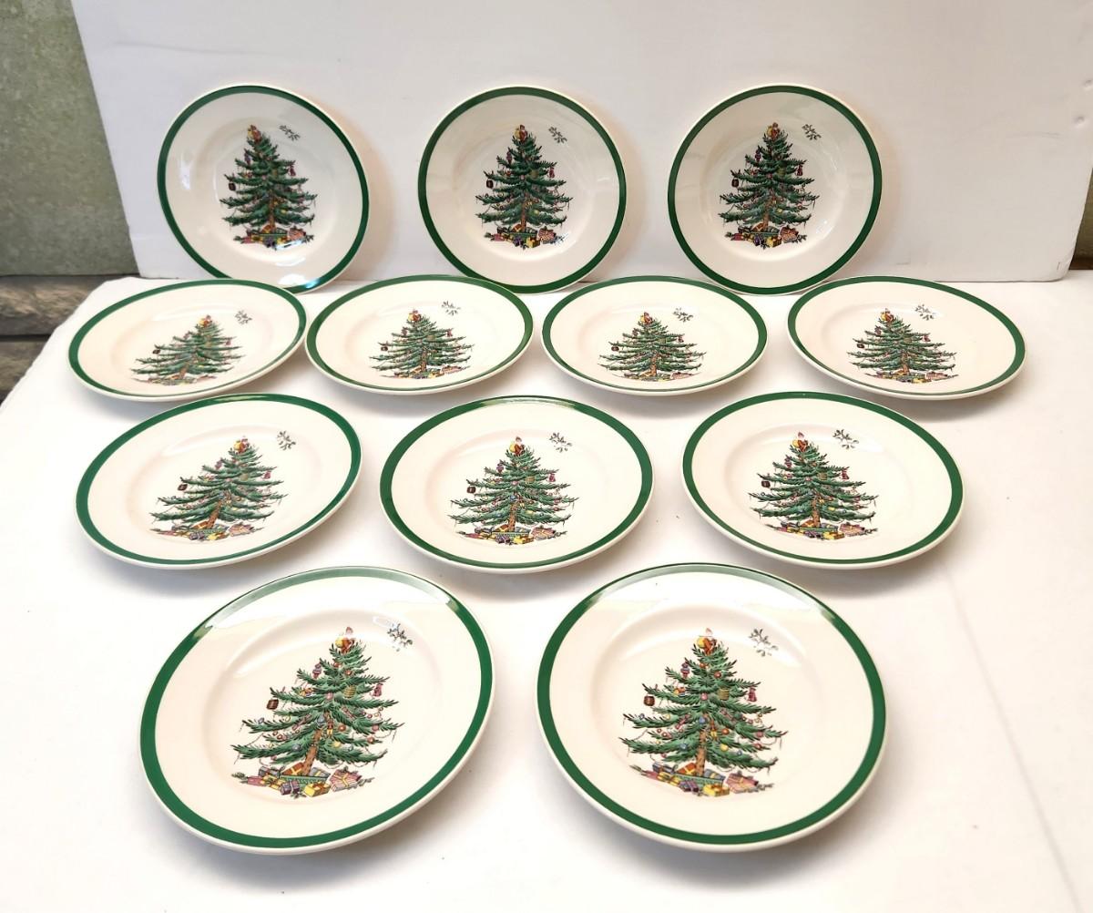 Lot of 12 Salad Plates in the Spode "Christmas Tree" pattern, each 6.5" across. Good condition. Good chance to expand your set for holiday entertaining.