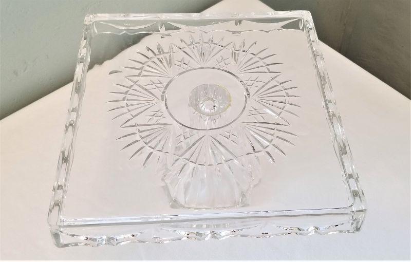 Lot #87 Very Attractive Crystal Cake Plate on Stand - Square