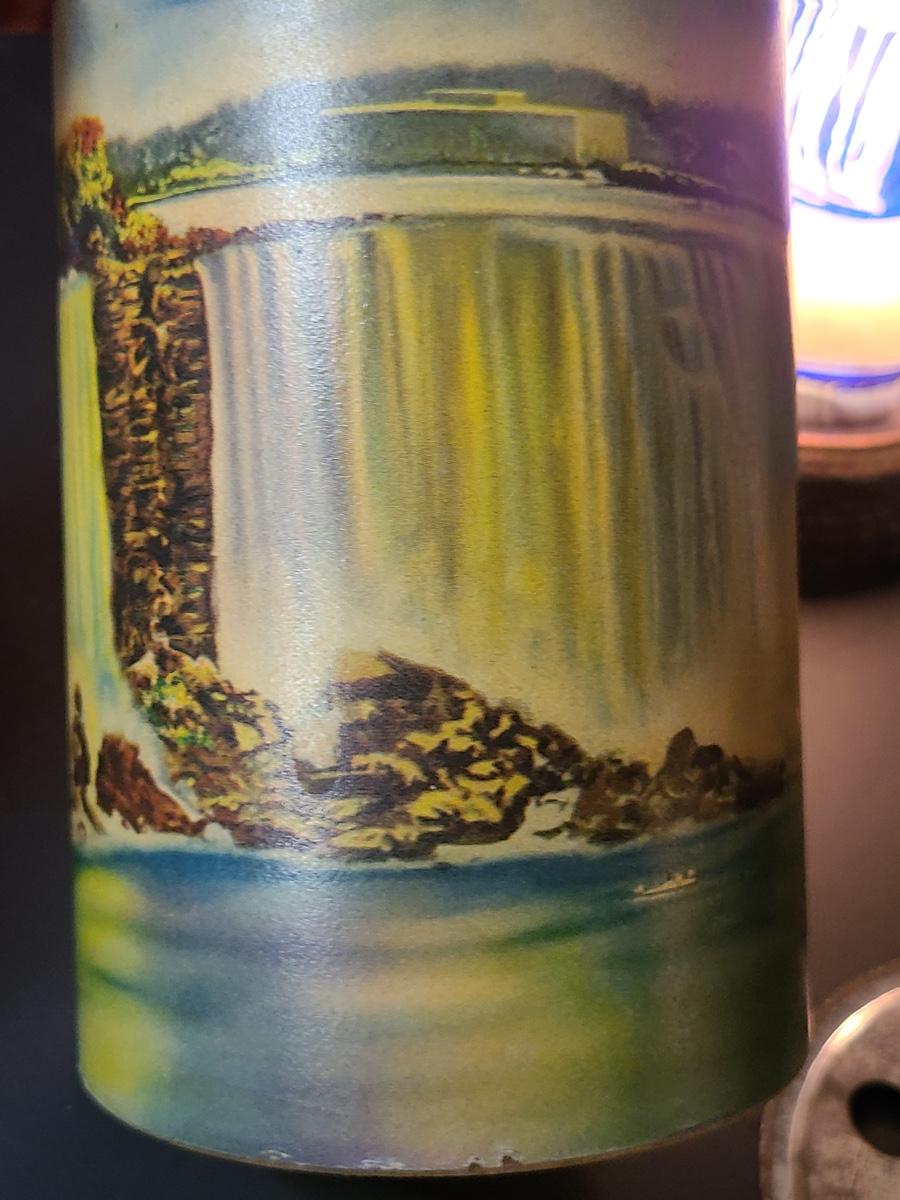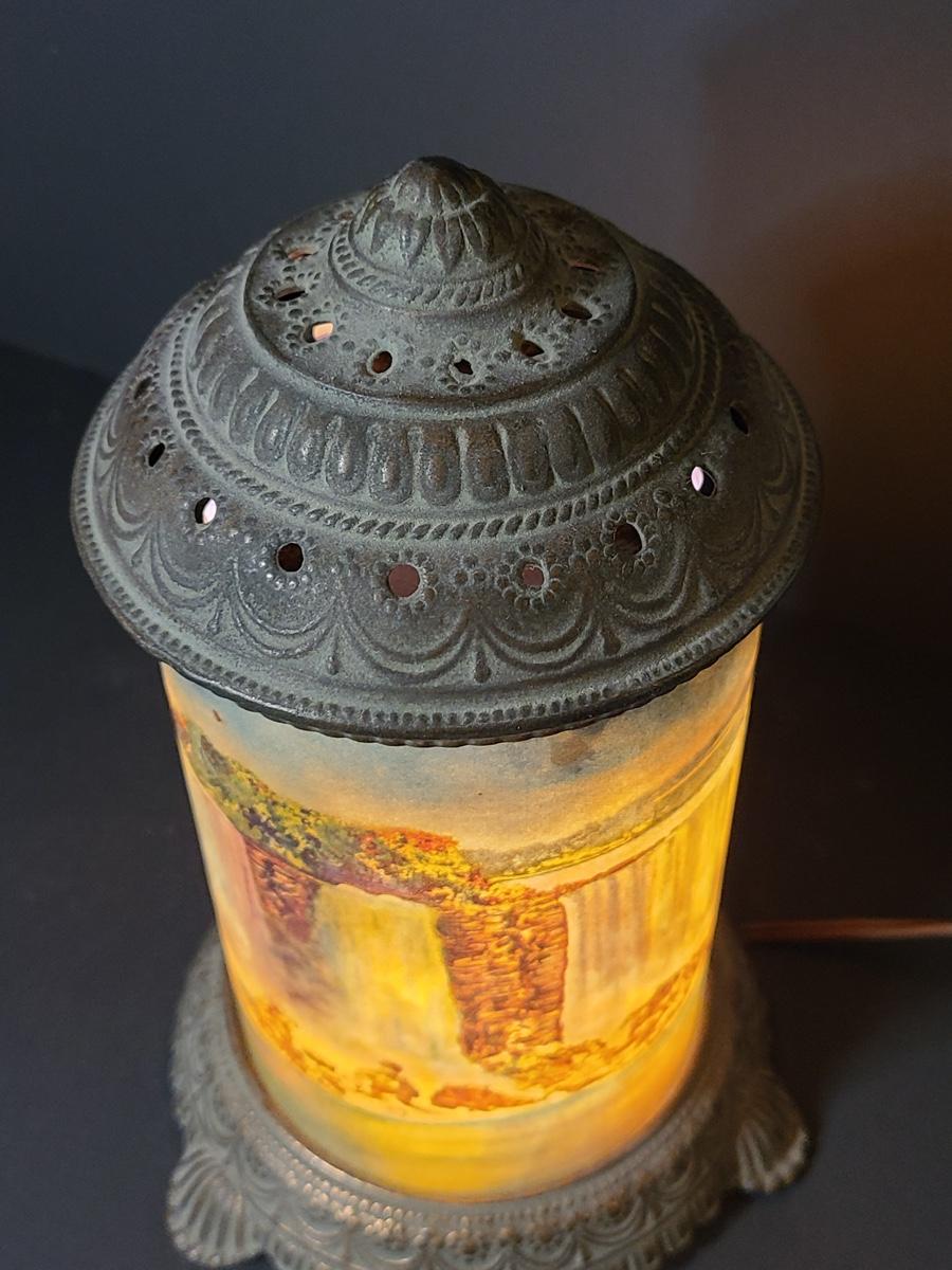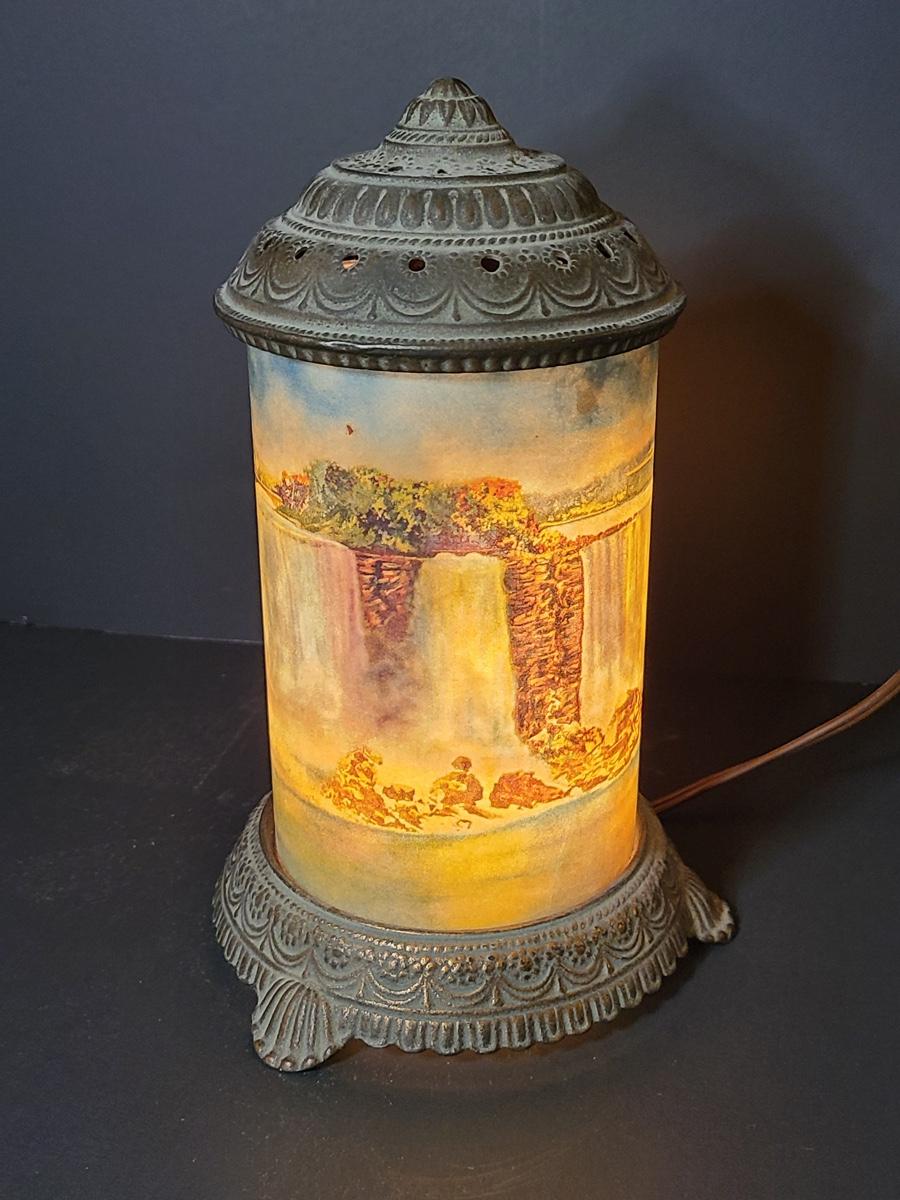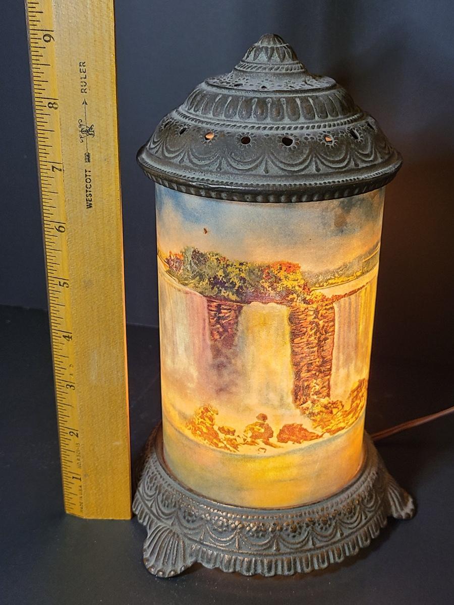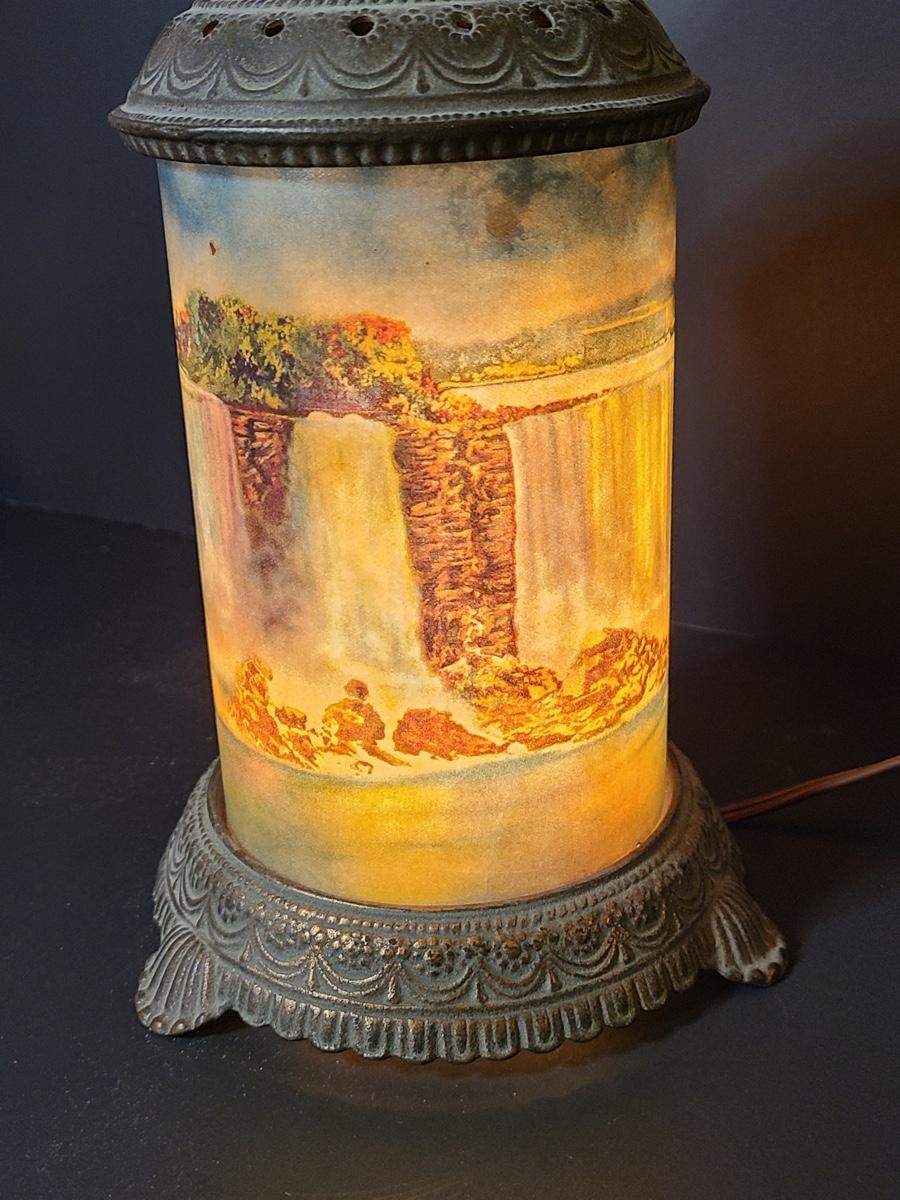 This gorgeous lamp, depicts Niagra Falls and when heats up, it is supposed to spin on the inside so the water is flowing. This does look to have all of the parts, but it was not spinning. When lit, this gives off a beautiful soft glow, and illuminates the falls. The top and the bottom are cast iron. Please see all pictures as they are the best representation of the items. The pictures show condition, measurements if taken, and what is included in the lot. Due to the large amount that we photograph and the time frame, we are not always able to take measurements. All items unless noted, are pre-owned and have been used. If you purchased furniture, you must bring help. We do not allow one person to carry large furniture out on their own. Bring help, tools and a truck for the safety of our client’s homes, and your personal safety. Company policy. Thank you.