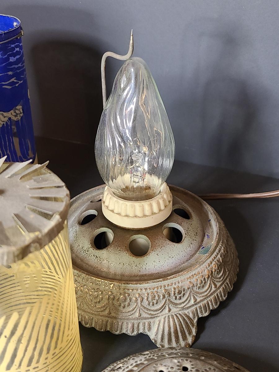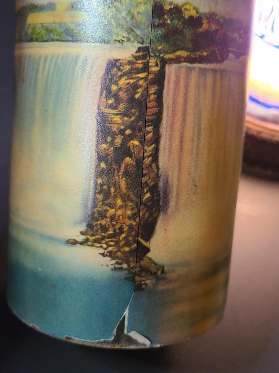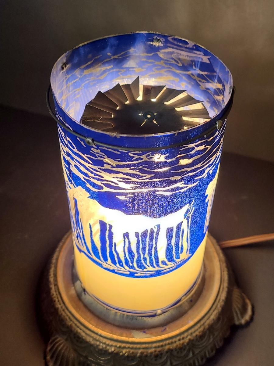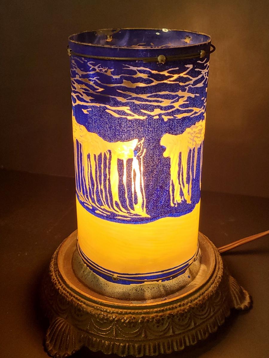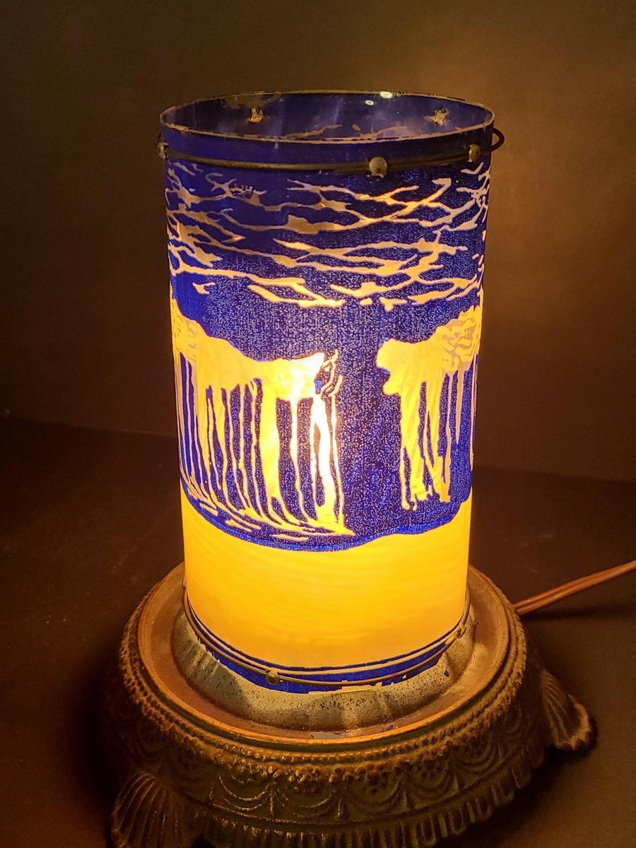 This gorgeous lamp, depicts Niagra Falls and when heats up, it is supposed to spin on the inside so the water is flowing. This does look to have all of the parts, but it was not spinning. When lit, this gives off a beautiful soft glow, and illuminates the falls. The top and the bottom are cast iron. Please see all pictures as they are the best representation of the items. The pictures show condition, measurements if taken, and what is included in the lot. Due to the large amount that we photograph and the time frame, we are not always able to take measurements. All items unless noted, are pre-owned and have been used. If you purchased furniture, you must bring help. We do not allow one person to carry large furniture out on their own. Bring help, tools and a truck for the safety of our client’s homes, and your personal safety. Company policy. Thank you.