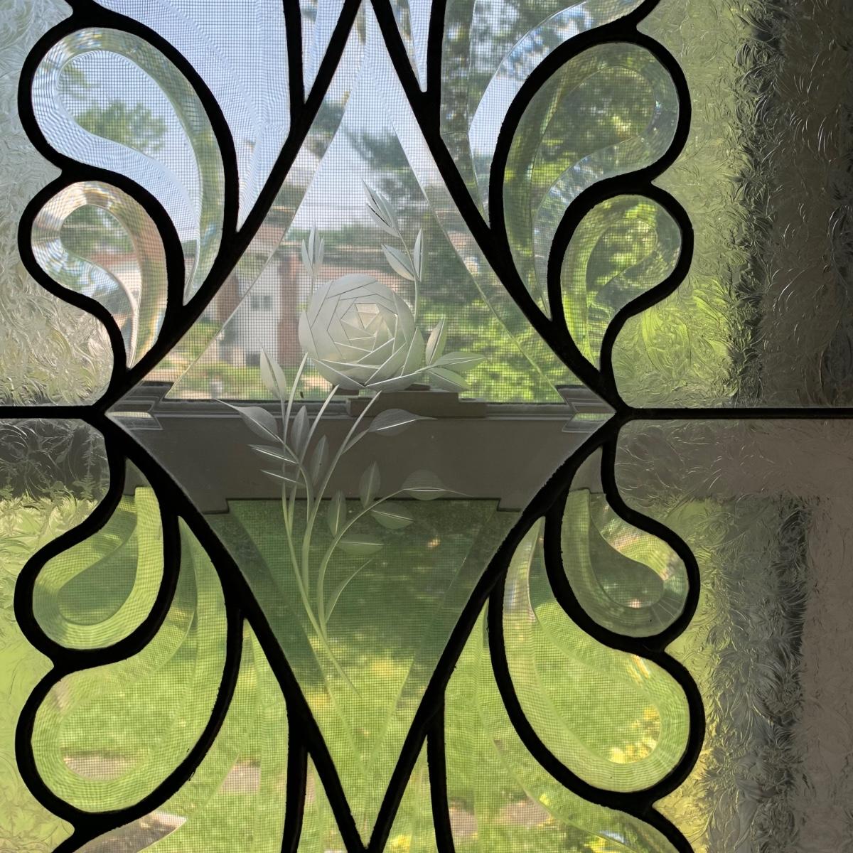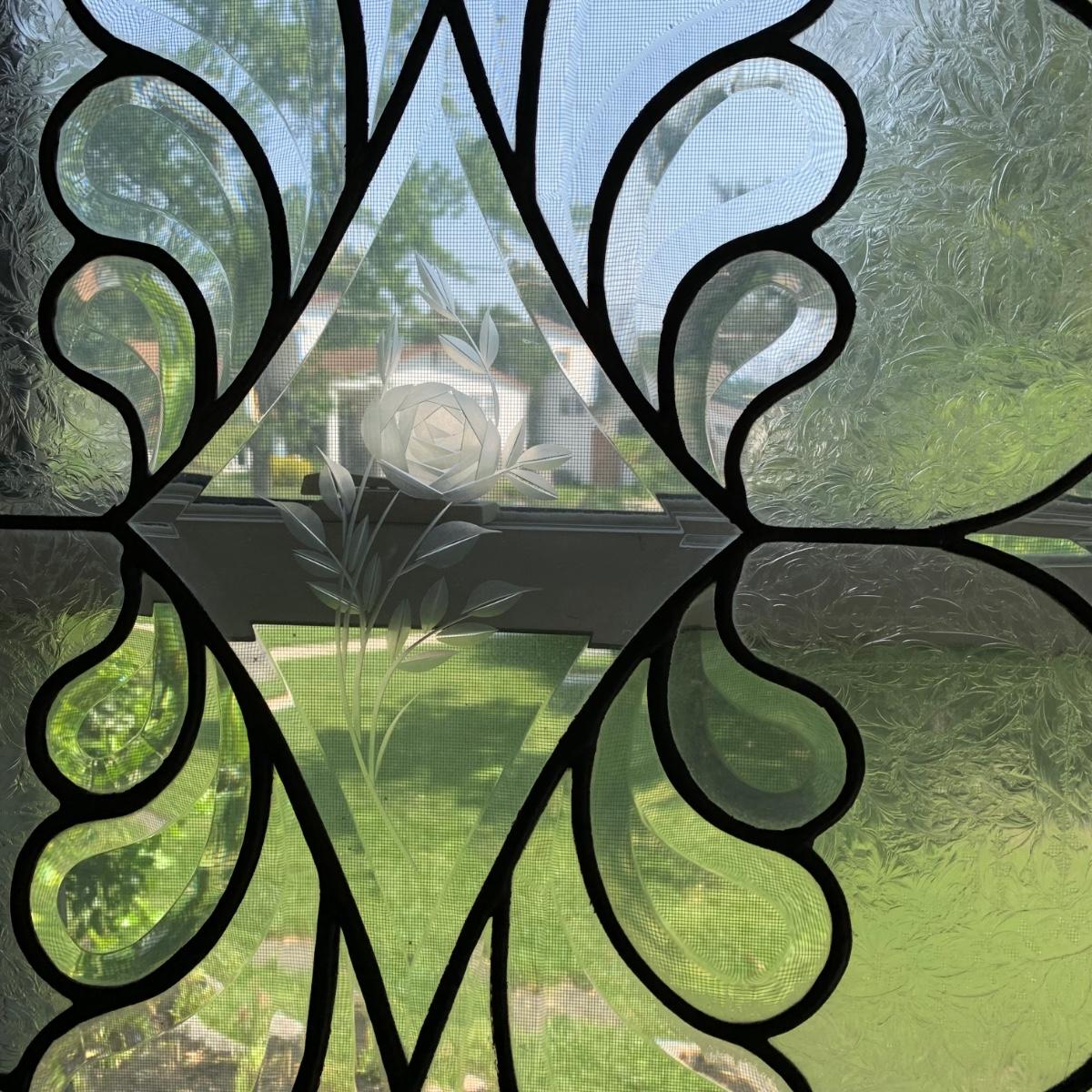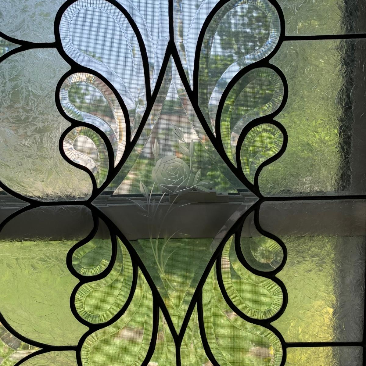 LOT 4R: Stained Glass  Window Panel w/Etched Rose