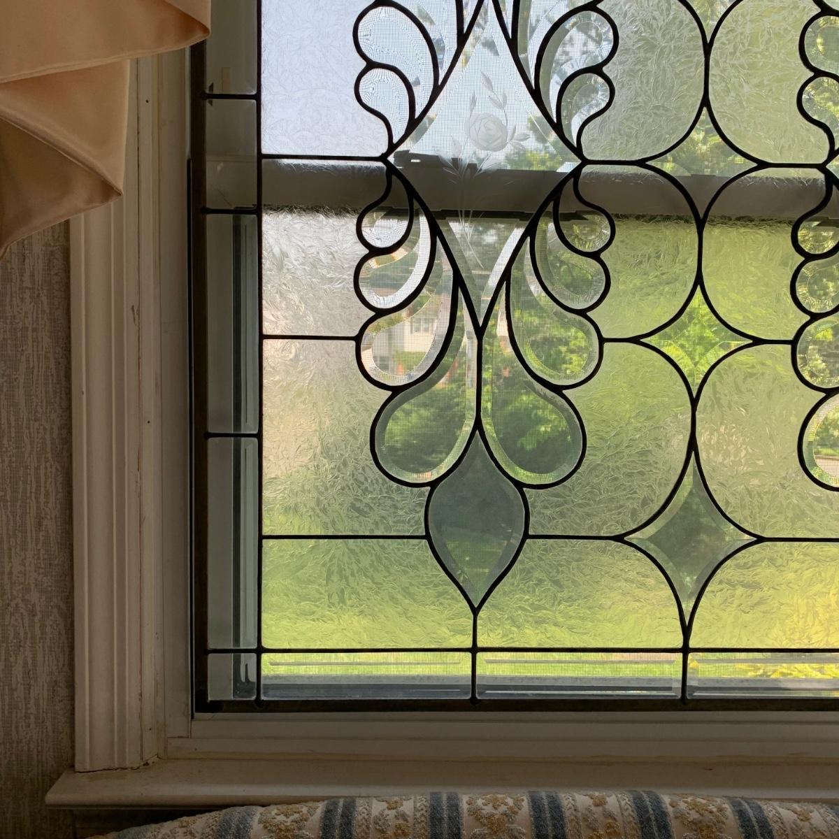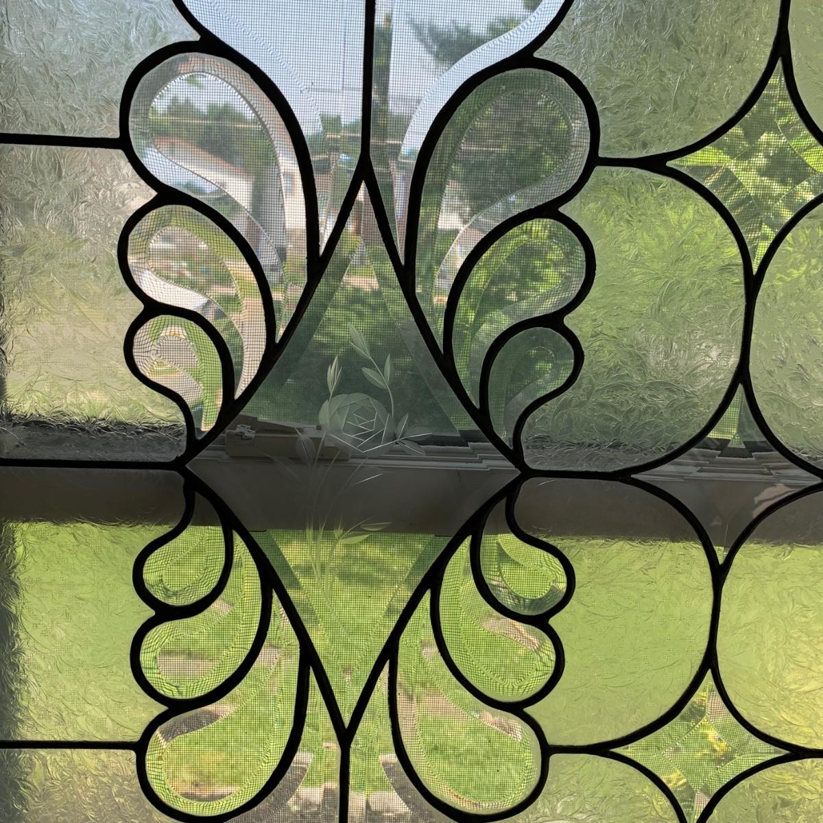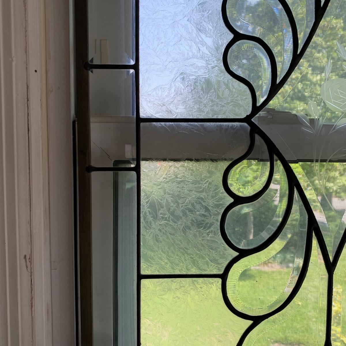 LOT 4R: Stained Glass  Window Panel w/Etched Rose