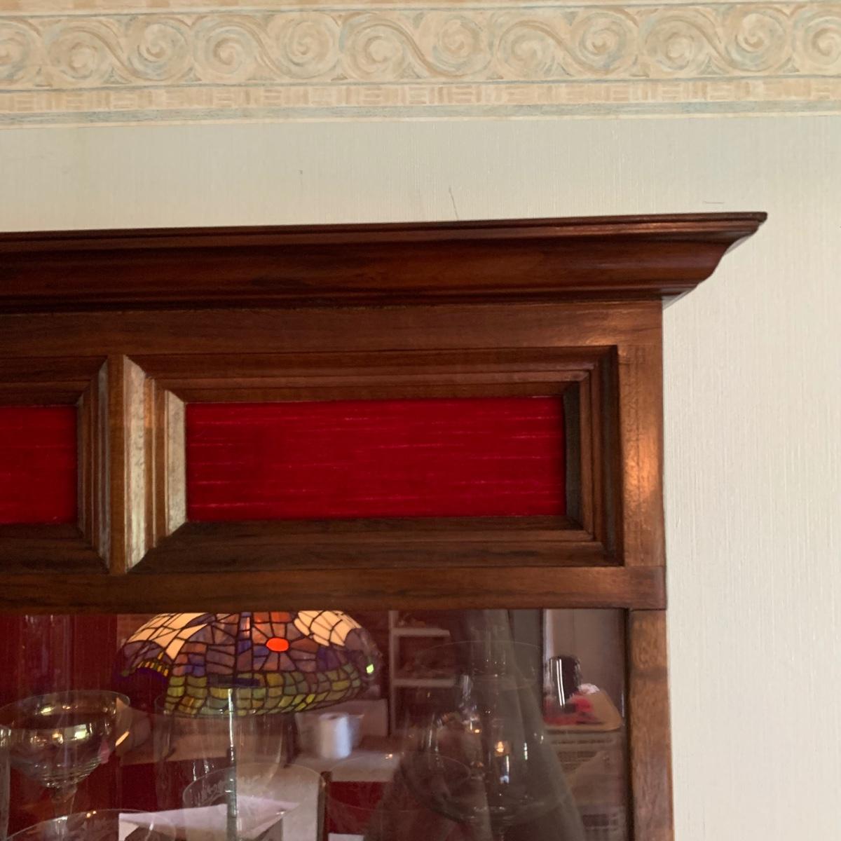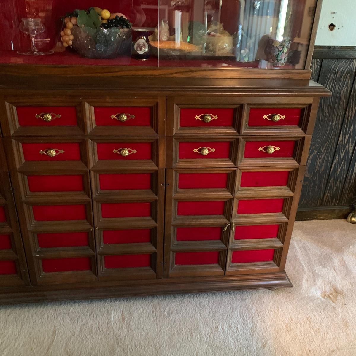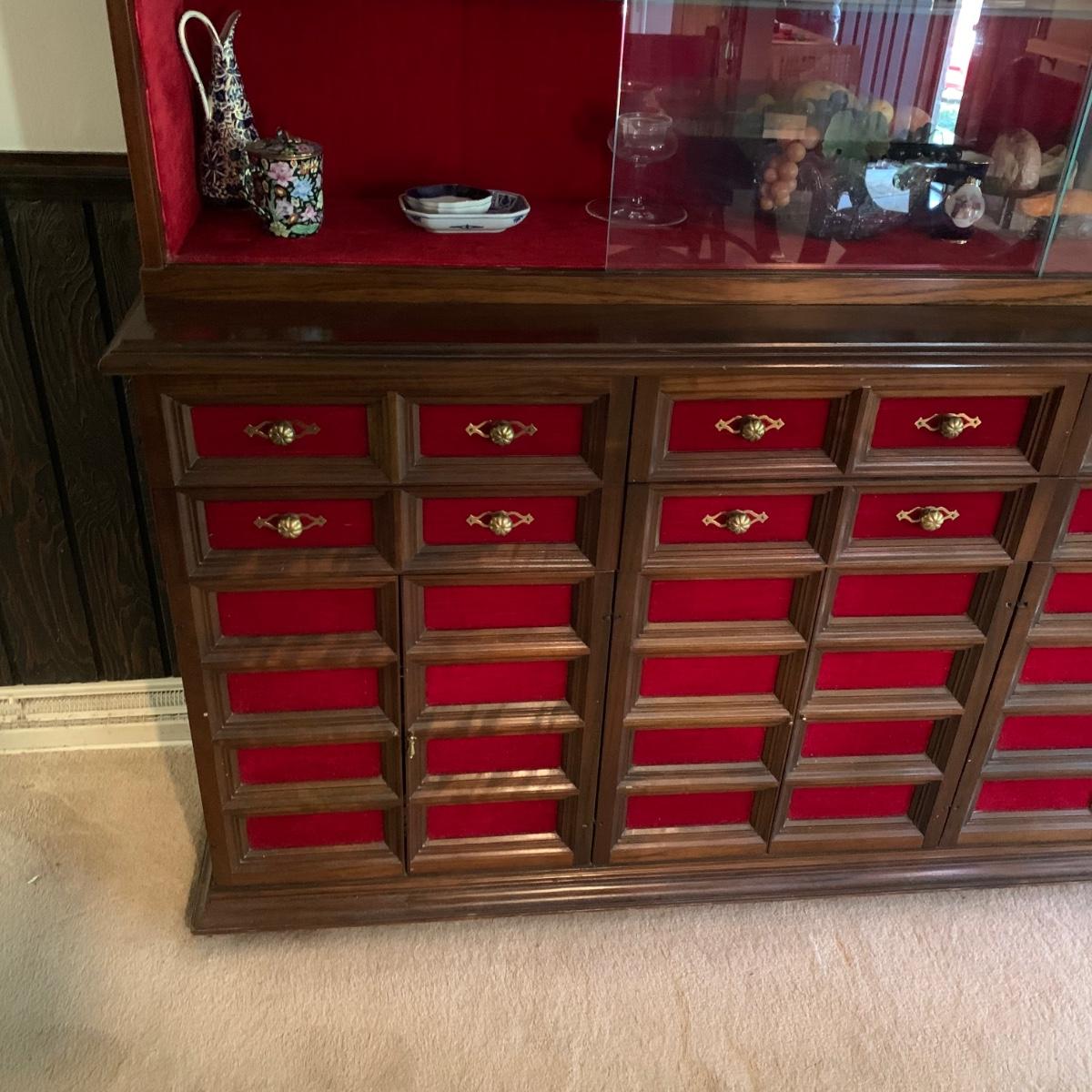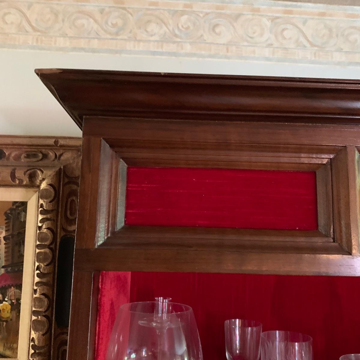 LOT 14R: Vintage High-End Display Cabinet w/Glass Sliding Doors, Red Velvet Interior & Accents