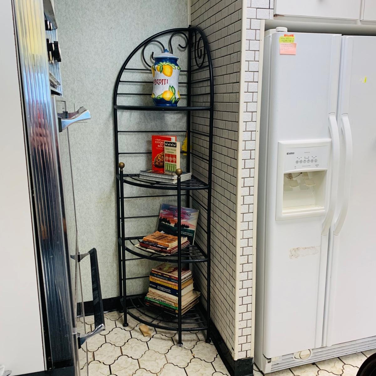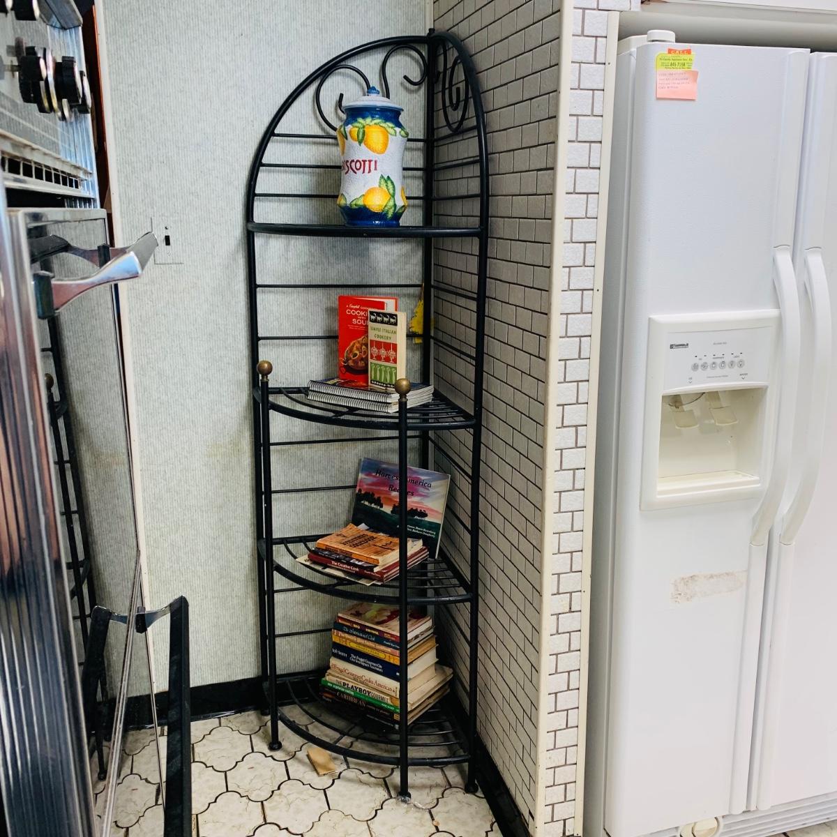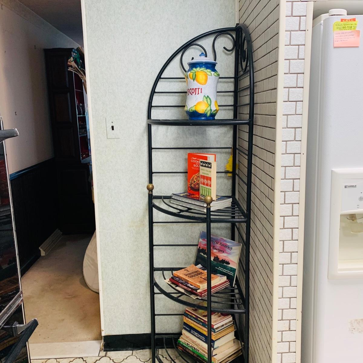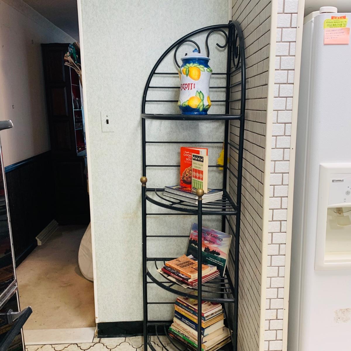 LOT 17R: Black Metal Corner Bakers/Plant Rack & More