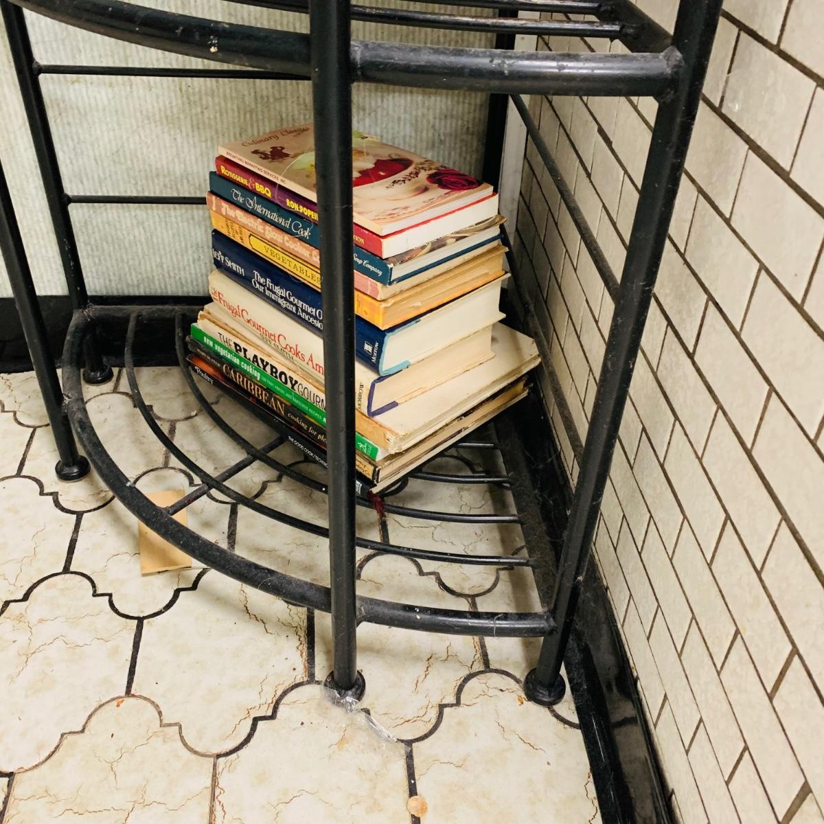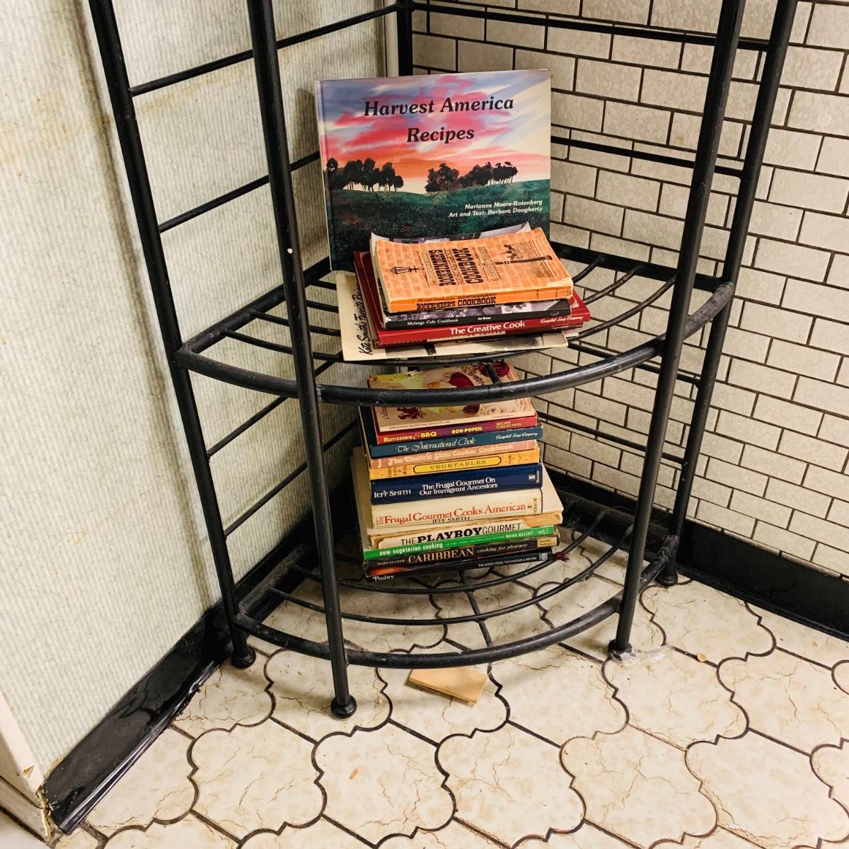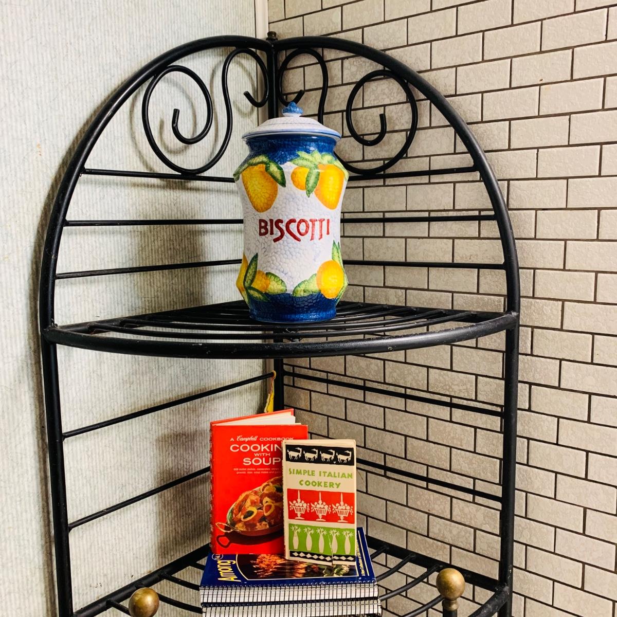26 x 19 x 72. Includes cookbooks and Biscotti Jar
