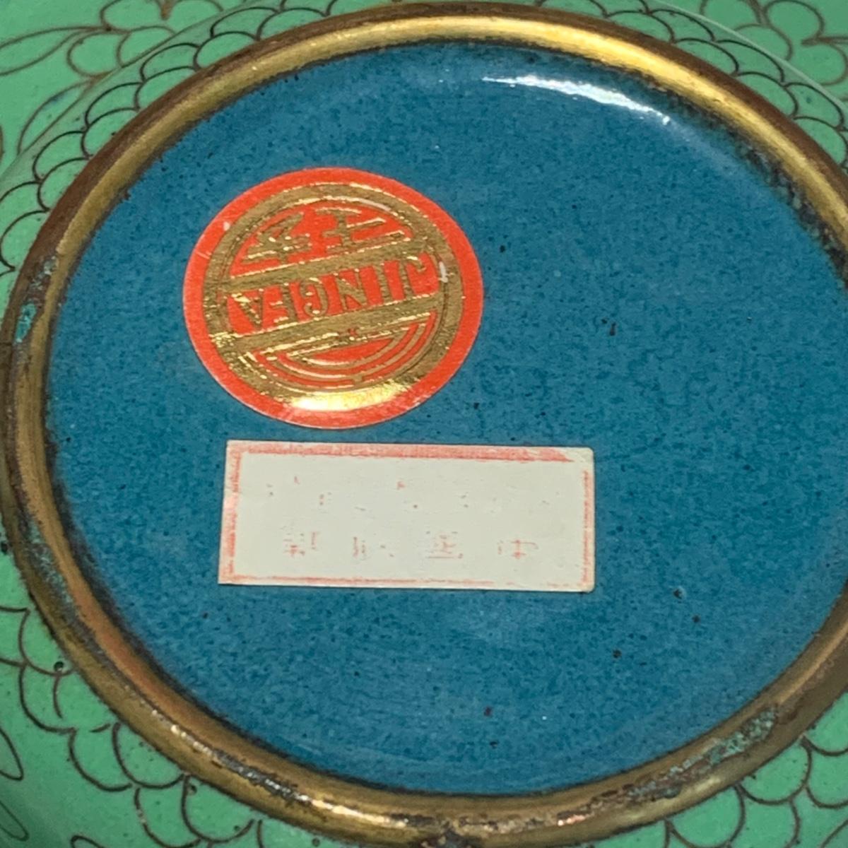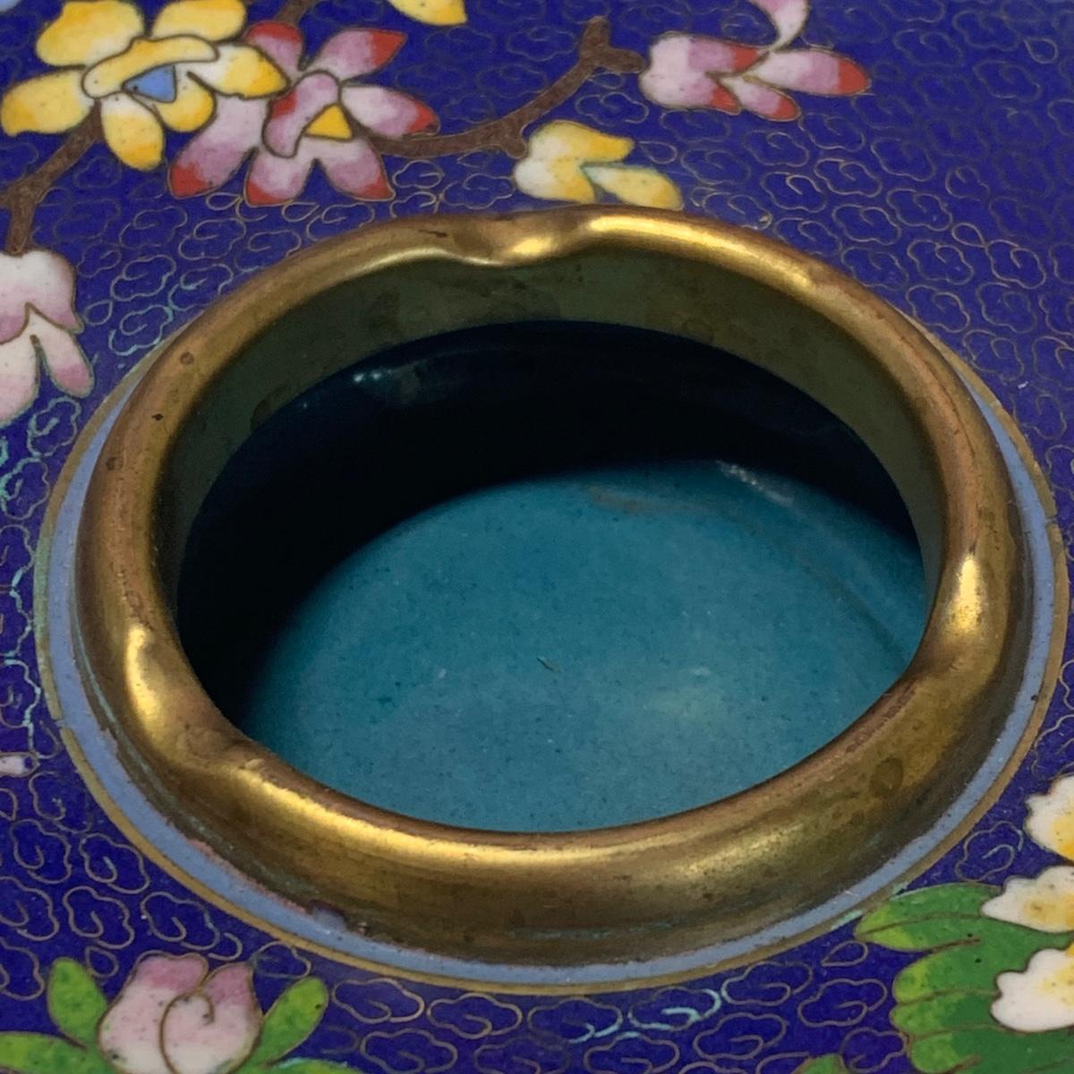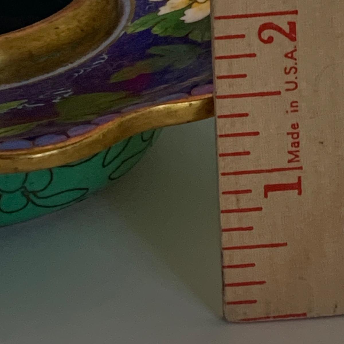 Vintage JINGFA Small Chinese Cloisonné Enamel Metal Ashtray Gold White Floral-G6