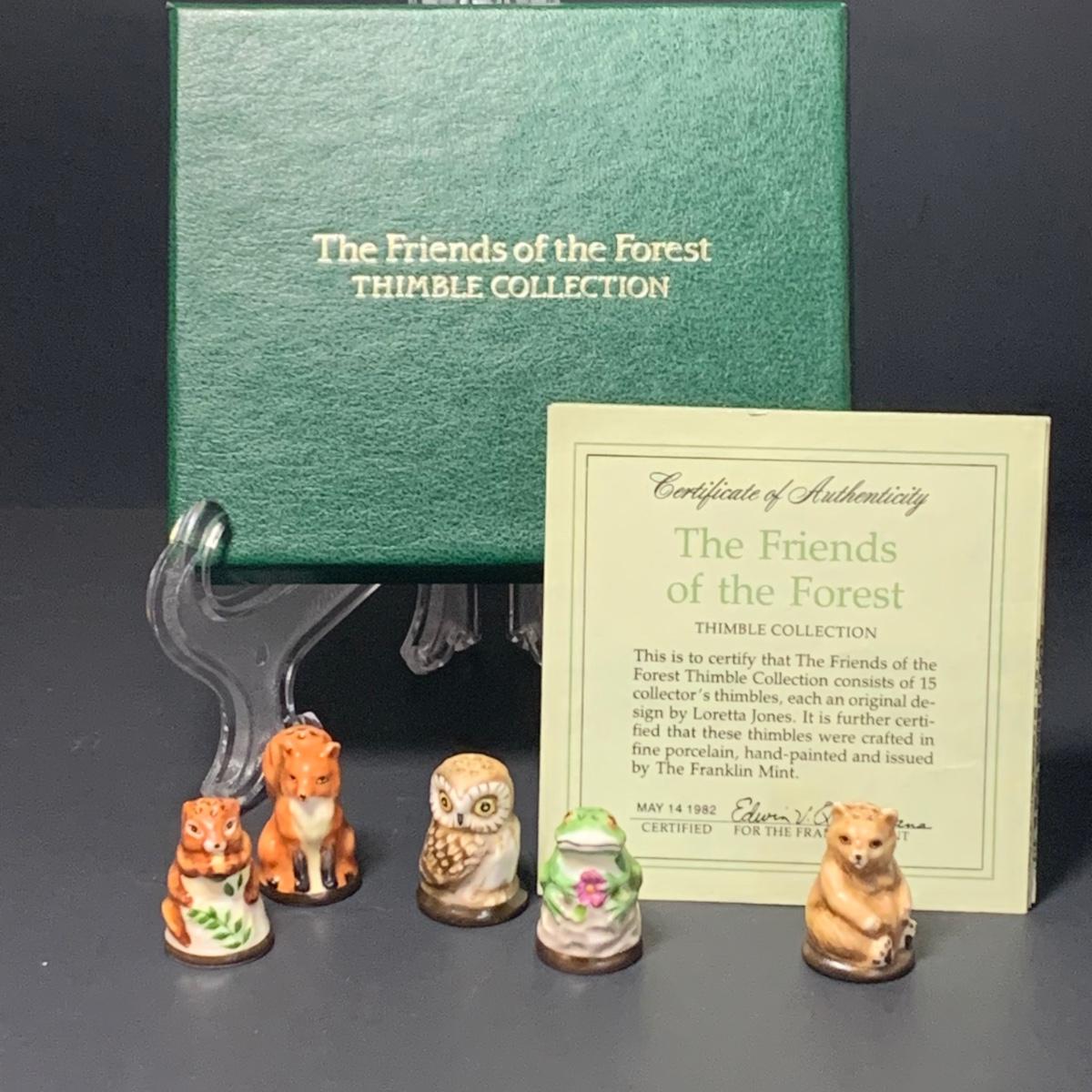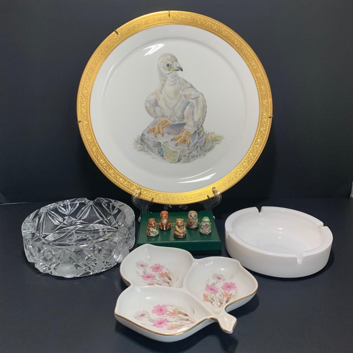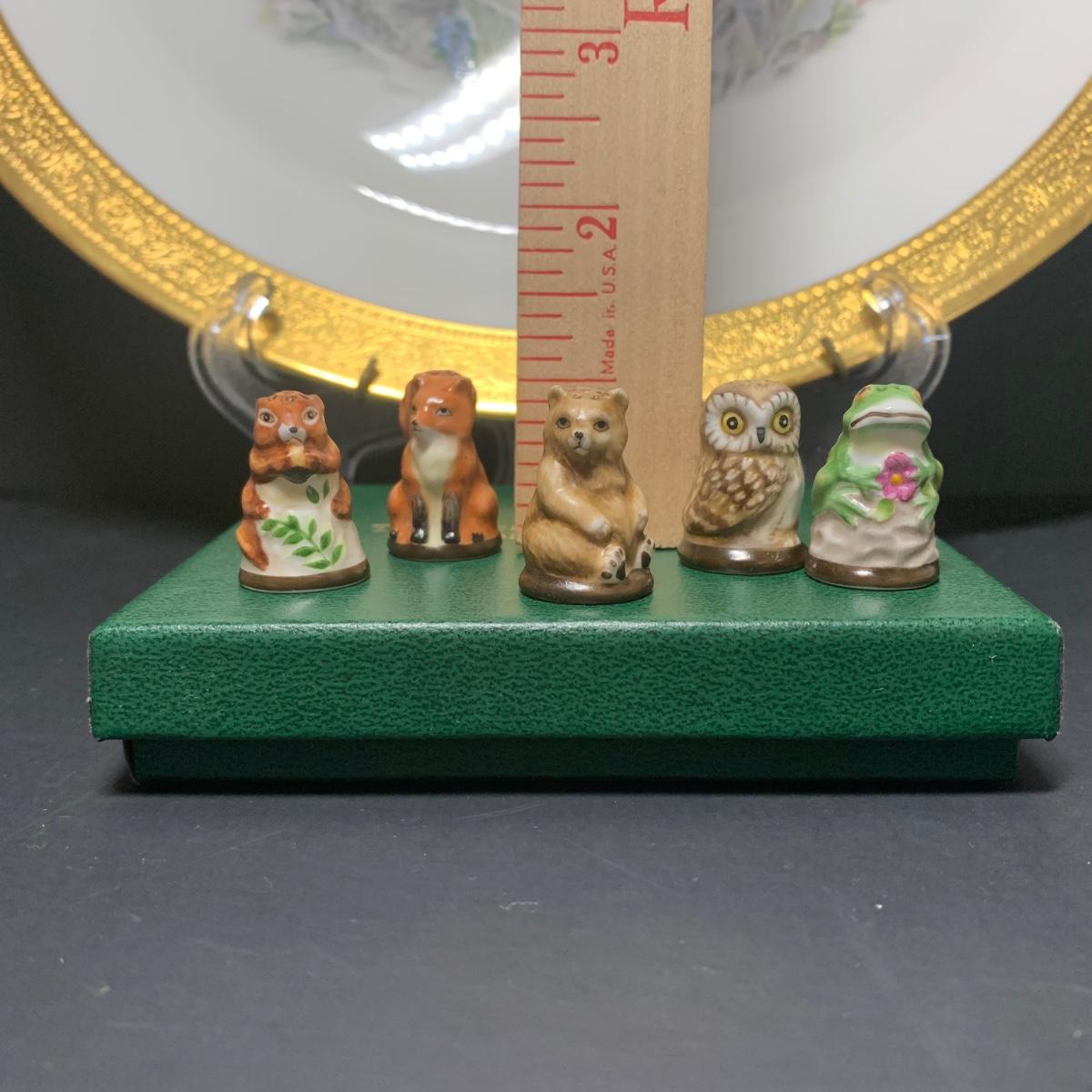 LOT 27R: Vintage Boehm 'Young America' Porcelain Plate w/Gold Trim, Friends of the Forest Thimbles & More