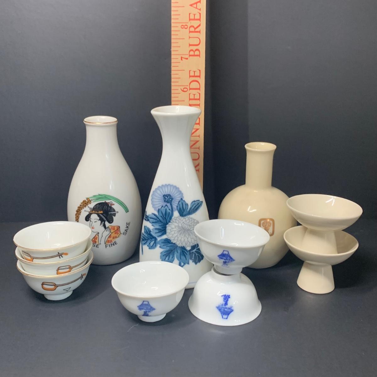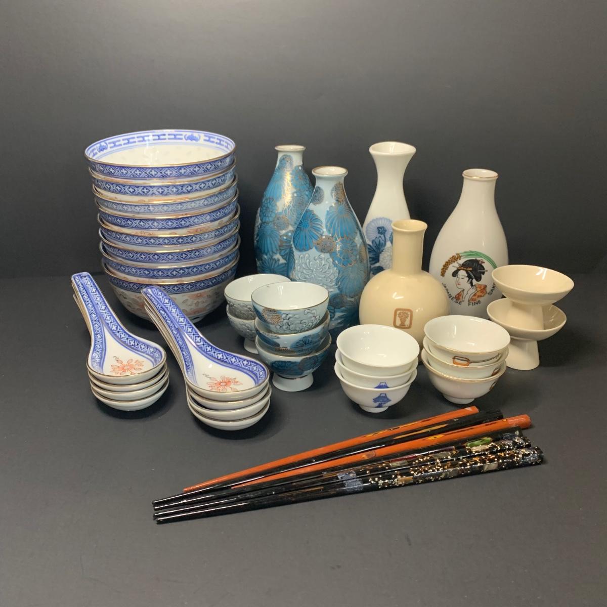 LOT 28R: Vintage Bowls &  Spoons, Sake Decanters, Chop Sticks  & More