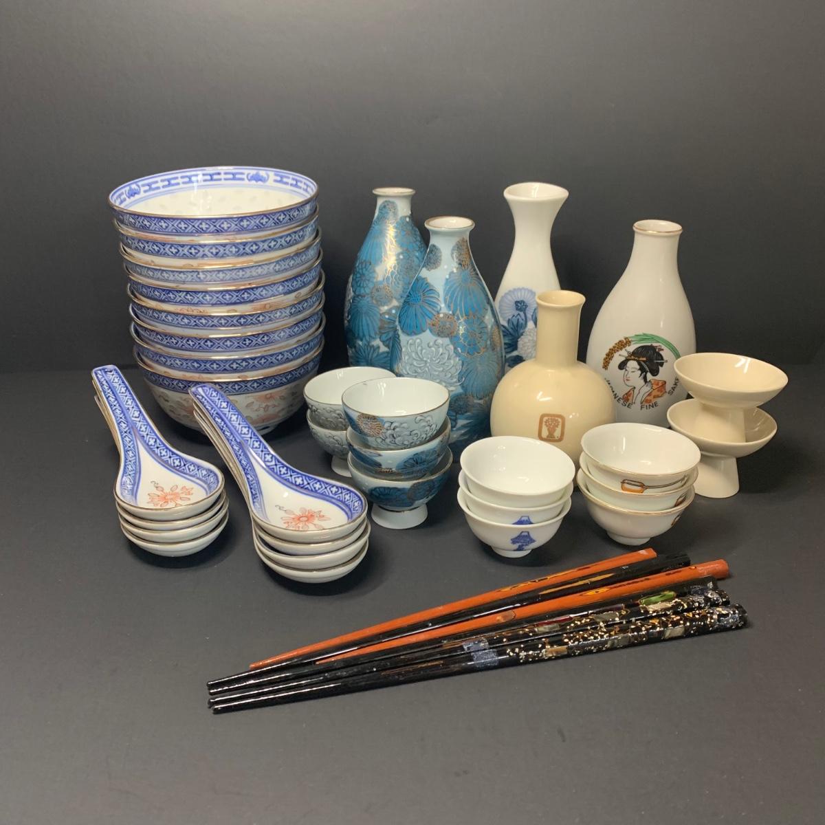 LOT 28R: Vintage Bowls & Spoons, Sake Decanters, Chop Sticks & More