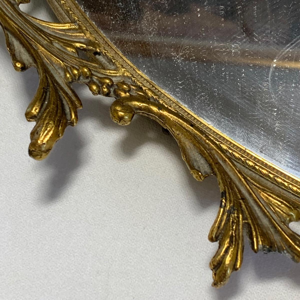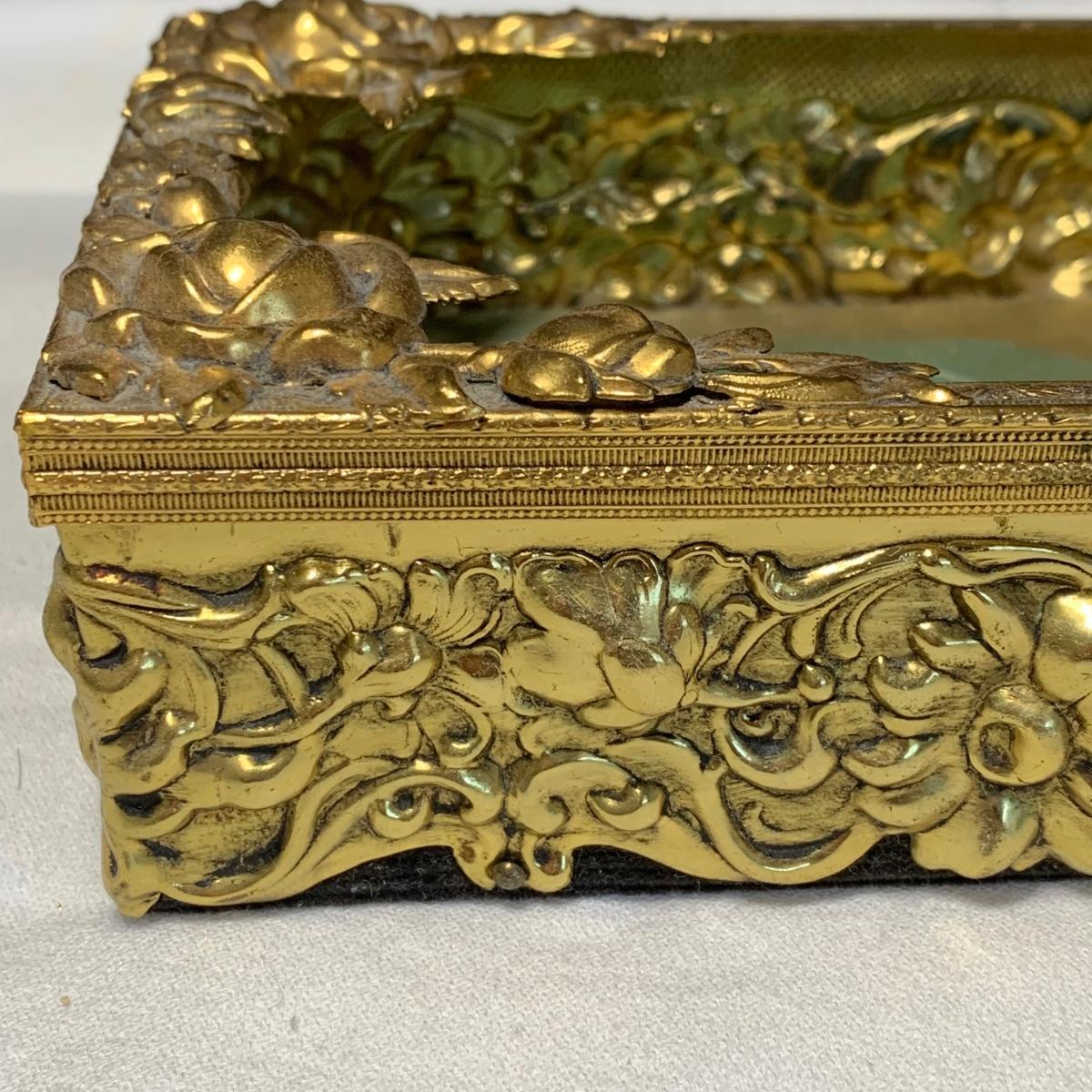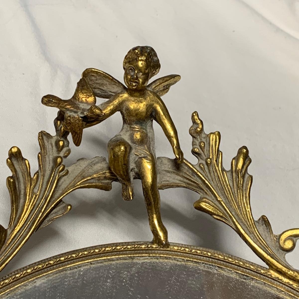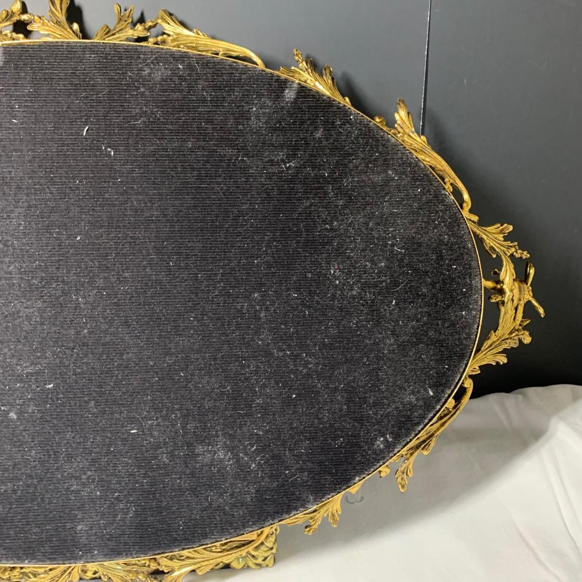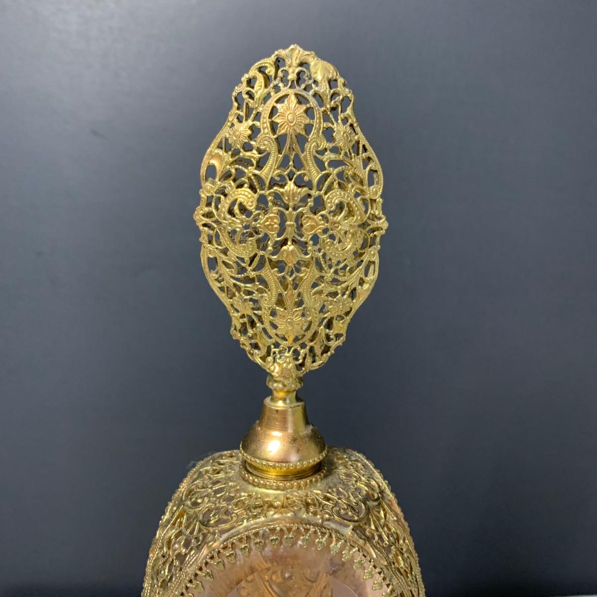 LOT 38R: Filigree Perfume Bottle & Vase, 24k Gold Plated Tissue Box, Ornate Dresser Mirror w/Angel Handles