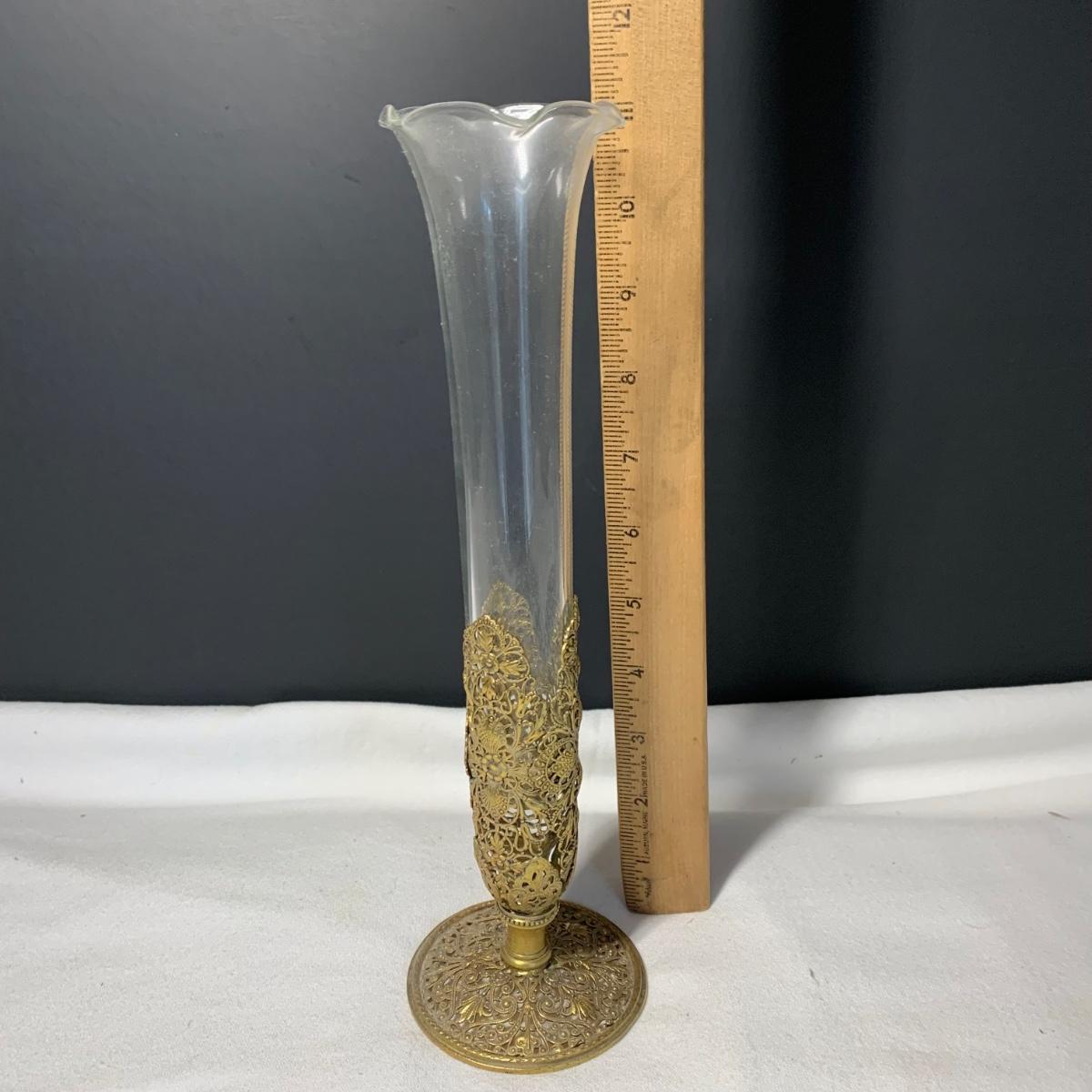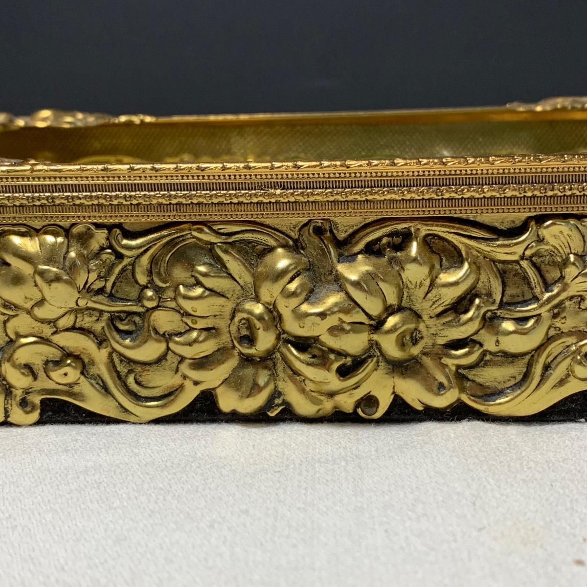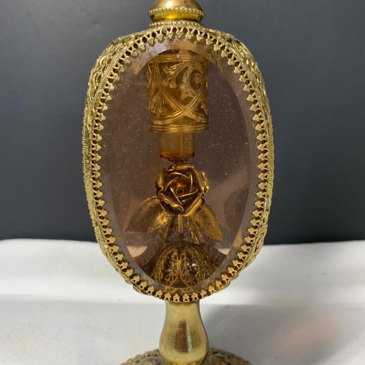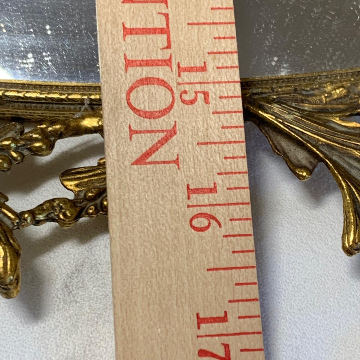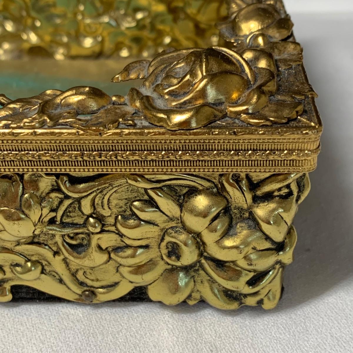 LOT 38R: Filigree Perfume Bottle & Vase, 24k Gold Plated Tissue Box, Ornate Dresser Mirror w/Angel Handles