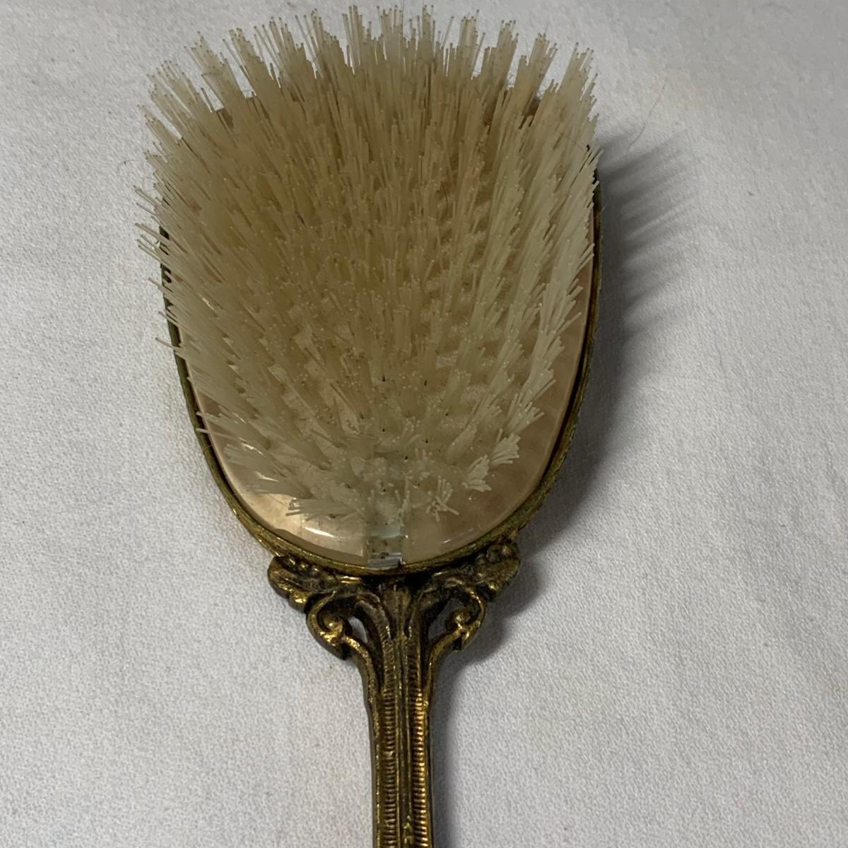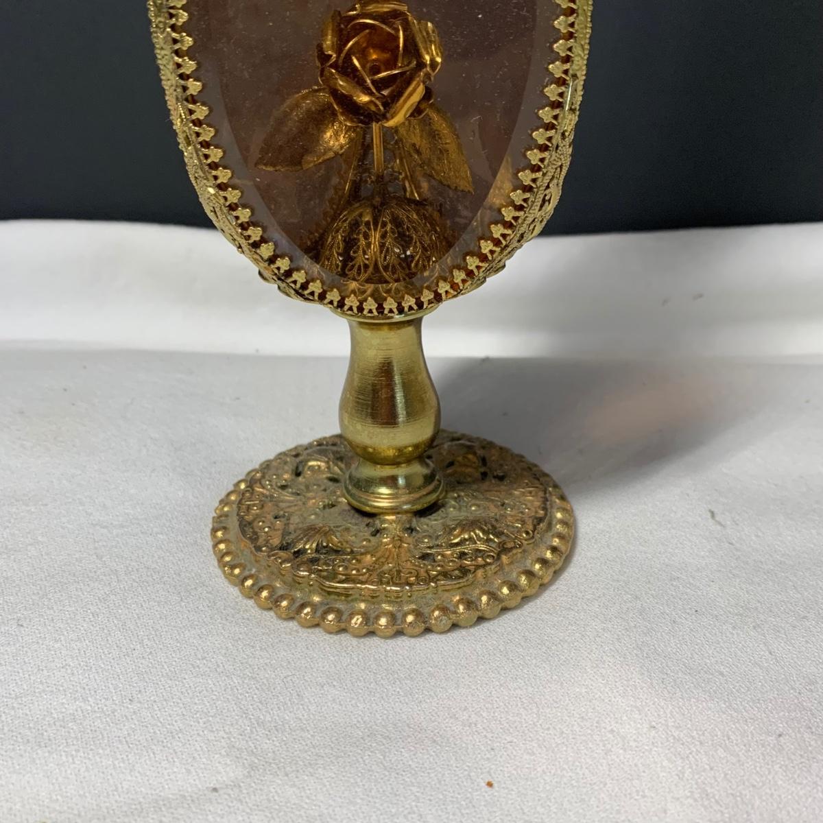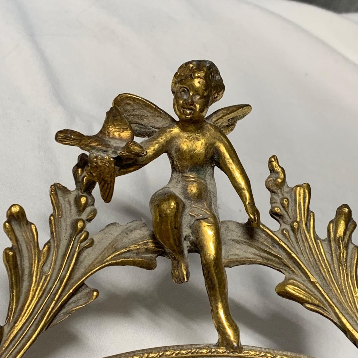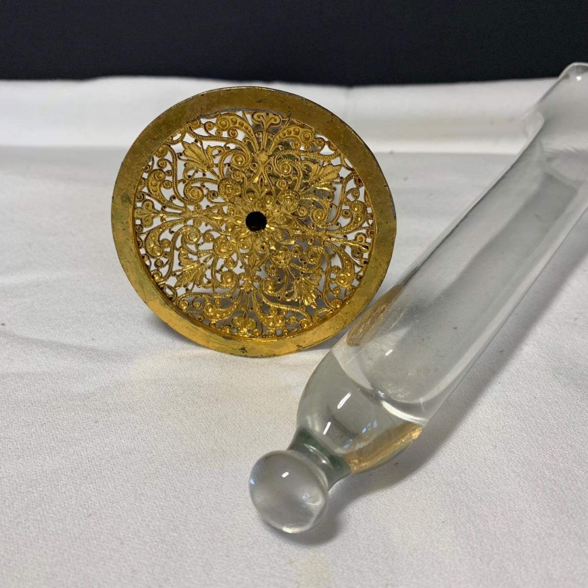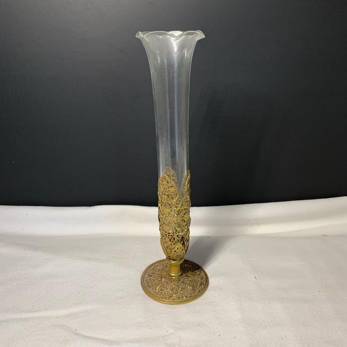 LOT 38R: Filigree Perfume Bottle & Vase, 24k Gold Plated Tissue Box, Ornate Dresser Mirror w/Angel Handles