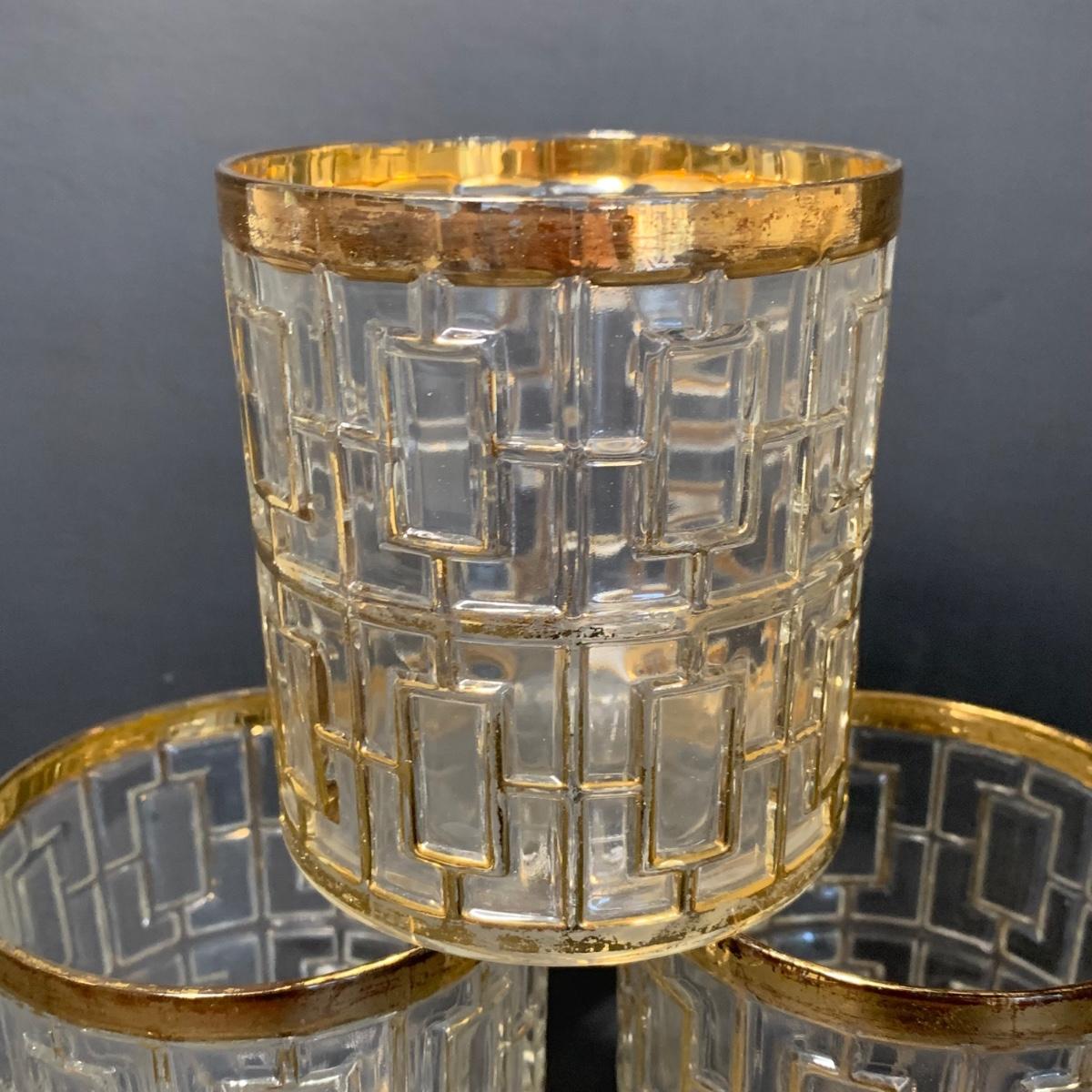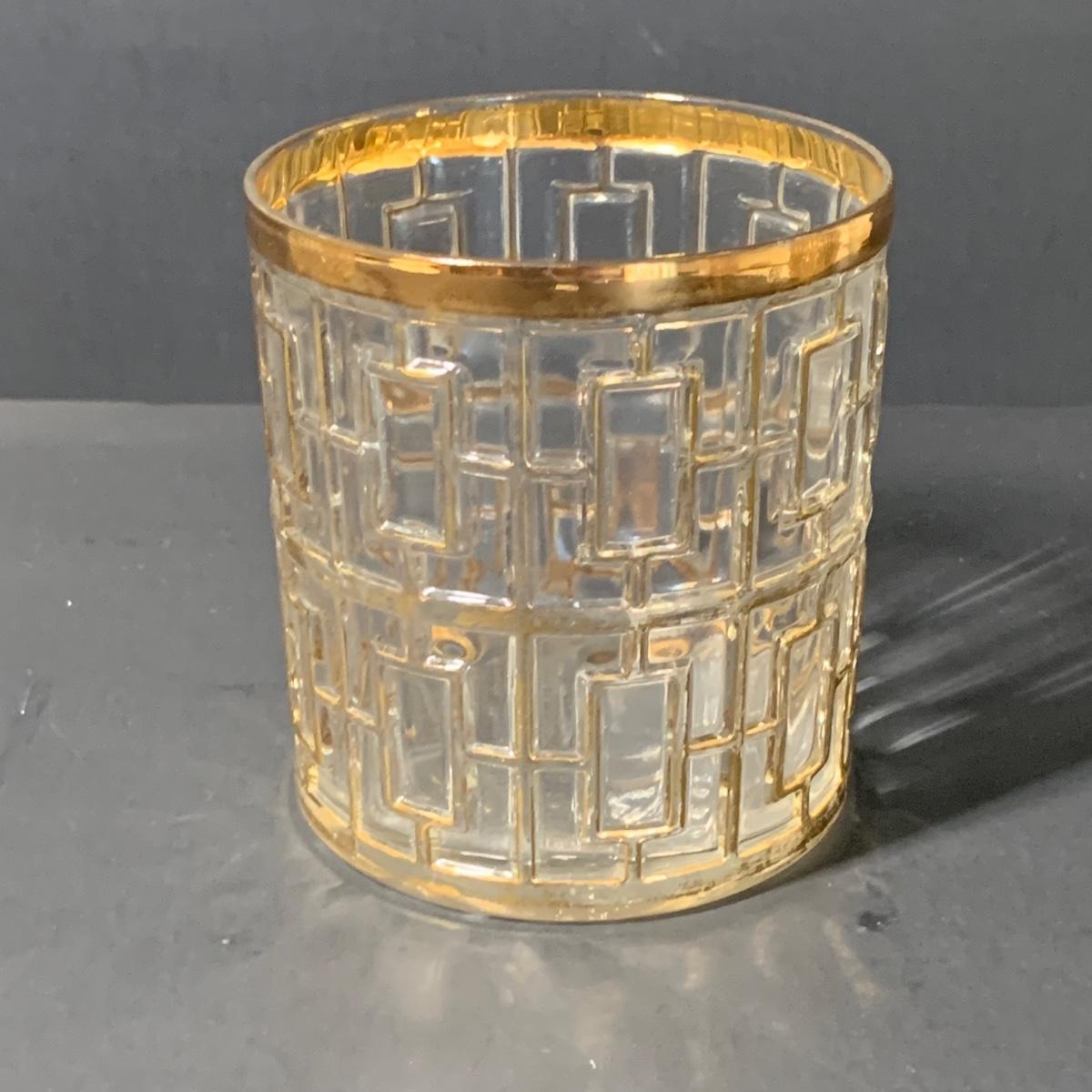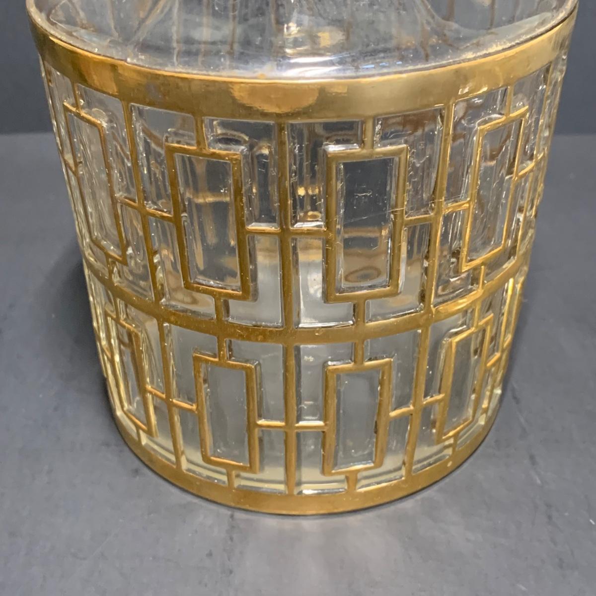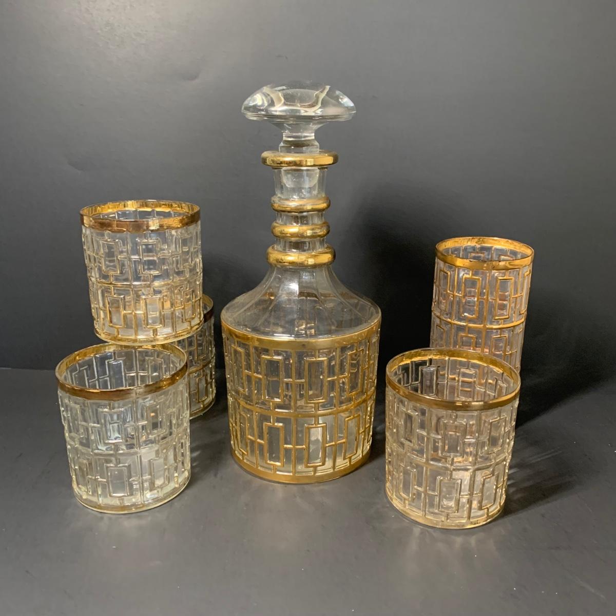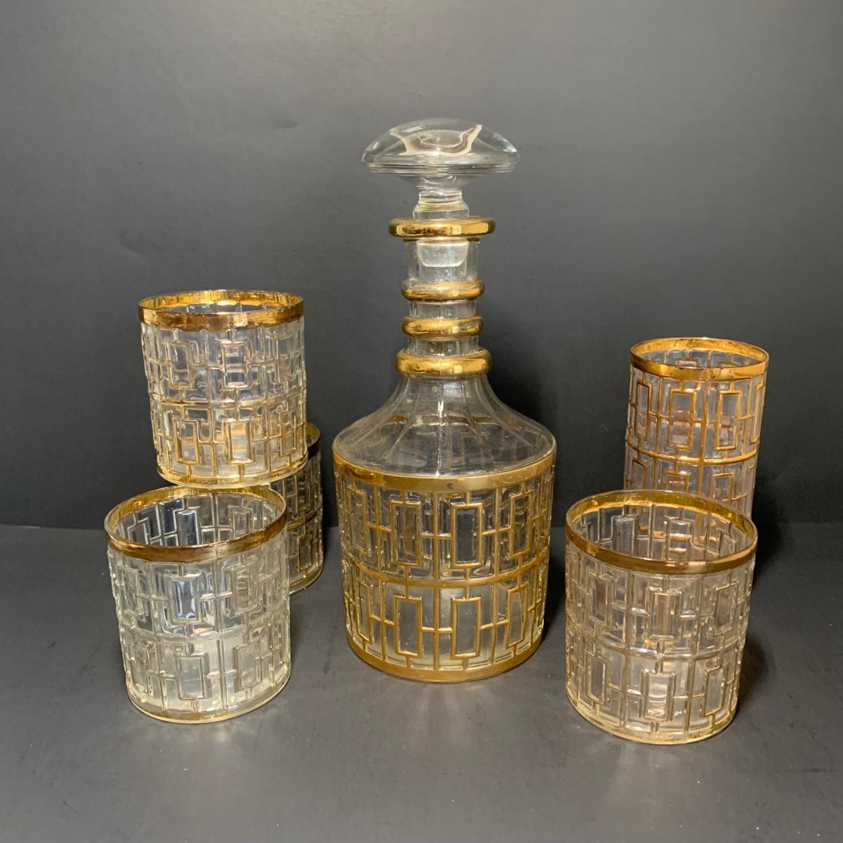 LOT 41R: Vintage Imperial Glass 22k Gold Shoji Trellis Decanter & Tumblers