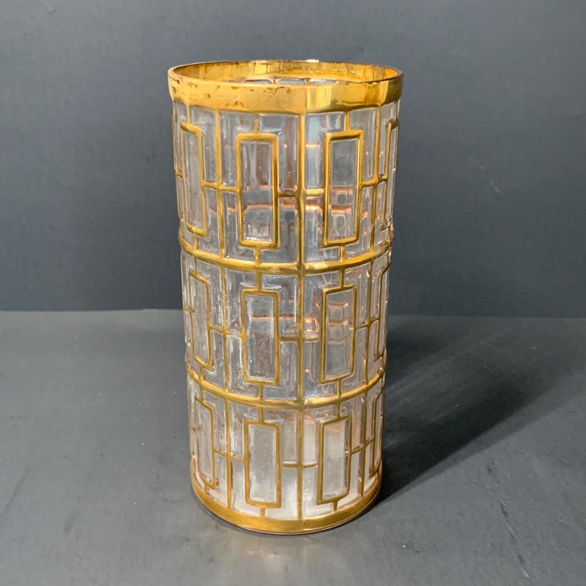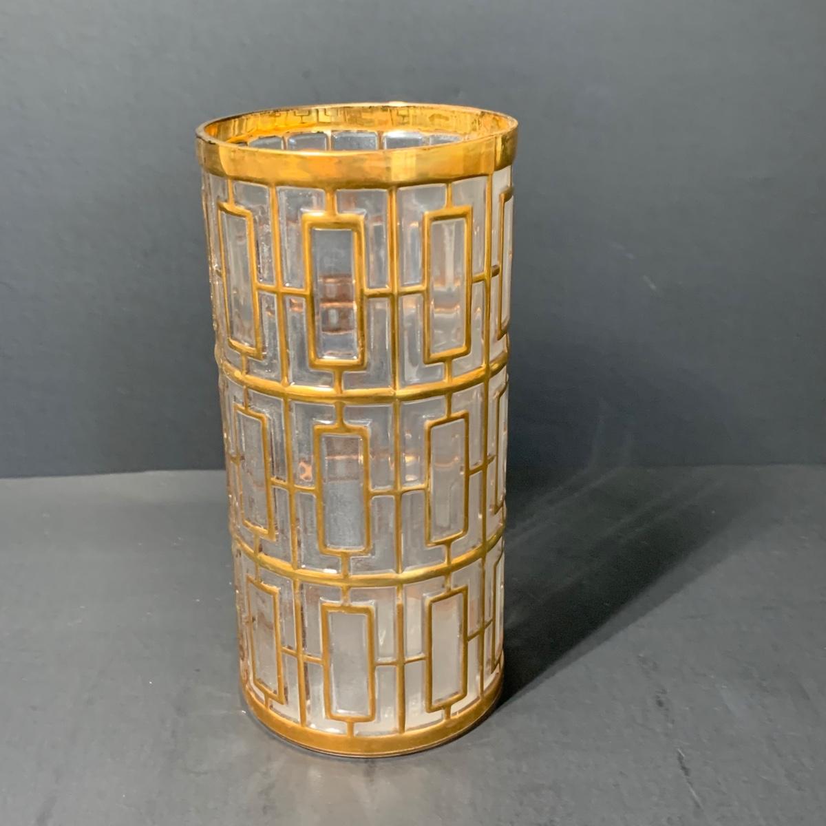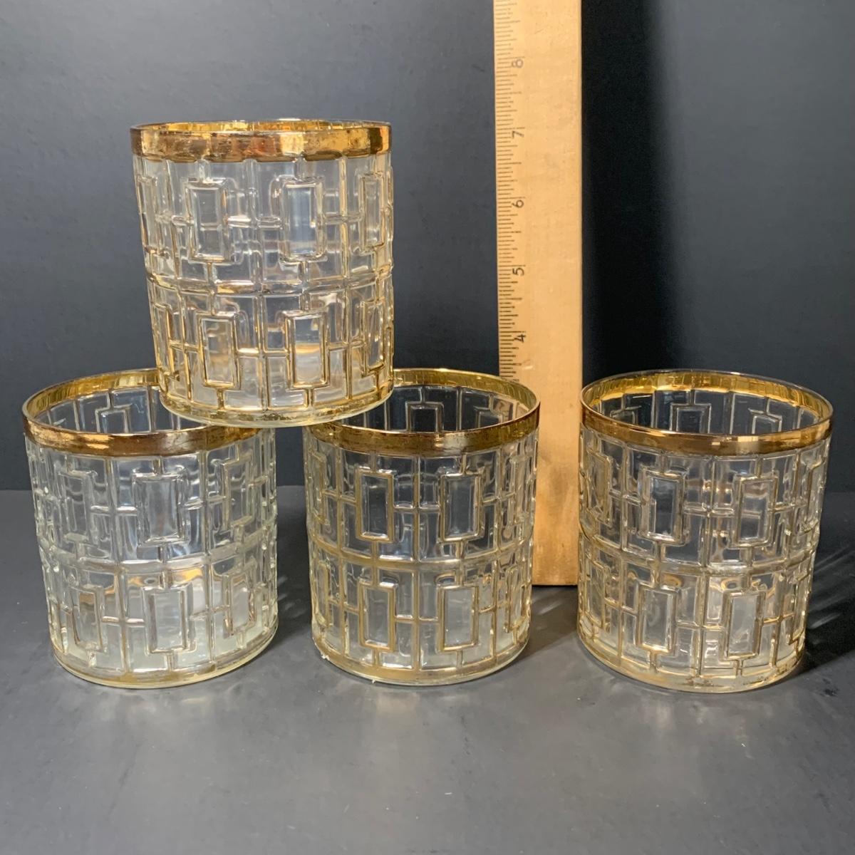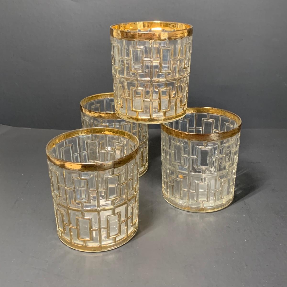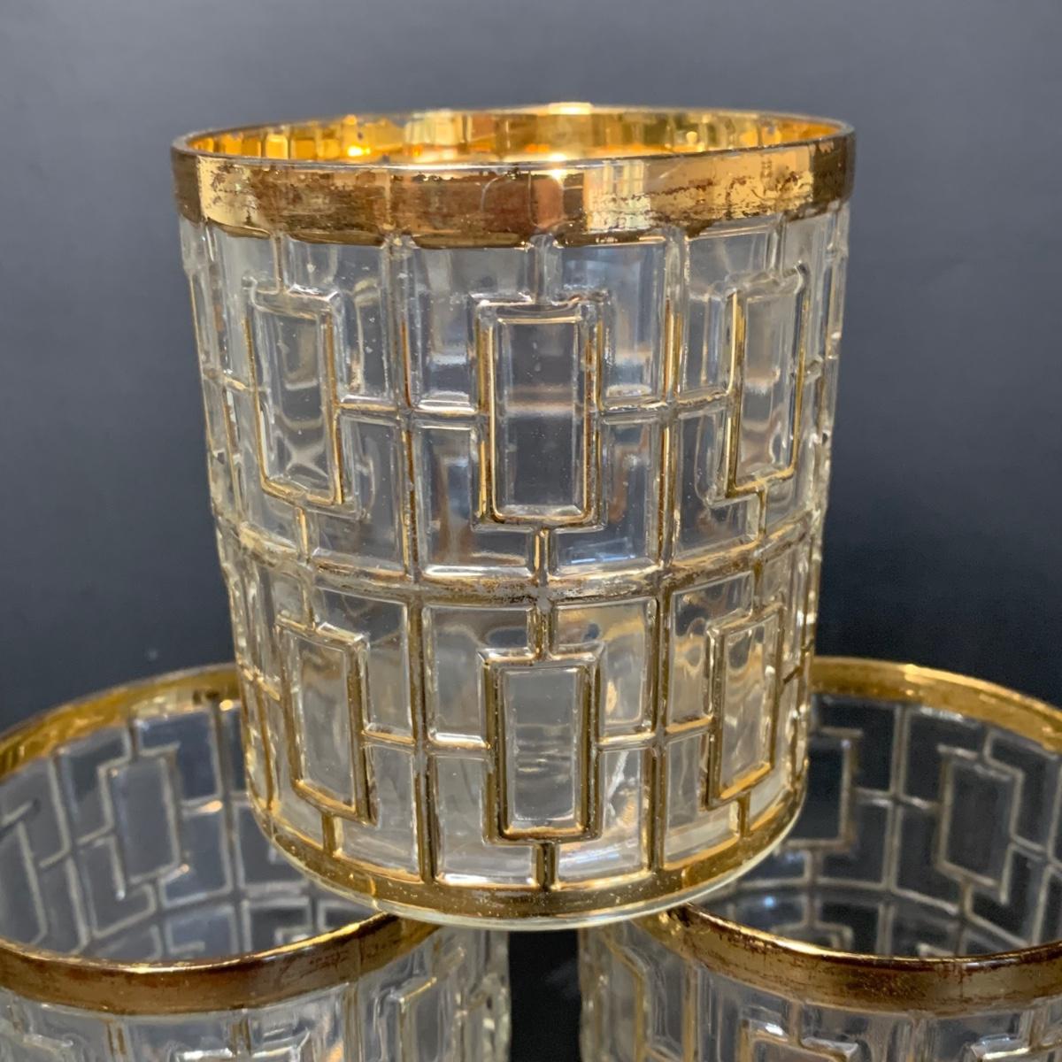 LOT 41R: Vintage Imperial Glass 22k Gold Shoji Trellis Decanter & Tumblers