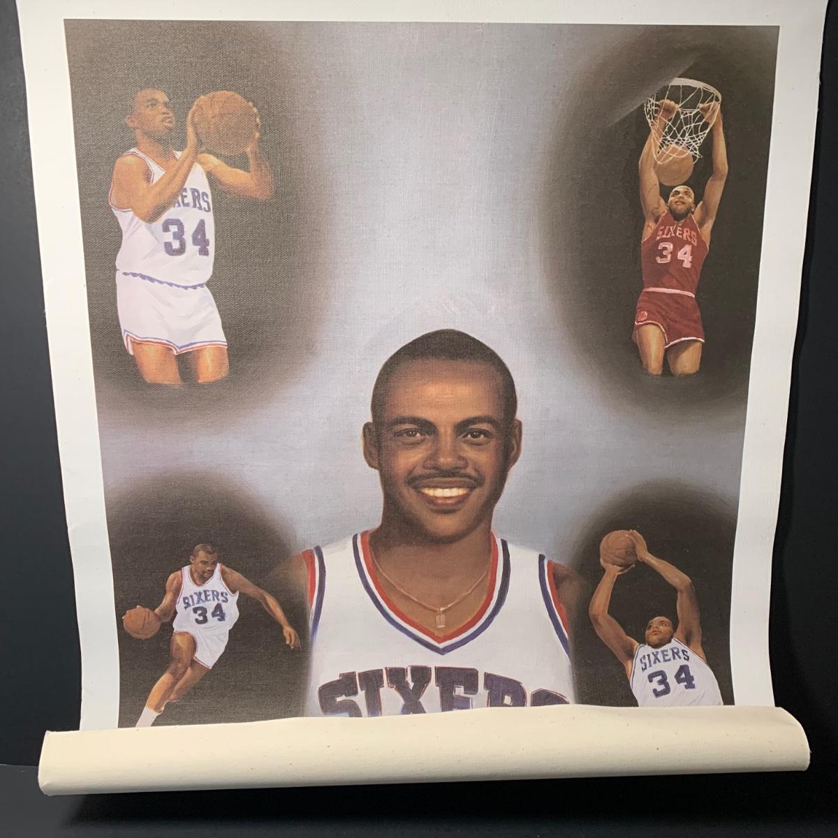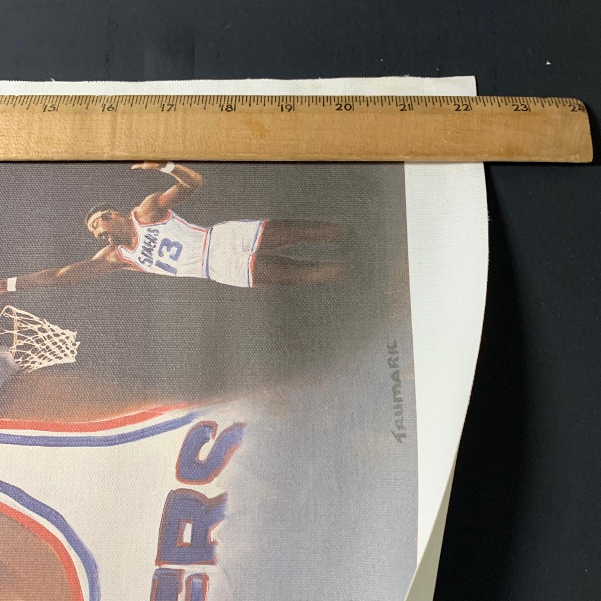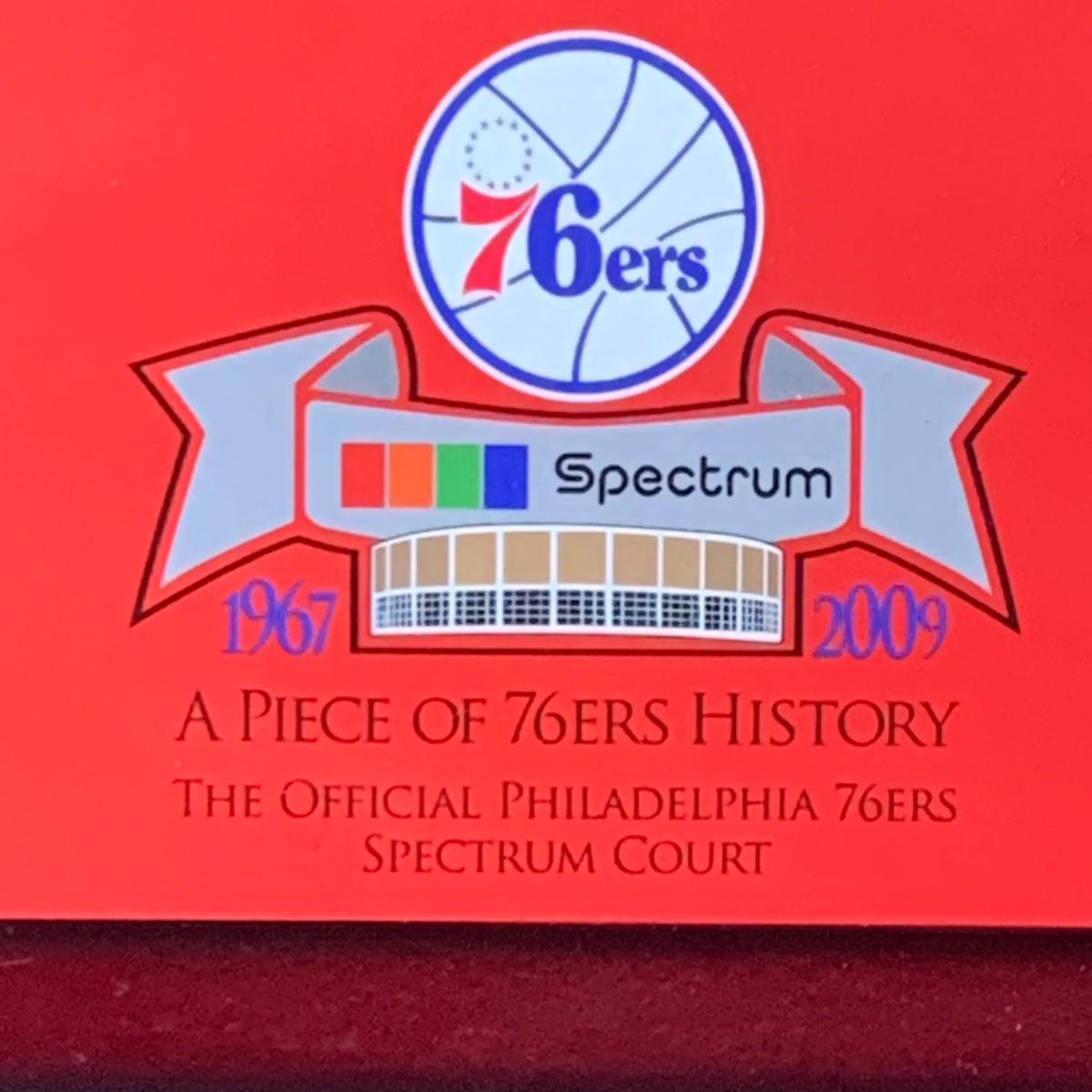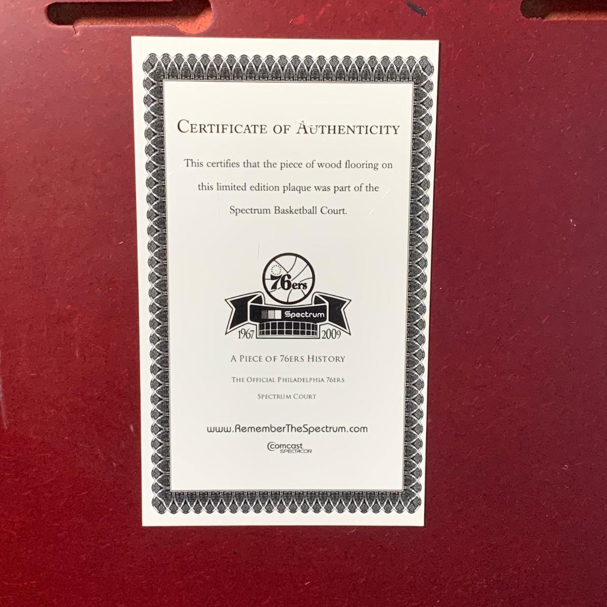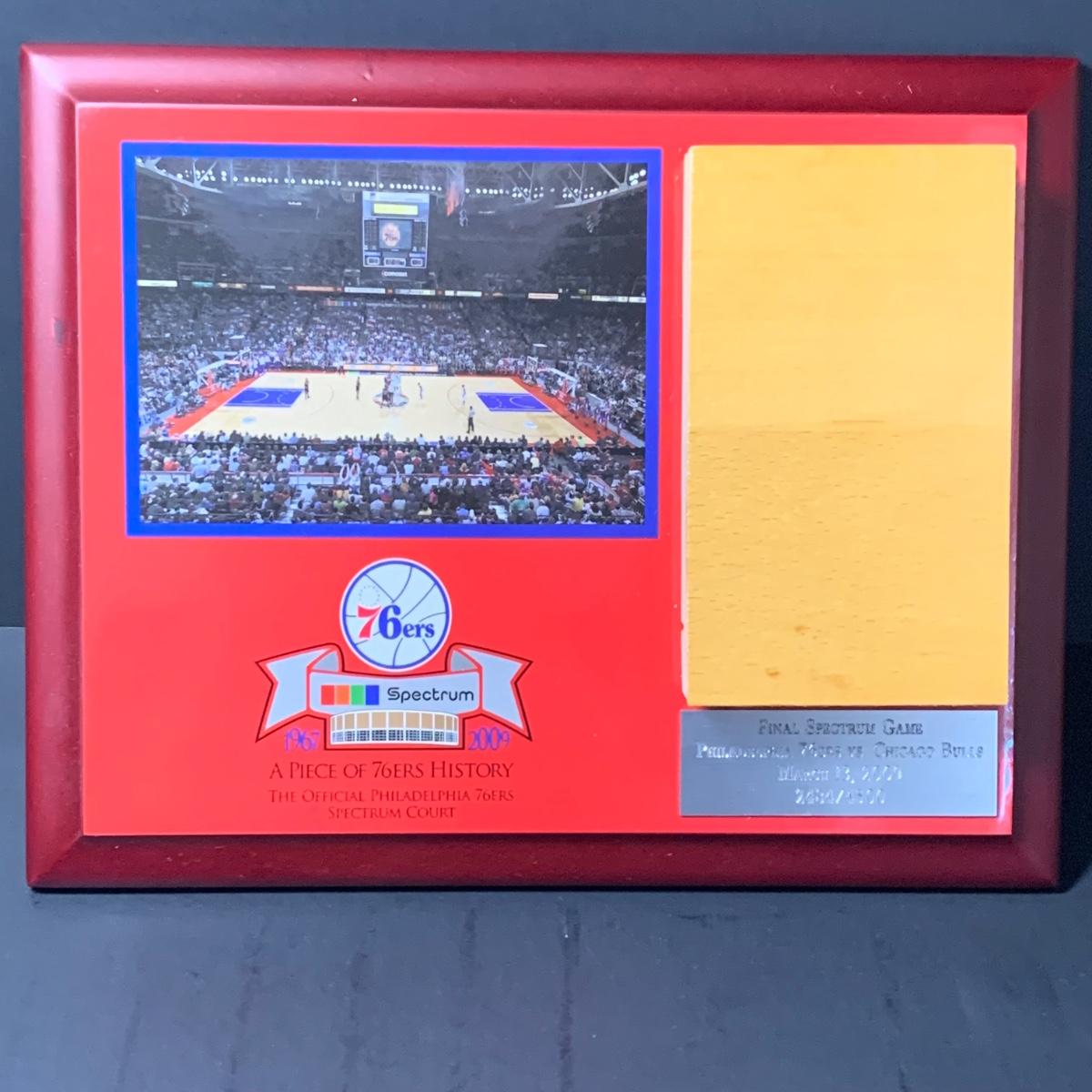LOT 42R: Philadelphia 76ers Collection: Original Oil Portraits by Diamond Portraits, Final Spectrum Floor Board w/COA, Mug & Rally Towels
