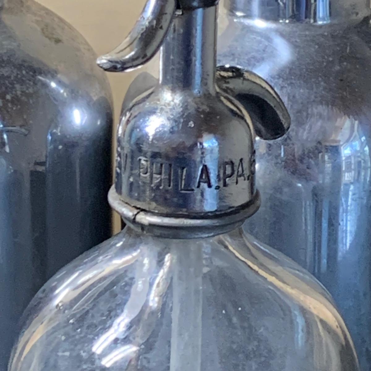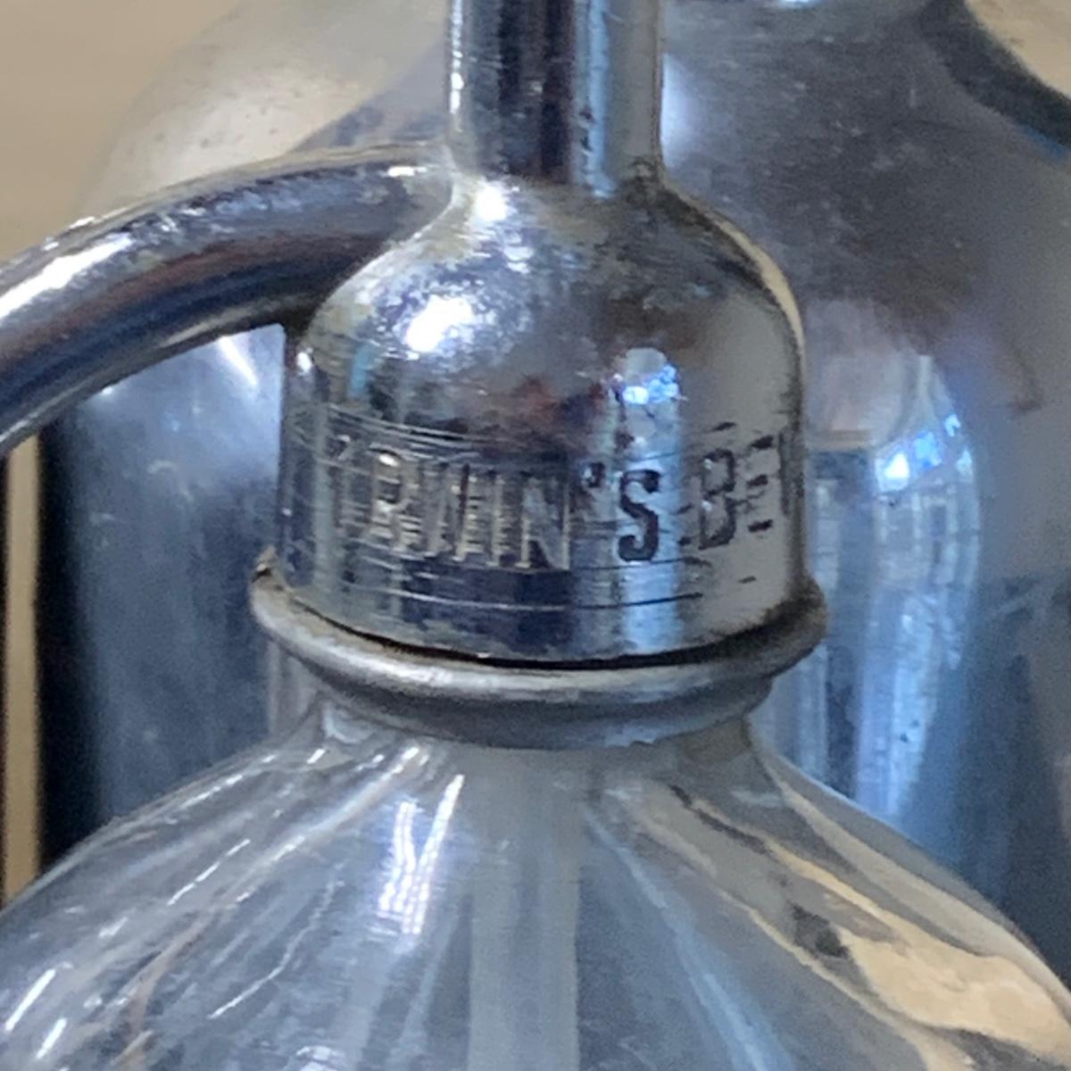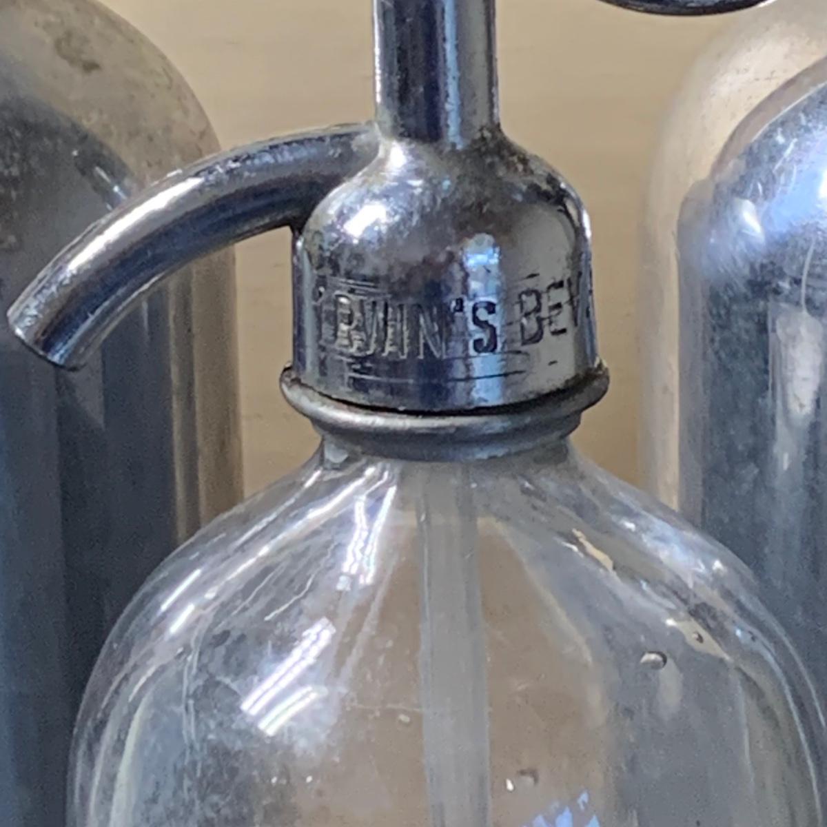 LOT 43R: Vintage Soda King Chrome Metal & Glass Seltzer Bottles, Etched Glass Seltzer Bottle, Silver Plated Bottle Stopper & Dansk Serving Tray
