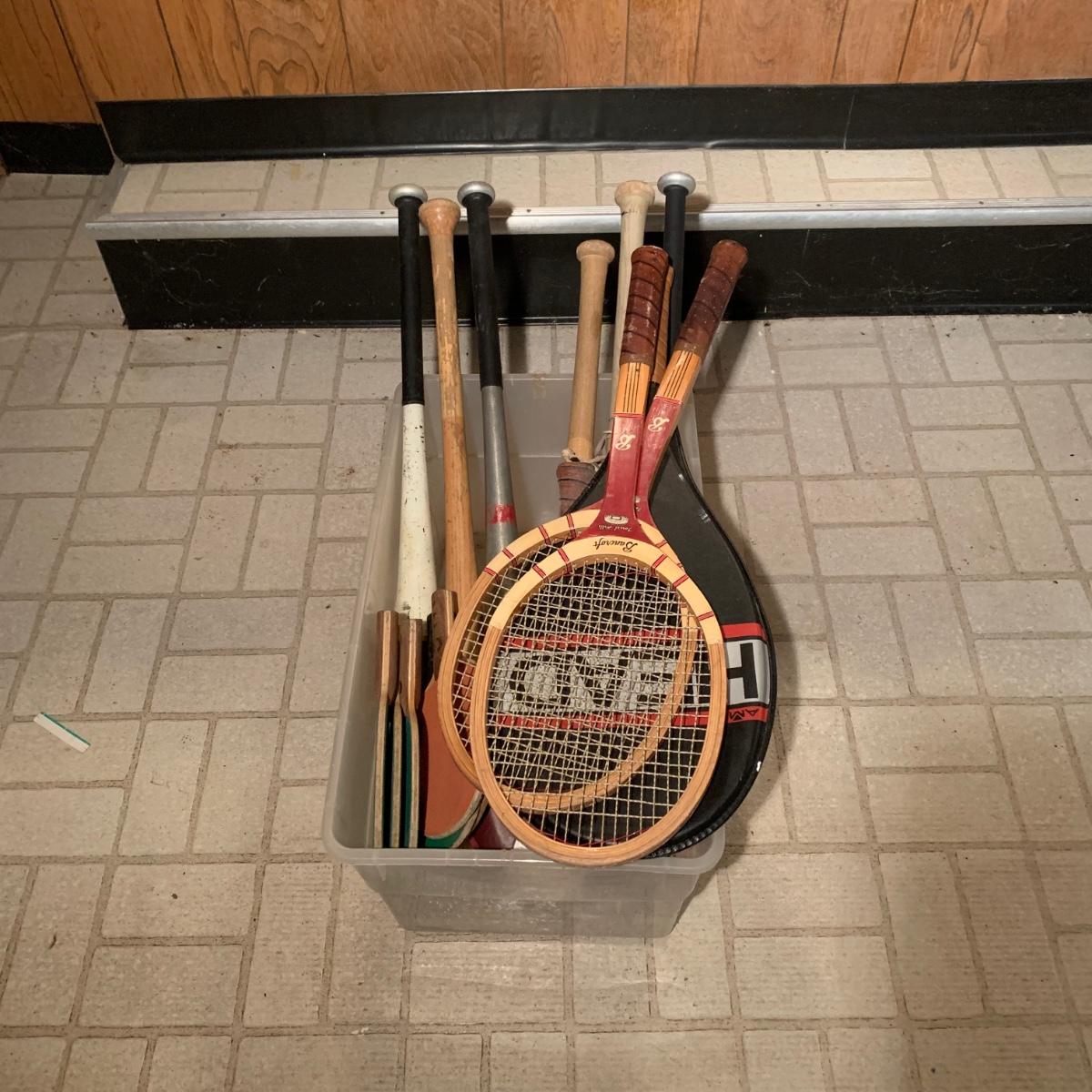 LOT 52R: Sports Equipment: Louisville Hillerich Hank Aaron Bat, Easton Baseball Bats, Wilson Rackets & More