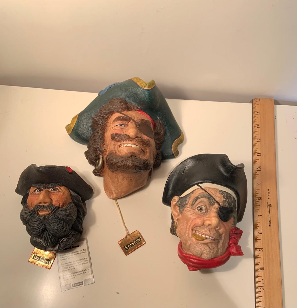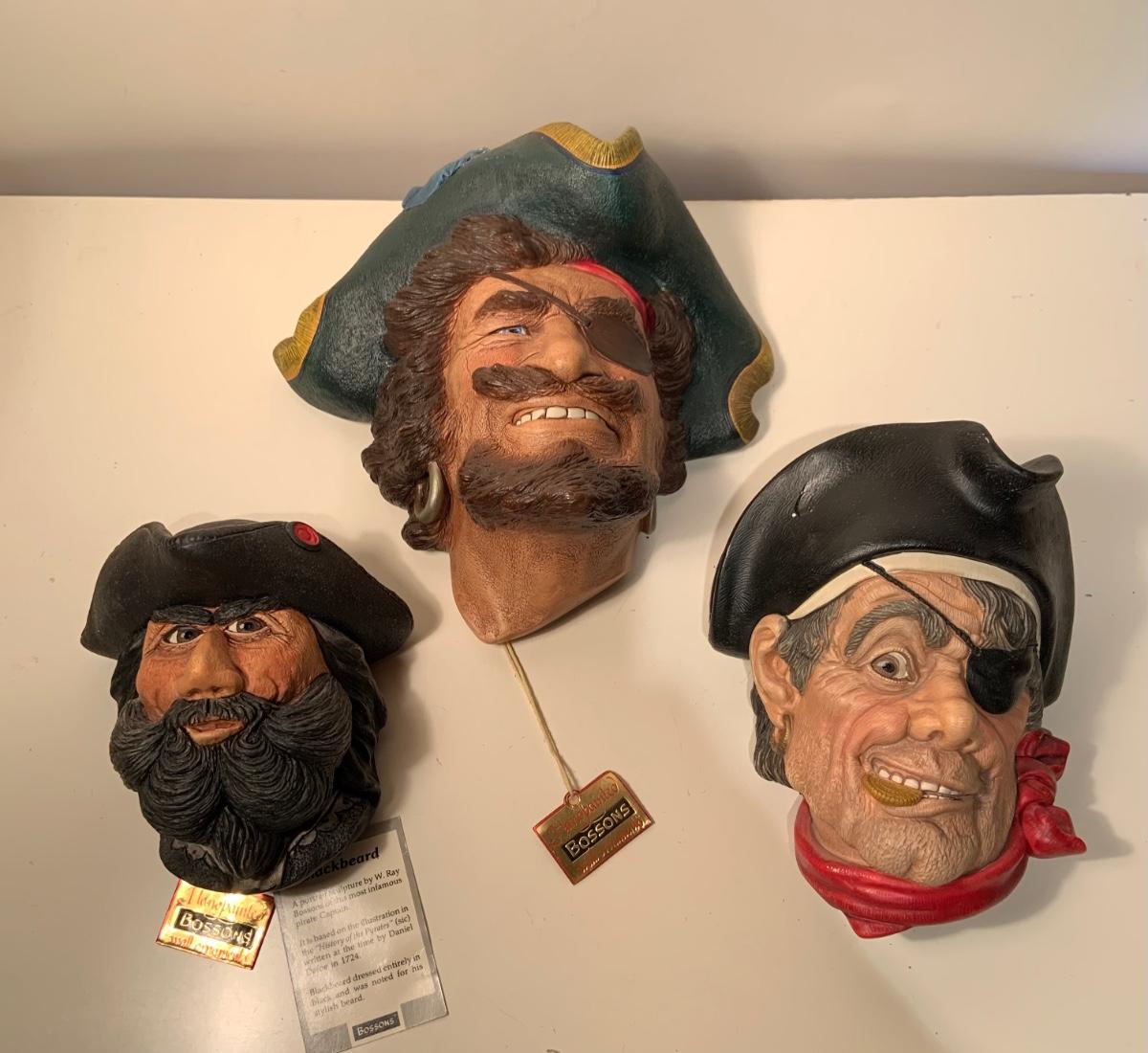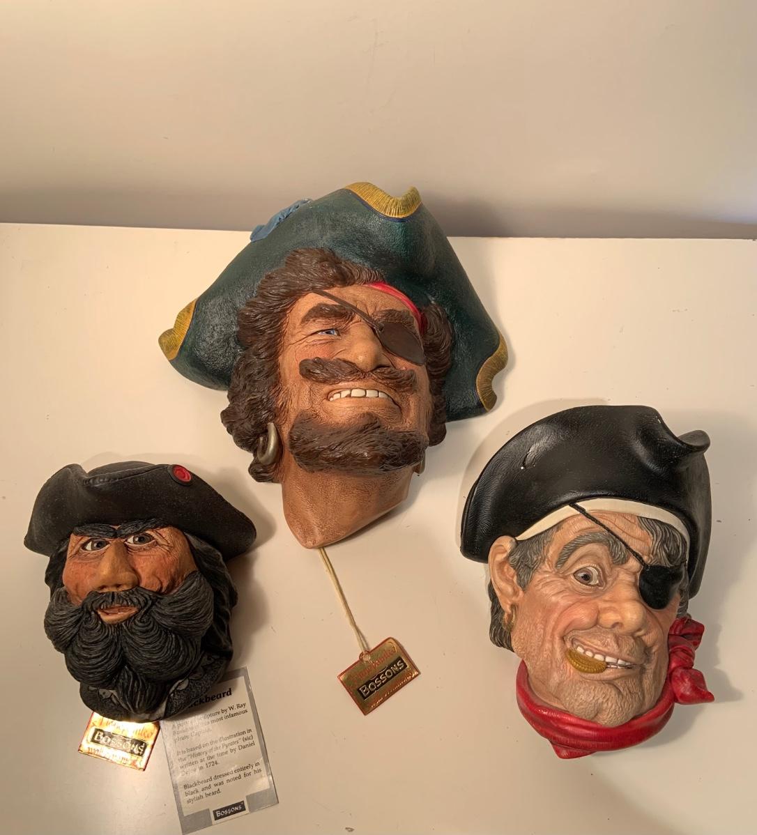 LOT::56G: Bossons Chalkware Heads - Sir Henry Morgan with Tag; Blackbeard with Tag; and a Pirate Chalkware Head Made in England