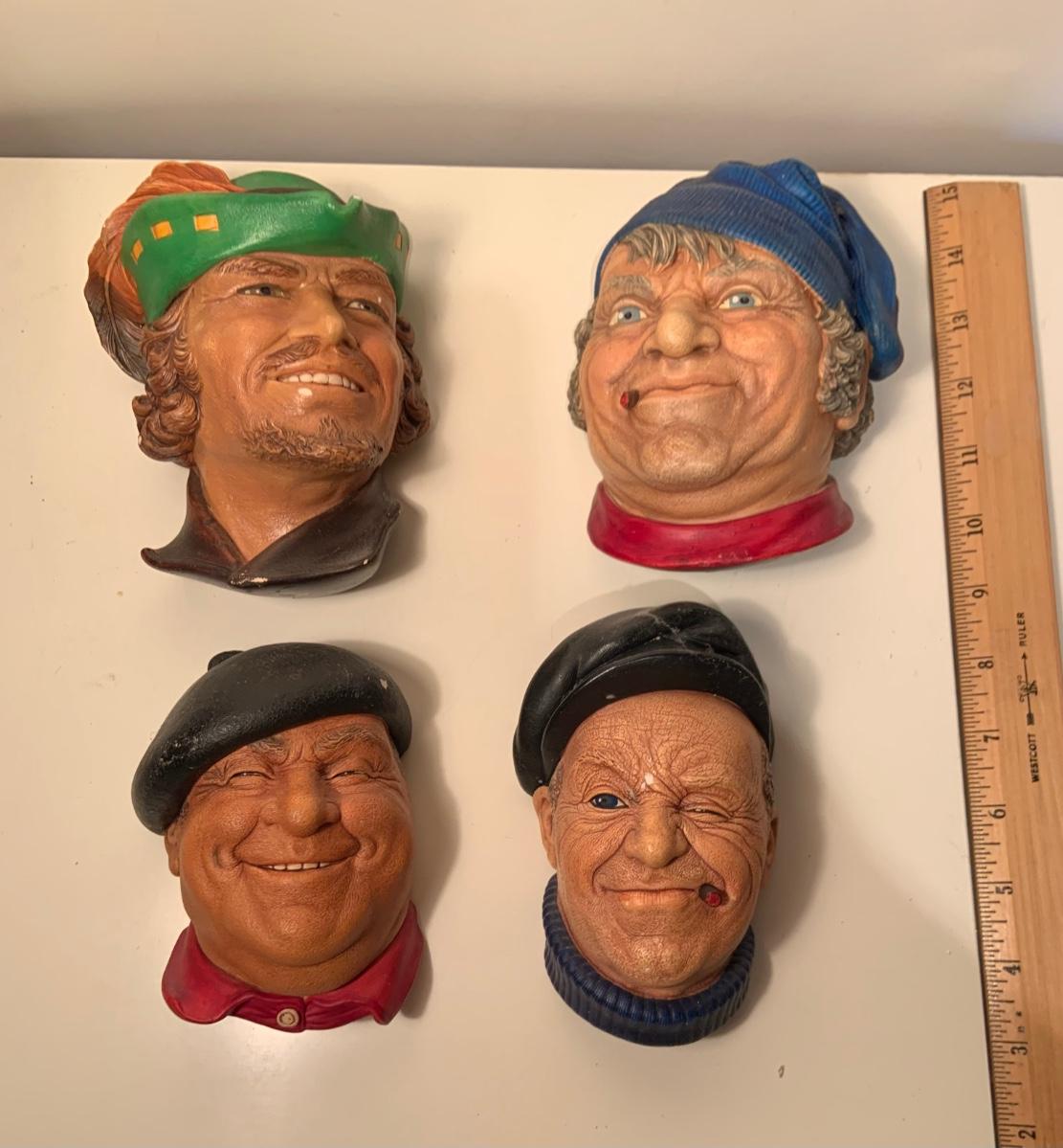 LOT:57G Bossons Chalkware Heads Puerre and Boatman and 2 Made in England Chalkware Heads