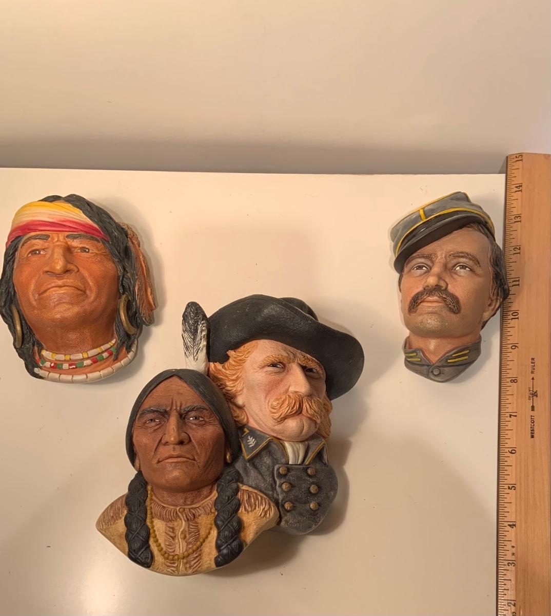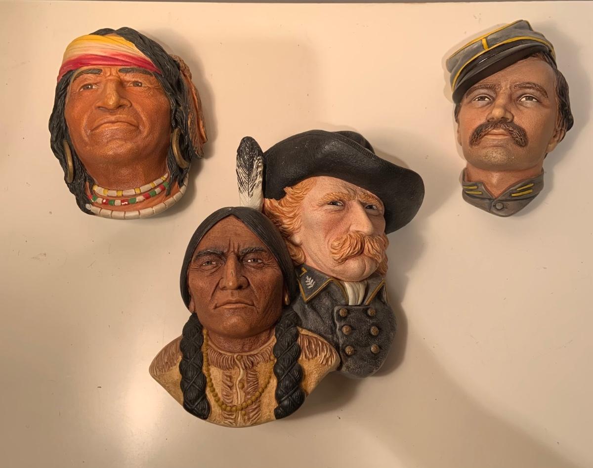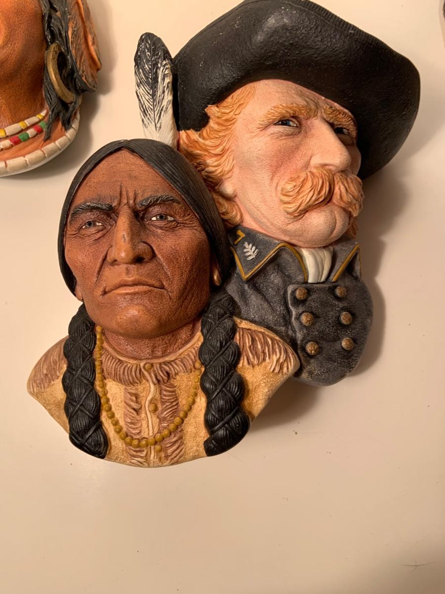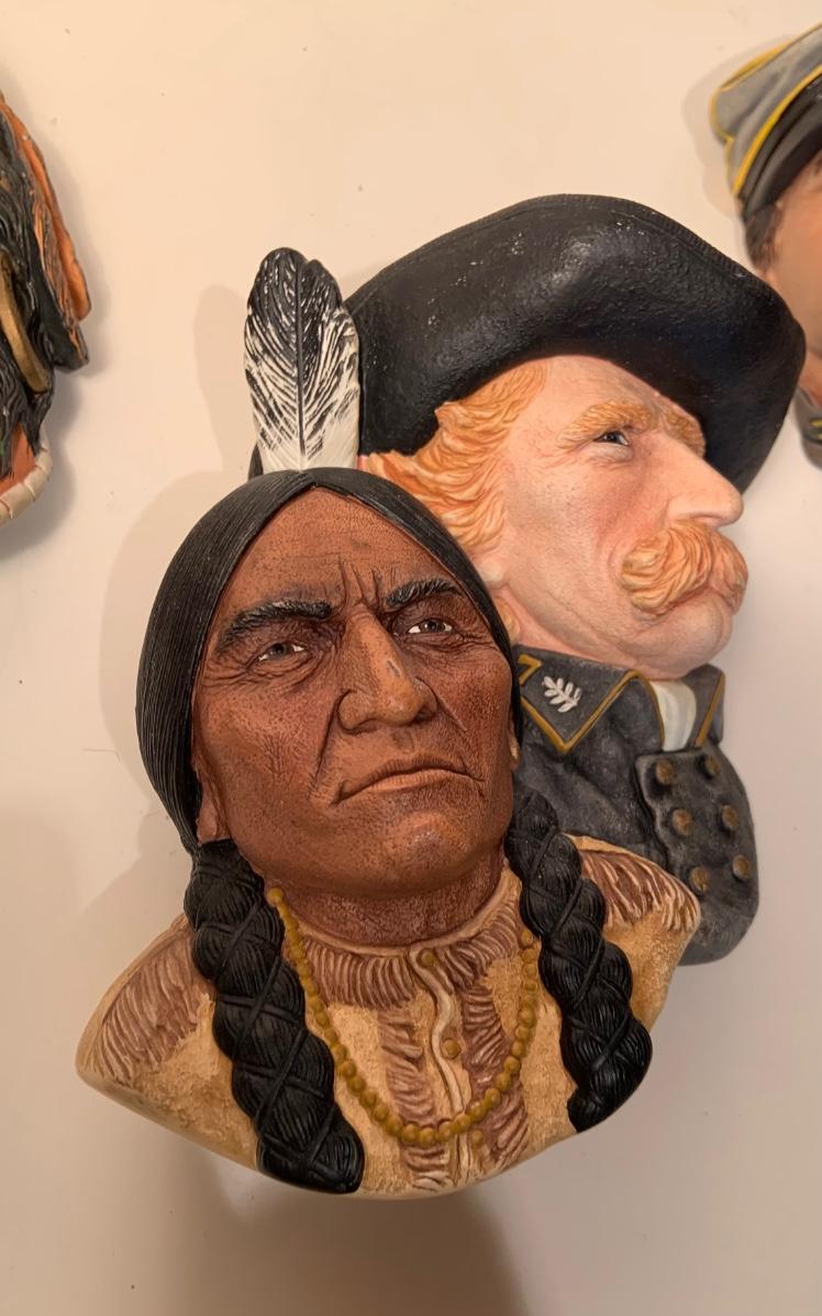 LOT:59G: Bossons Chalkware Head - Sitting Bull & Col Cister; Civil War Infantry Officer; and a Navajo Chalkware Head