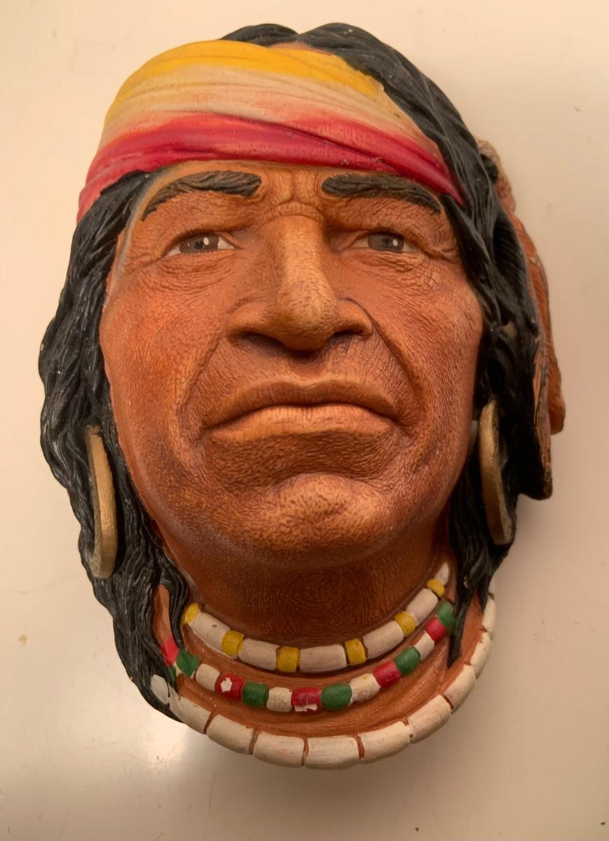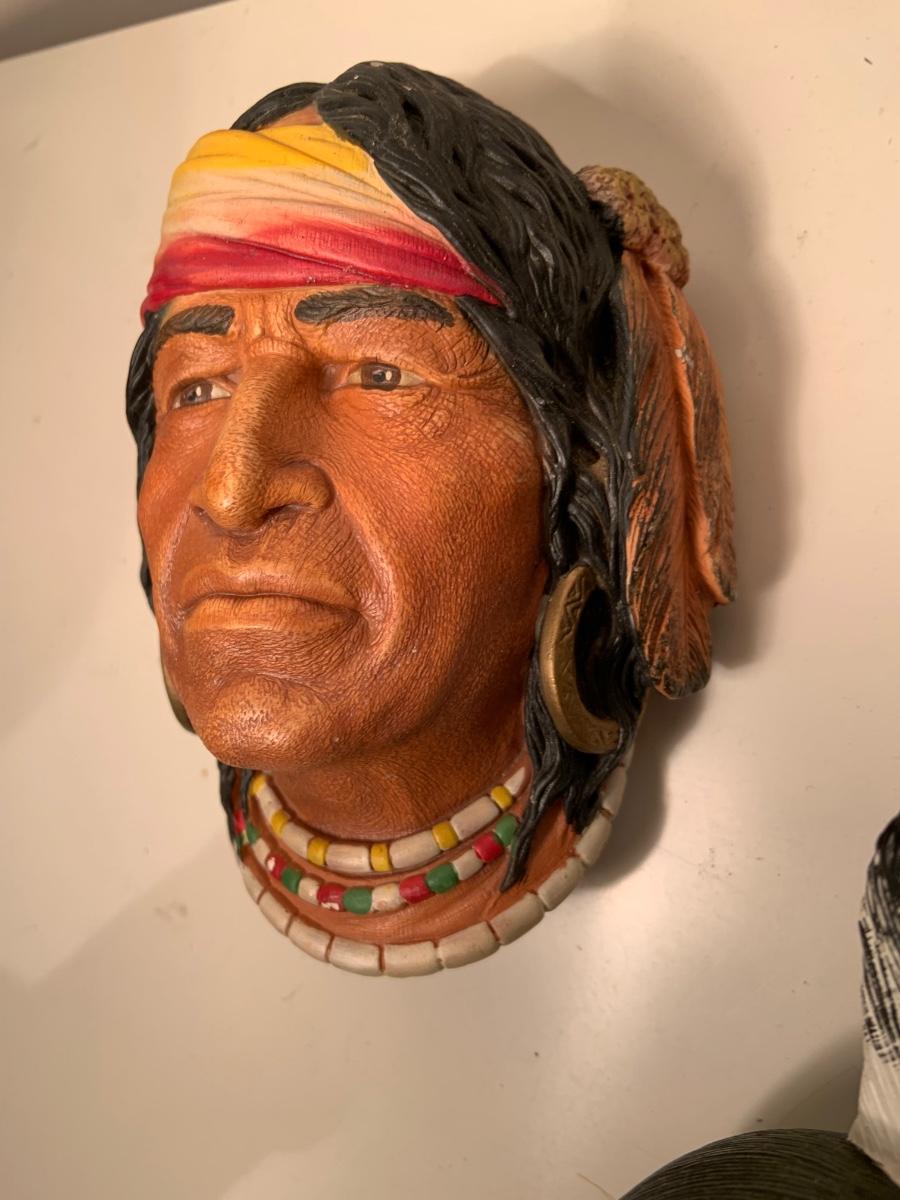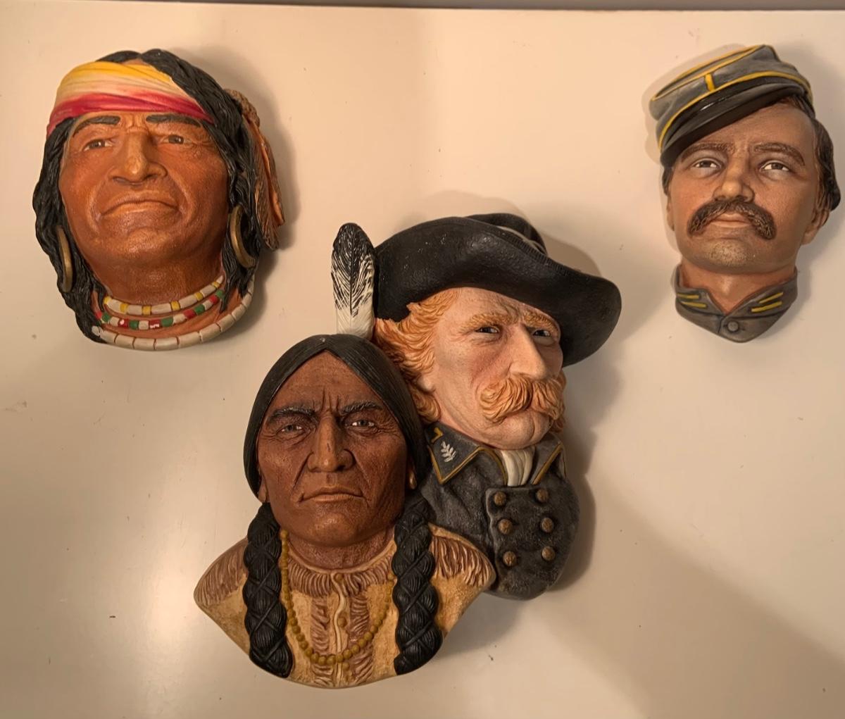 LOT:59G: Bossons Chalkware Head - Sitting Bull & Col Cister; Civil War Infantry Officer; and a Navajo Chalkware Head