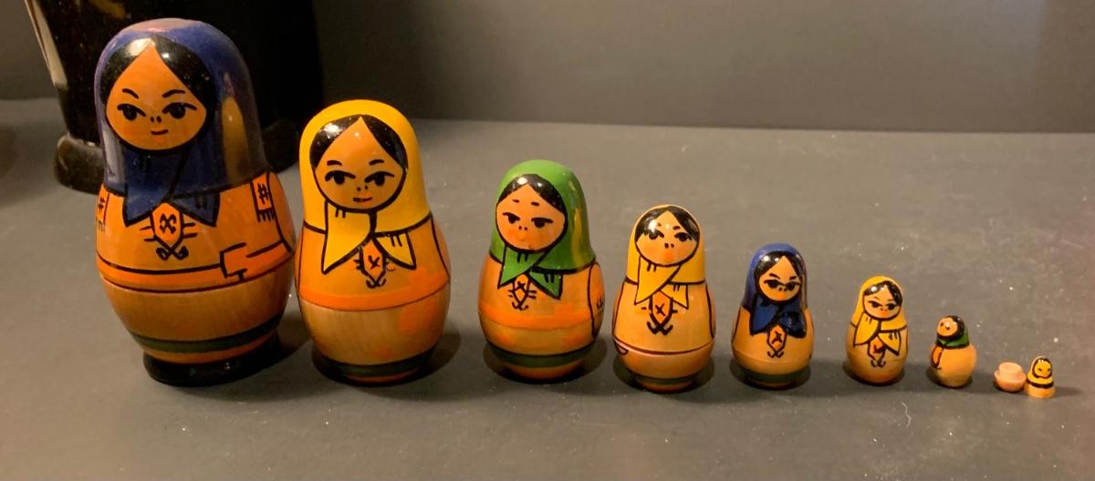 LOT:73G: A Collection of Vintage Russian Nesting Dolls - The Big One Holds a Surprise.