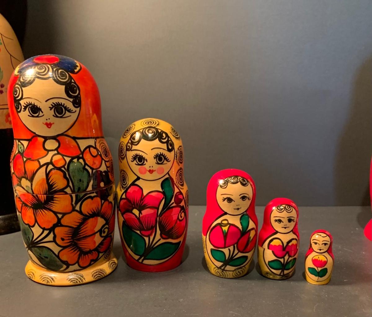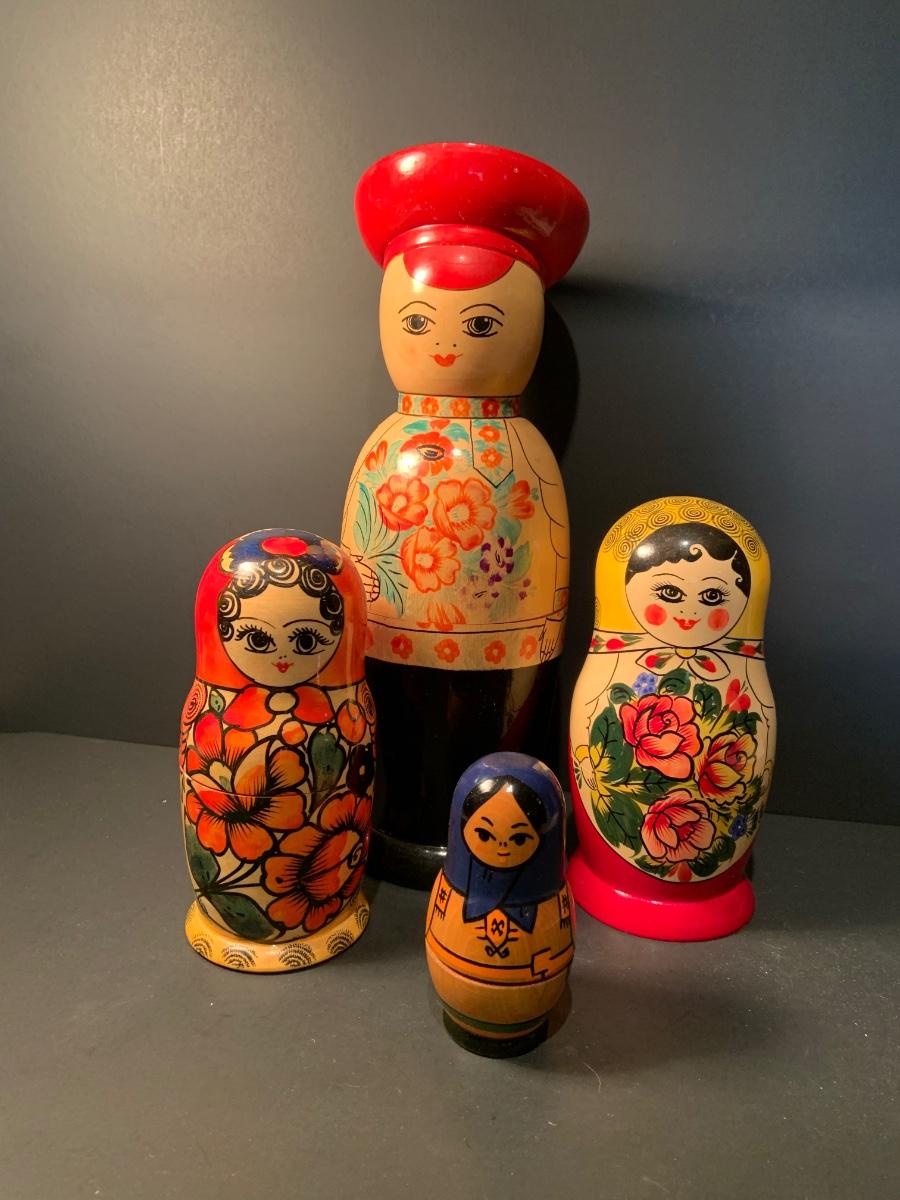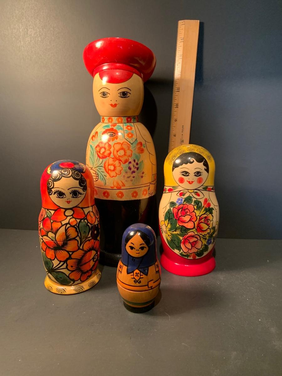 LOT:73G: A Collection of Vintage Russian Nesting Dolls -  The Big One Holds a Surprise.