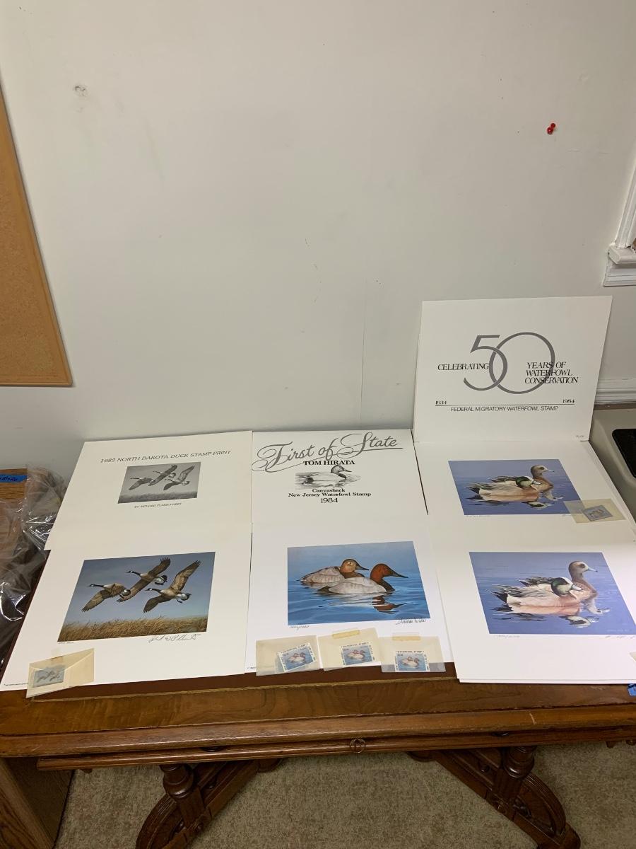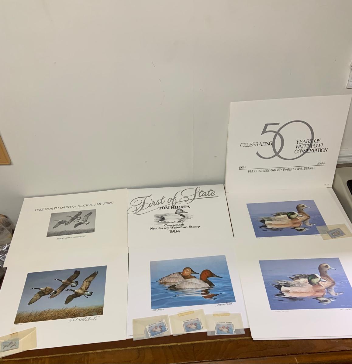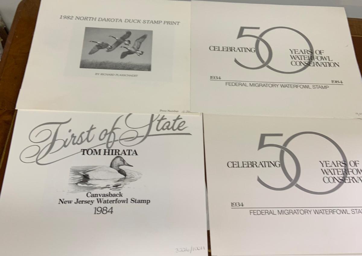 LOT:337G: Four sets of Signed and Number Stamp Prints with Uncirculated Stamps.