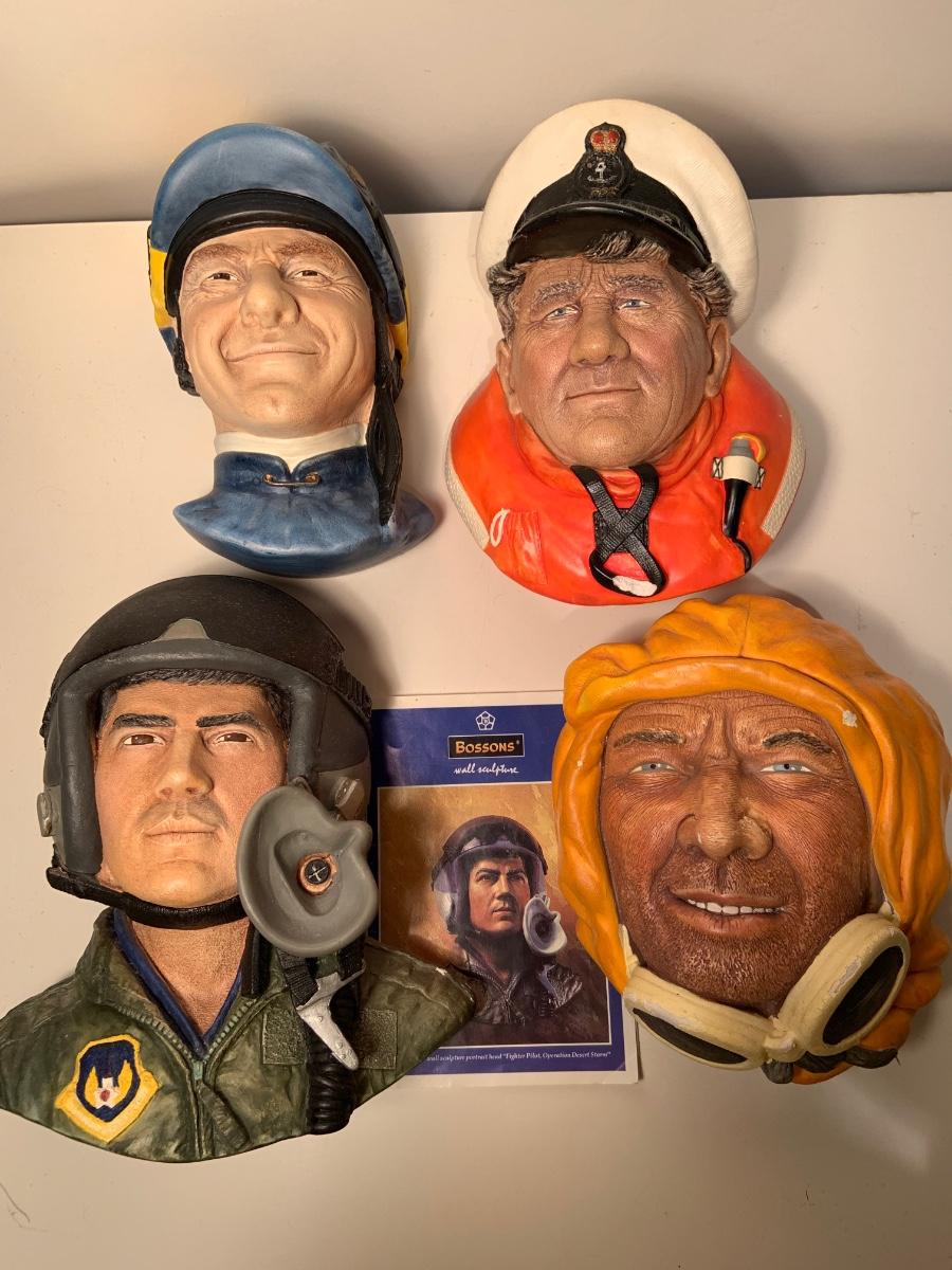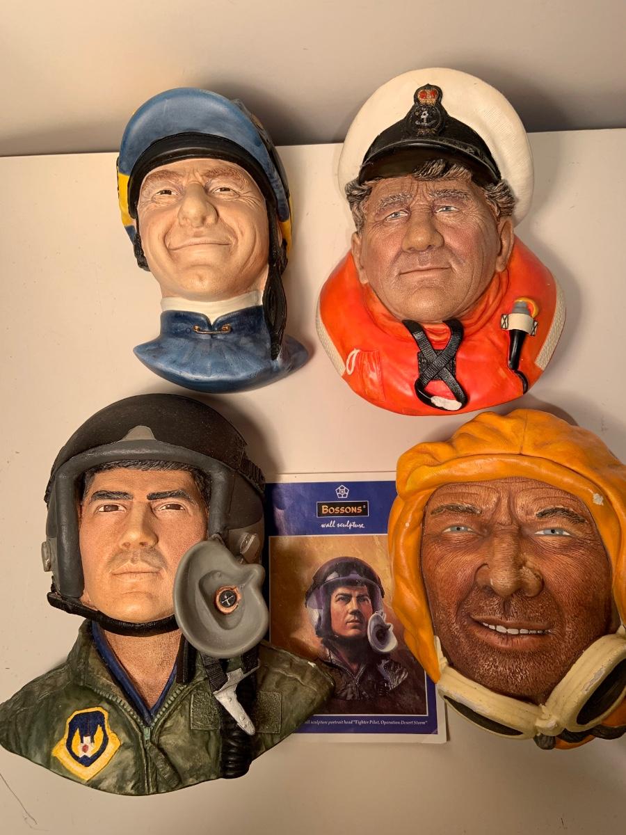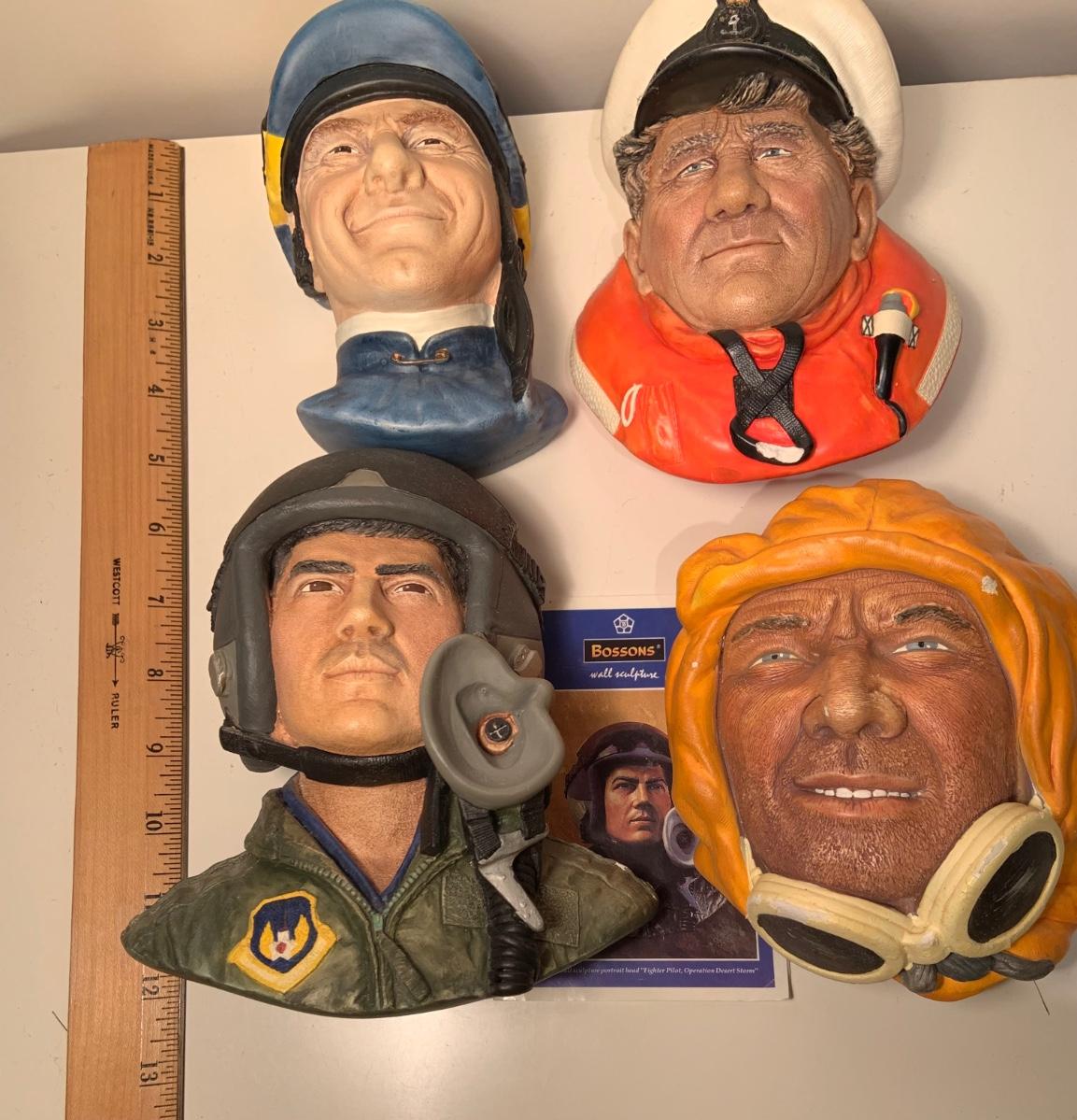 LOT:345G: Bossons Chalkware Heads: Astronaut, Sea Captain, Jockey & Fighter Pilot
