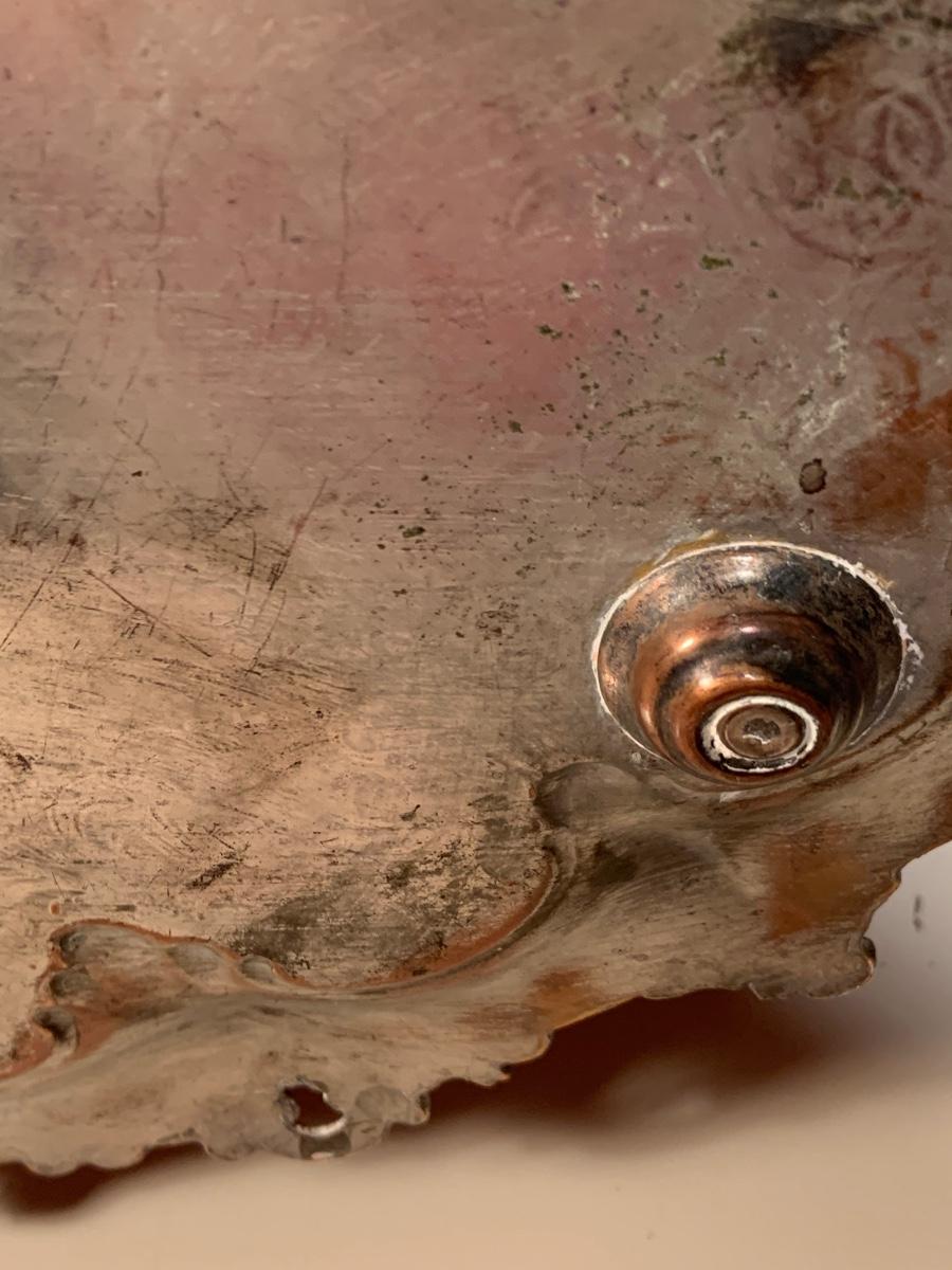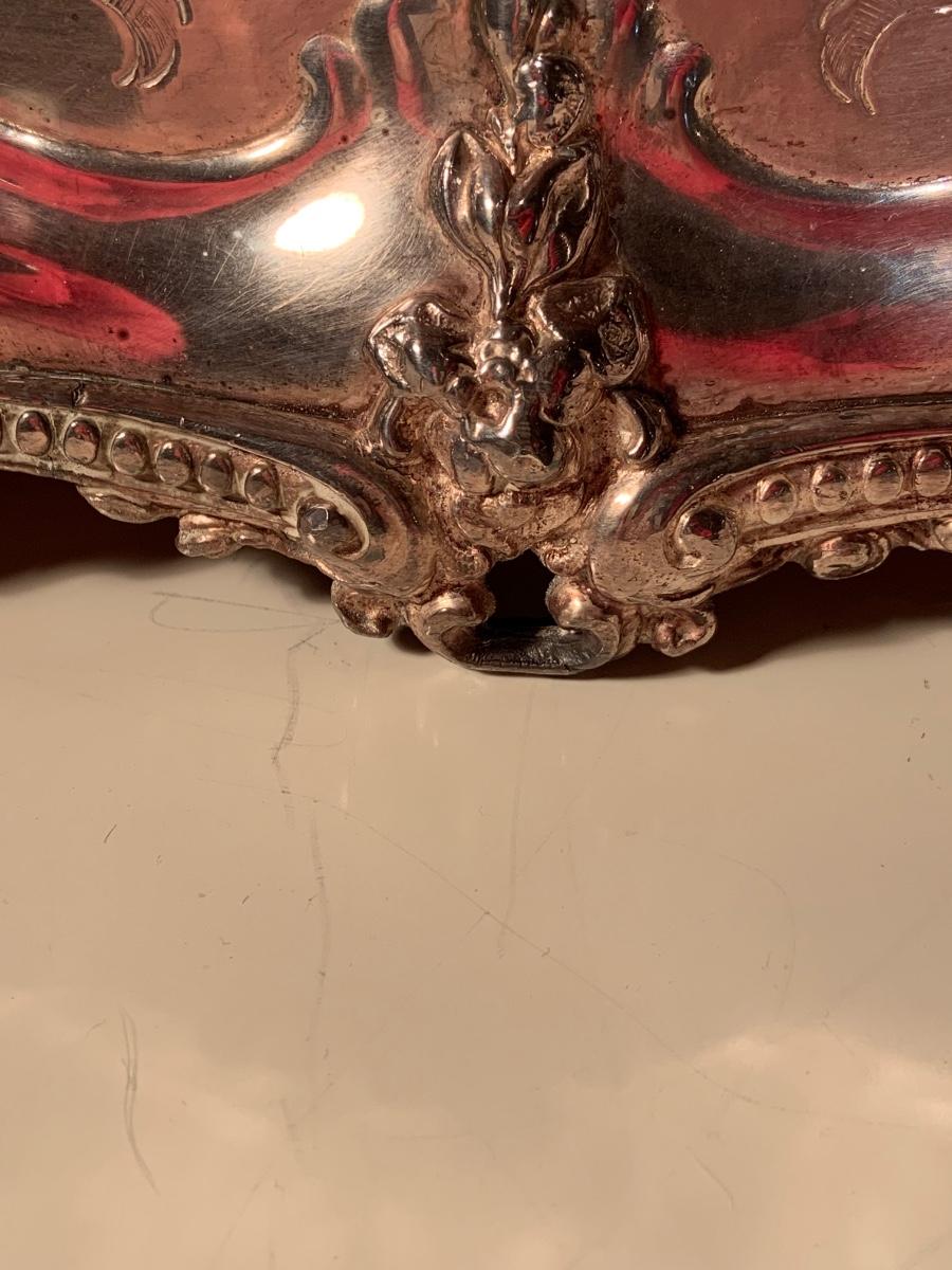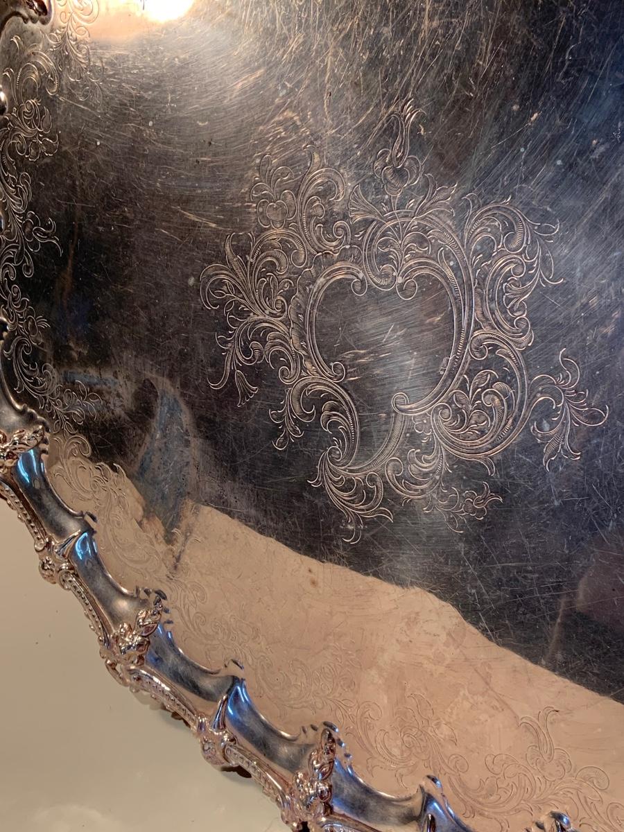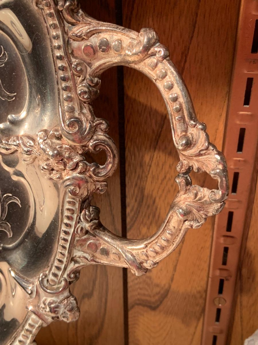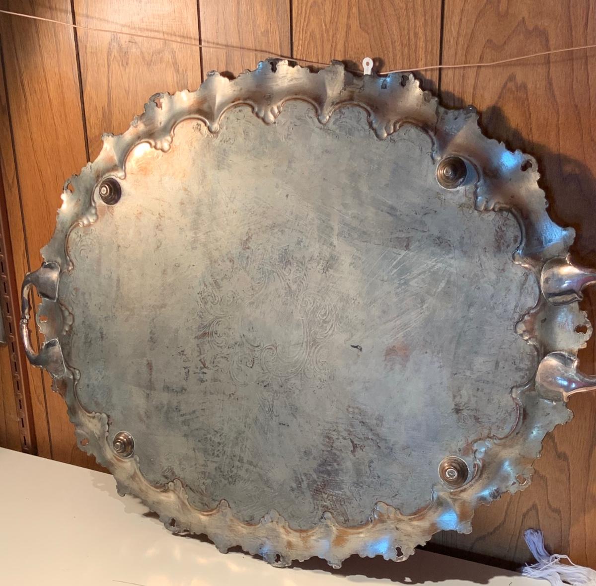 LOT::173G: Silver Tray Unmarked; Table Cloth and Napkin