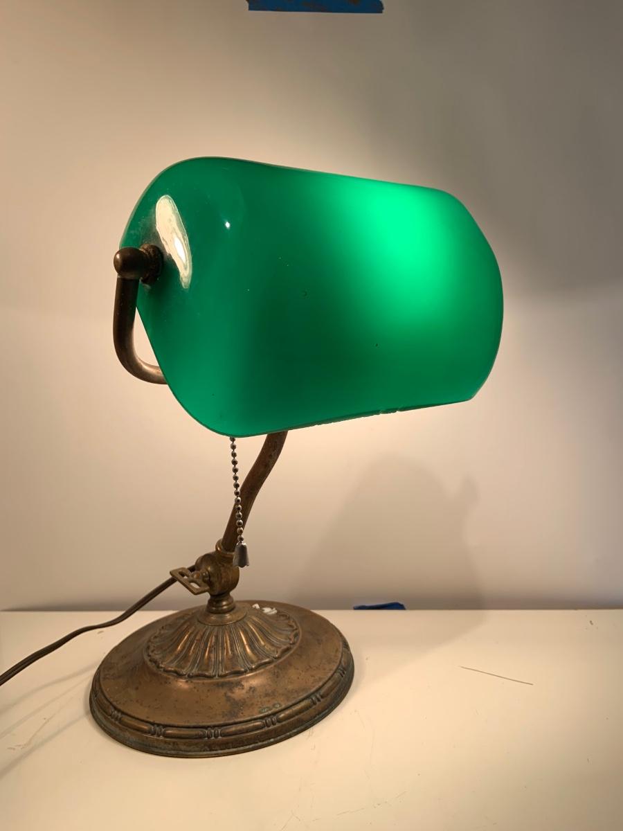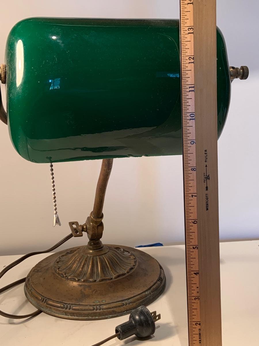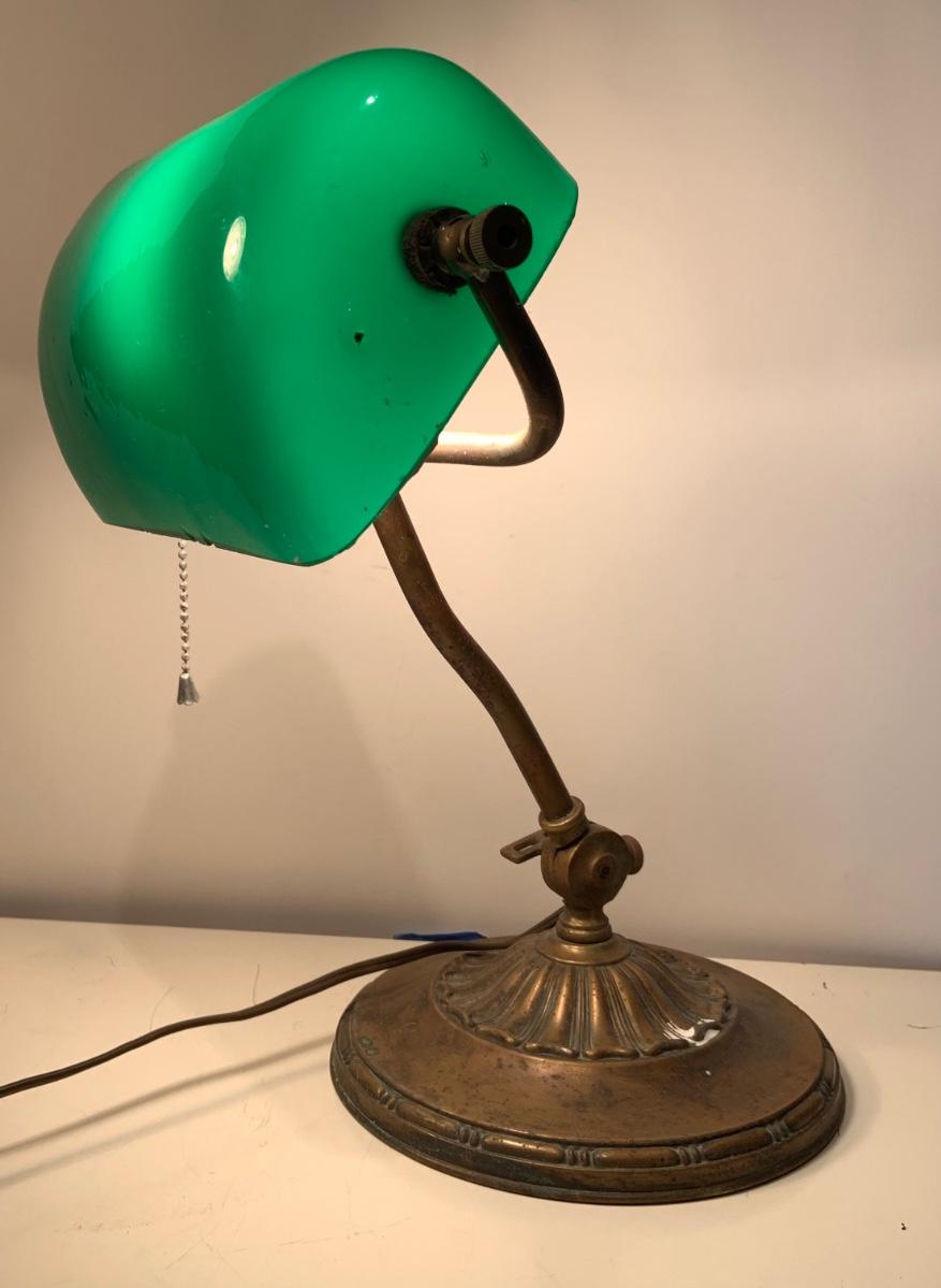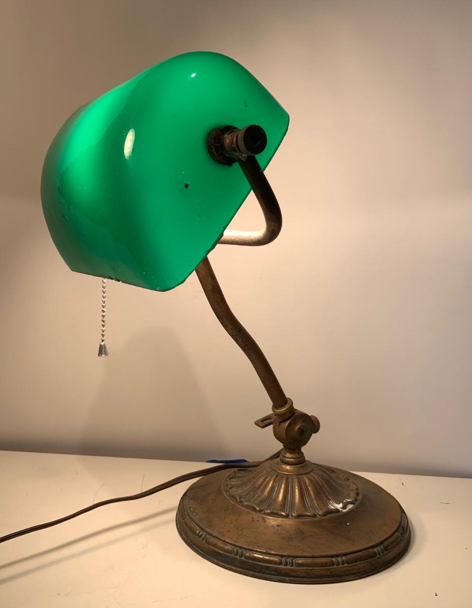 LOT::175G: Vintage Bankers Lamp Brass and Green Glass