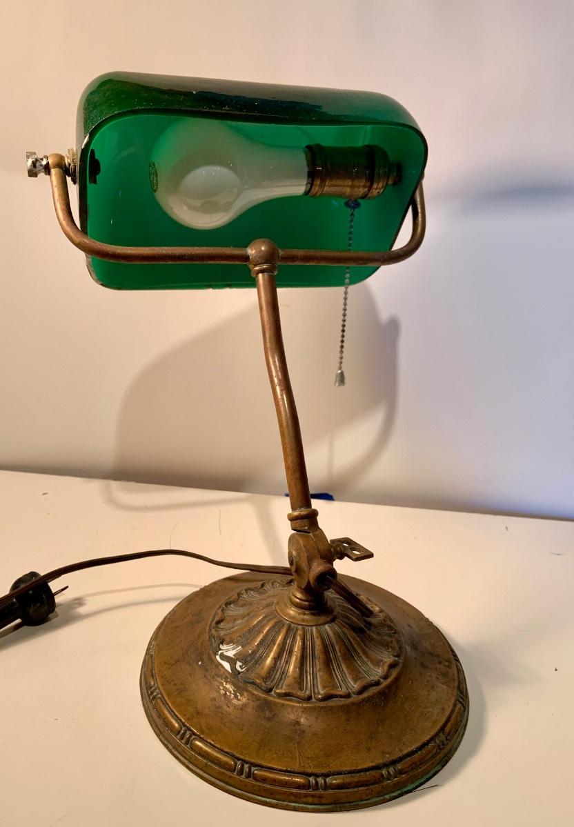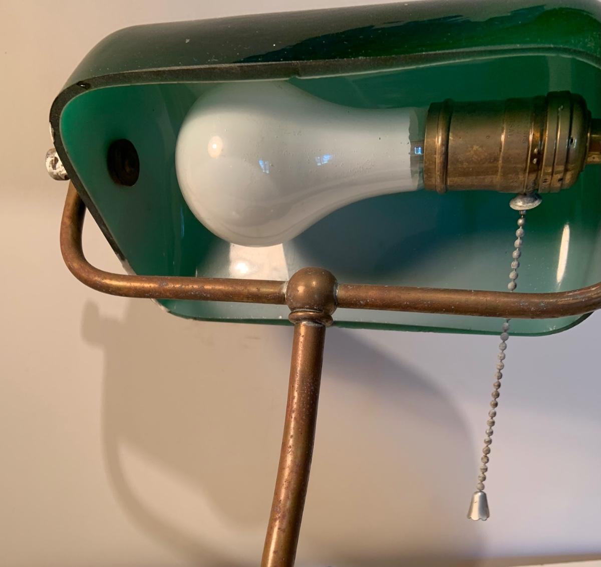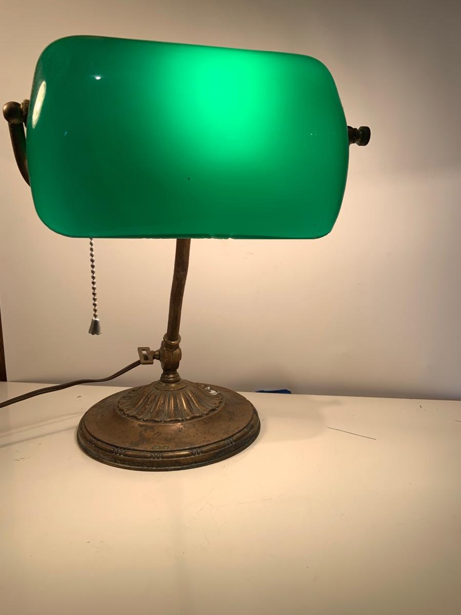 LOT::175G: Vintage Bankers Lamp Brass and Green Glass