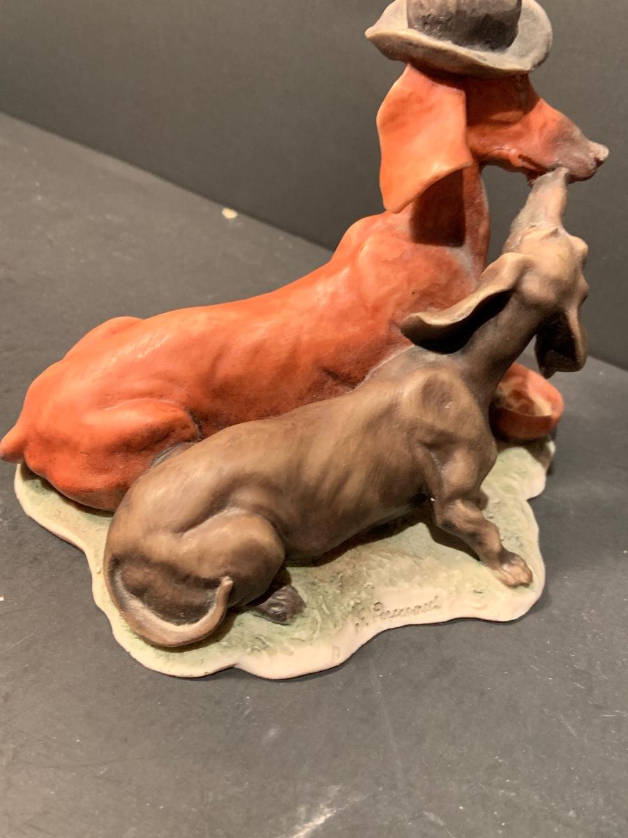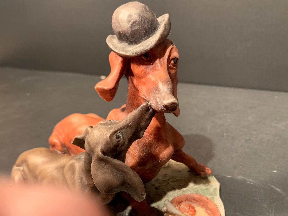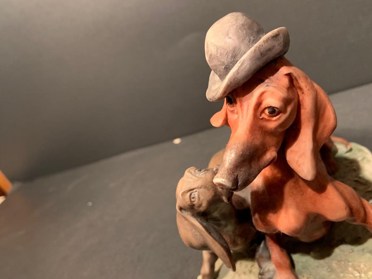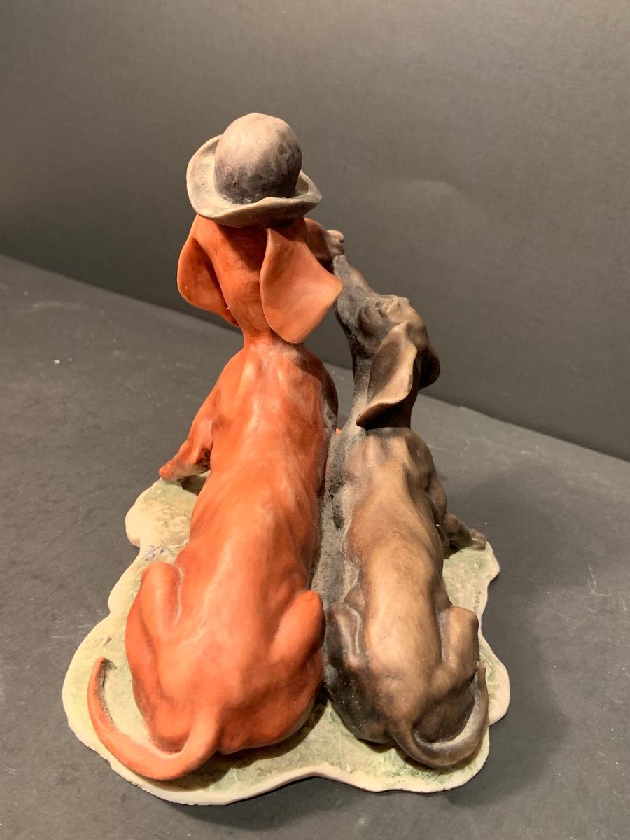 LOT:179G: Gieseppe Armani Porcelain Dachshund Dogs, SandiCast Boston Terrier and a Rockwell Coke Collector Plate